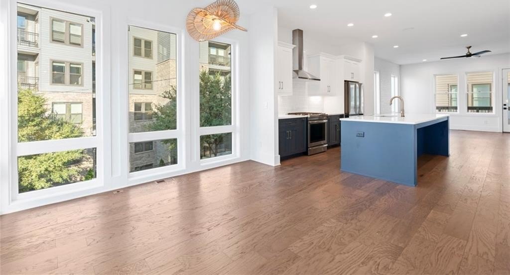 Experience elevated in-town living in this beautifully designed three-story end unit townhome, where natural light fills every level and every finish has been thoughtfully selected. The open layout features hardwood floors, 9-foot ceilings, custom window treatments, and sophisticated designer touches. A chef’s kitchen with solid surface countertops and high-end appliances flows into the dining area framed by floor-to-ceiling windows. The spacious family room is perfect for hosting, complete with built-ins, a wine cellar, fireplace, and a private balcony that extends your living space outdoors. On the lower level, a built-in office creates the ideal setup for working from home. Upstairs, the primary suite features dual walk-in closets and a spa-inspired bath with quartz double vanities, a frameless glass shower, and a private water closet. Secondary bedrooms and bathrooms are equally generous and beautifully appointed. Enjoy the added benefits of a fenced yard, Sonos sound system throughout, and a two-car garage with extra storage. Located directly on the BeltLine in Madison Yards, you’re just moments from Publix, AMC, Kilwins, Muchacho, First Watch, and more. This is the lifestyle buyers are searching for—seamless, stylish, and perfectly positioned.