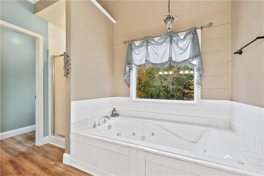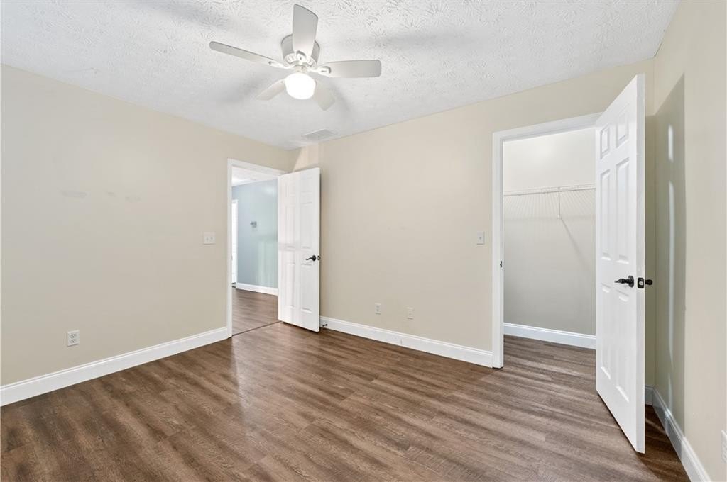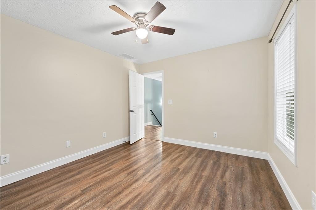 The owner’s suite offers a calm retreat with a spa-like bathroom featuring dual vanities, a soaking tub, and a walk-in shower. Secondary bedrooms are spacious and comfortable with excellent closet space.