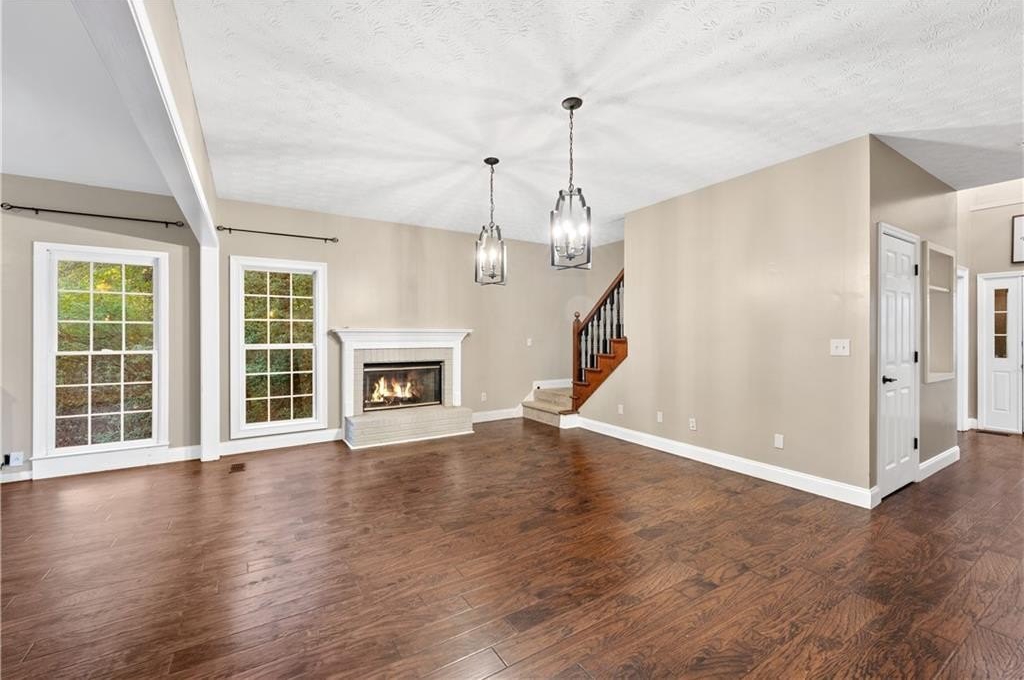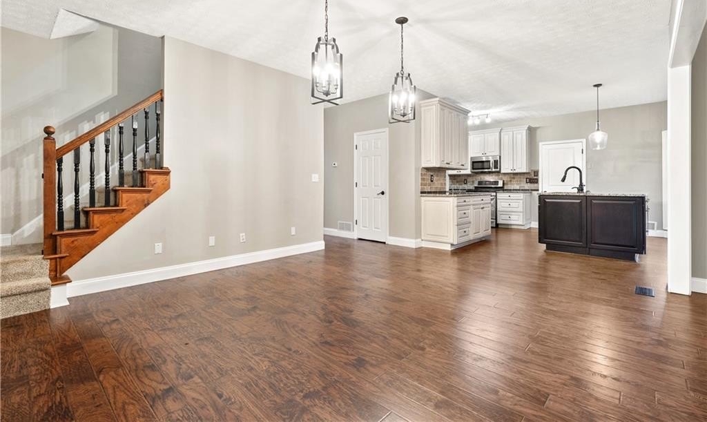 Inside, the bright open-concept design makes everyday living effortless. The family room welcomes you with hardwood floors, abundant natural light, and a seamless connection to an oversized flex space that can be used as an office, playroom, or formal dining area.