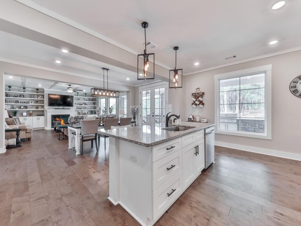 Outdoors you will find an Expansive back deck spanning the width of the home with a Covered bar area overlooking a huge cleared backyard! This home sits on One of the largest & most usable lots in the neighborhood! In addition to all these amazing things this home has one of the few Three-car garages in the neighborhood perfect for parking and storage!