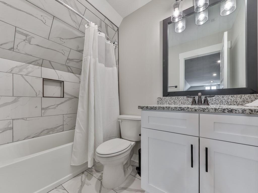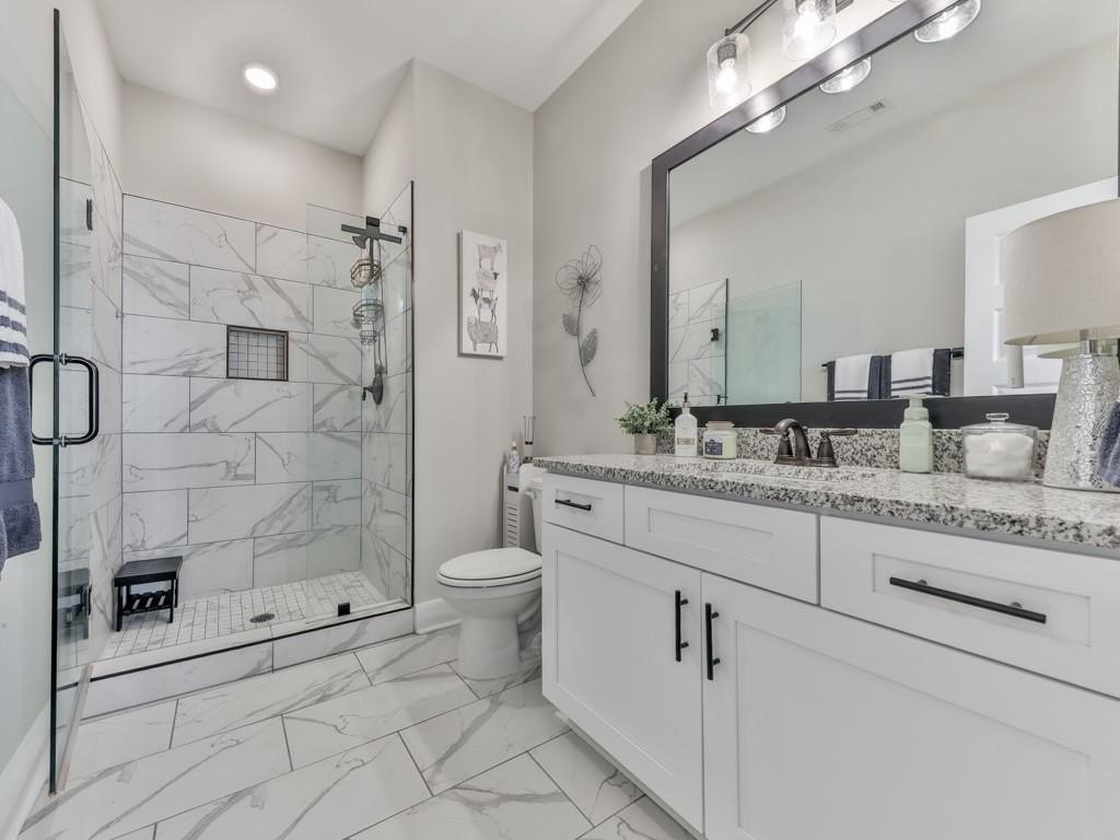 Upstairs you will find a Large private bedroom with its own full bathroom perfect for guests or a teen suite!