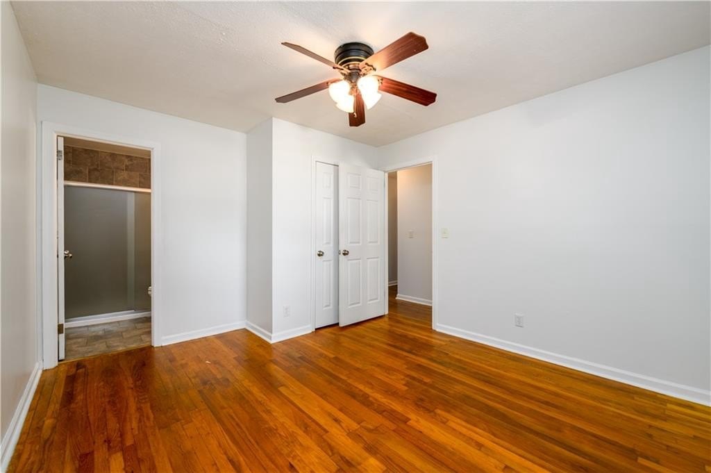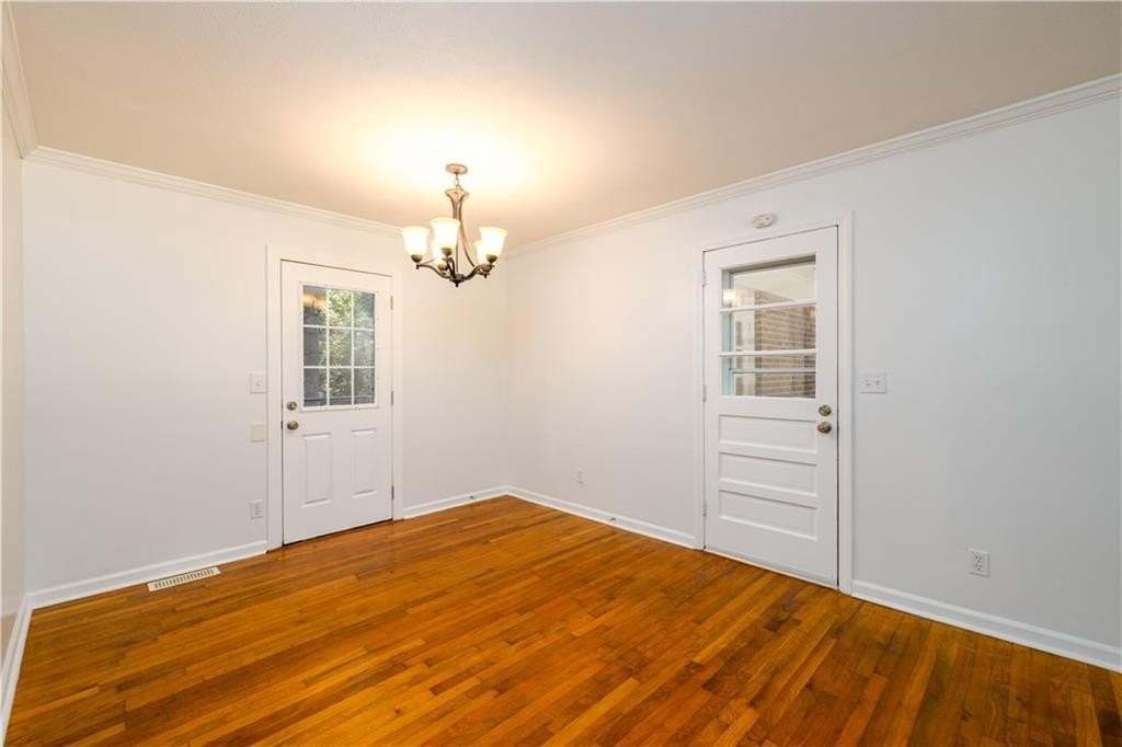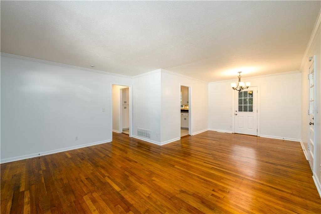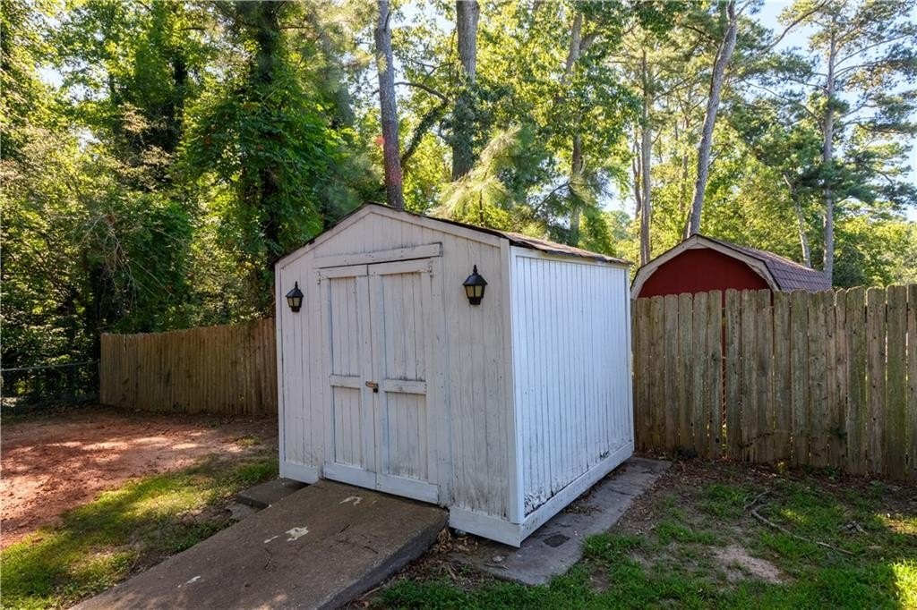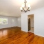 Dining area with modern chandelier flows into the spacious living room and out to a large deck overlooking the wooded backyard—ideal for relaxing, grilling & hosting guests. The primary suite offers a renovated bath with a tile shower, updated vanity, and fresh finishes. Secondary bedrooms share an updated hall bath with tile floors and tub/shower. Gleaming hardwood floors and 2” blinds throughout. Includes an outbuilding for extra storage and a NEW SEPTIC SYSTEM, WATER MAIN & ROOF, huge savings and peace of mind! Tucked away on a quiet cul-de-sac, yet convenient to everything. A true gem!