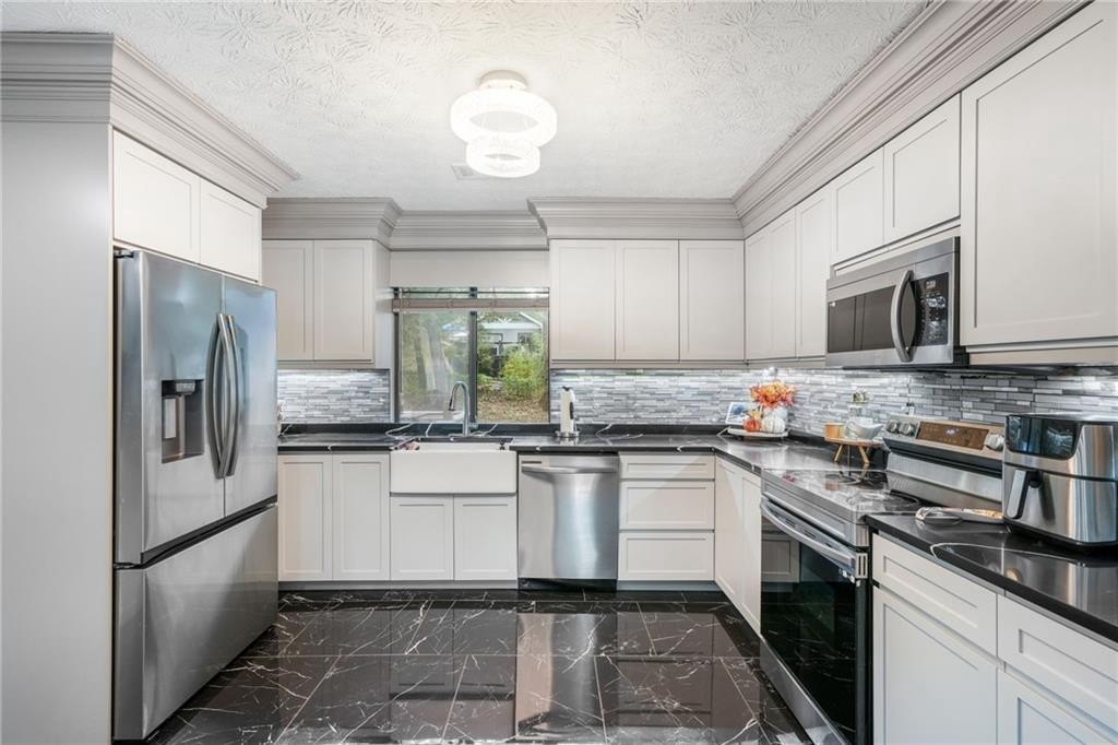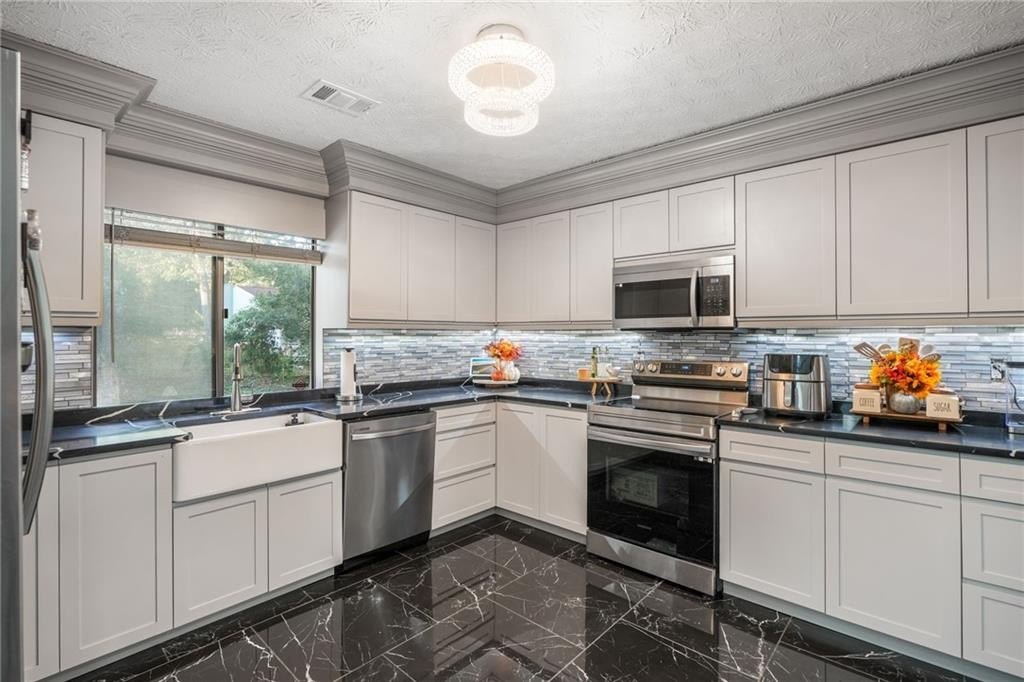 Beautifully updated 4BR/2BA home in the heart of Norcross! The kitchen completely renewed features white cabinets, black granite countertops, new light fixtures, and brand-new Stainless Steel appliances, including an electric range, microwave, and dishwasher. All flooring has been replaced — ceramic tile in the kitchen and laminate throughout the rest of the home. The finished basement offers great additional living space. The roof is only 2 years old, the water heater was replaced just a year ago, and the AC was replaced has 3 months ago. Enjoy a large front and backyard on a spacious 1/3-acre lot, plus a newly renovated back deck perfect for entertaining.