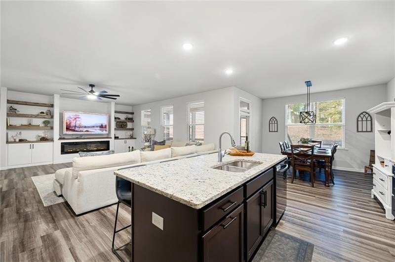 Welcome to your dream home! This is your opportunity to own the most popular floor plan in Riverwood, with beautiful modern upgrades! This spacious 4-bedroom, 3 ½ bathroom home has an open floor plan with room for family gatherings and entertaining. The living room features a newly installed alcove of custom built-in cabinets, modern shelving, and electric fireplace. The expansive wall of large windows brings in beautiful natural light. The inviting kitchen allows for gatherings with an oversized island and adjacent dining room which opens to the enclosed patio. This open floor plan flows effortlessly. The main bedroom features french doors for your private access to the patio. The main bathroom has a beautiful double vanity, a garden tub and gorgeous tiled walk-in shower. In the closet, you will find a newly installed custom built-in closet system. The home is well designed, with a large laundry room connecting to the main closet. An additional room is perfect for an office, home gym, or even and 5th bedroom. Upstairs you will find an enormous bonus room, plenty of space for a movie room and playroom. The second floor bedroom and beautifully tiled bathroom is perfect for an in-law suite or teen suite! In the backyard, the enclosed patio opens up to a spacious open patio with room for a basketball net and outdoor living area. This desirable location is near schools, restaurants, and shopping in Dallas.Riverwood features incredible amenities, including Fitness Center, Jr. Olympic pool, Tennis, Pickleball, Basketball and Tot Lot . This one is a must see!