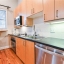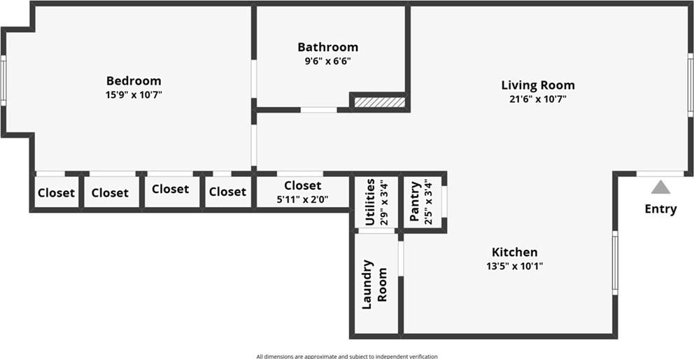 Enjoy an open floor plan with soaring 14-foot ceilings and gleaming hardwood floors, freshly painted in neutral tones. The modern kitchen offers ample cabinet space, stainless steel appliances, a new dishwasher, tile backsplash, and a pantry for extra storage. Additional highlights include a laundry room and a spacious custom-built closet in the bedroom.