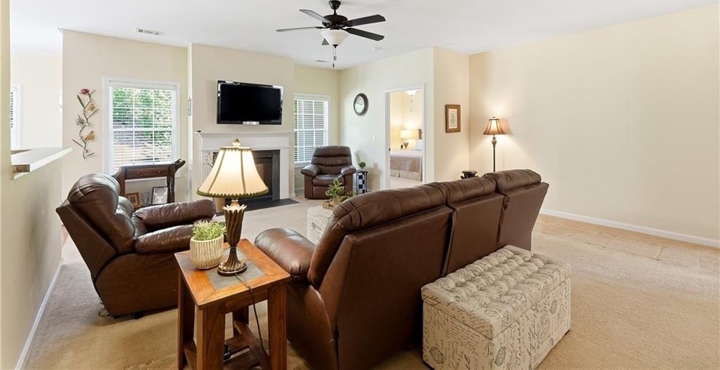 WELCOME HOME to this meticulously maintained, ALL BRICK RANCH home nestled inside the highly sought after 55+ community Sawnee Corners. Sawnee Corners offers carefree, low maintenance living in an amazing location. Step inside and discover the open and spacious floorplan including a large great room which boasts a cozy fireplace perfect for those chilly nights. The well appointed kitchen is perfect for entertaining all your guests. Enjoy your morning coffee on the COVERED PATIO and enjoy all that nature has to offer. The spacious master suite is the perfect retreat after a day of activities. The ensuite bath has double sinks, walk in shower, and a large closet with plenty of storage. The 2nd bedroom is spacious and has lovely arched windows that add to the elegance of this home. The 2nd bathroom has a shower/tub combo and is easily accessible for guests. The laundry room is conveniently located off the kitchen. The garage is very spacious and allows for two cars plus storage. The HOA COVERS THE ROOF, ALL LAWN CARE, TERMITE BOND, DWELLING EXTERIOR AND WATER! The community has a clubhouse, pool, and many organized activities. Located less than one mile from the Cumming City Center where you can enjoy upscale shopping, fine dining, community events, greenspace, free concerts and walking trails. Don't miss out on the opportunity to call this beauty home!