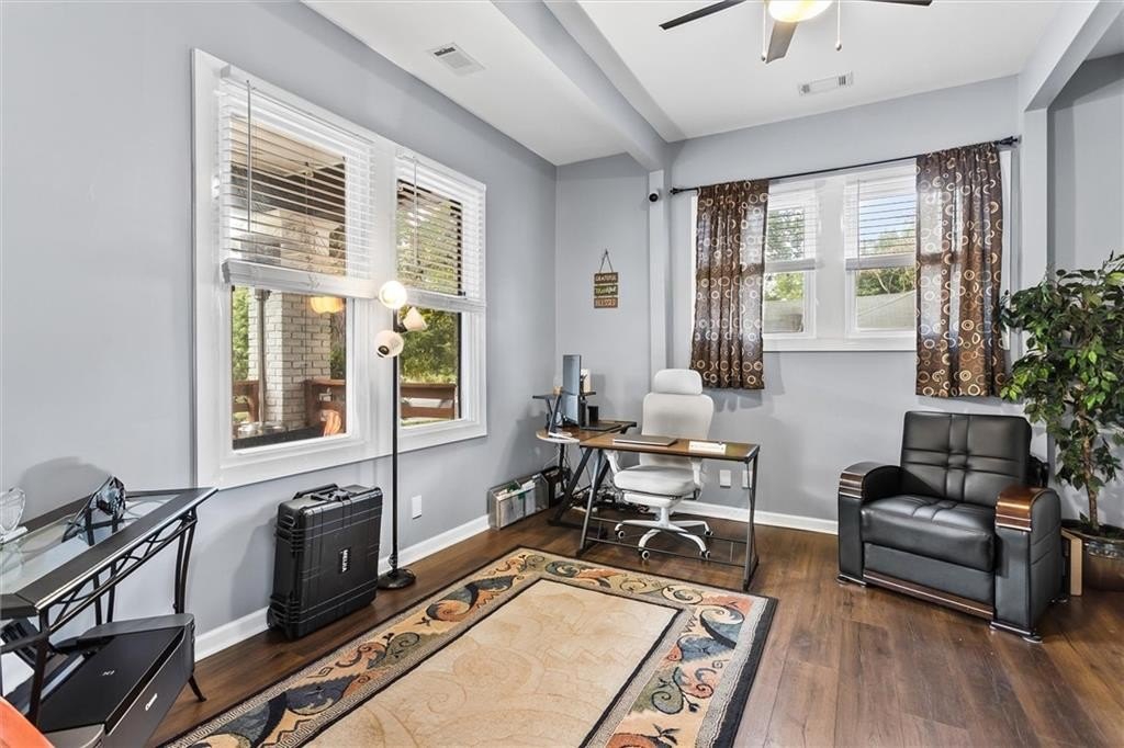 Located in one of Atlanta’s top-rated neighborhoods, this 4-bedroom + bonus room, 3-bath, four-sided brick bungalow seamlessly blends character, comfort, and craftsmanship. Perched elegantly above the street, the home offers a private gated driveway, fenced yard, and spacious front porch—perfect for morning coffee or evening entertaining.