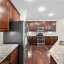 Step inside to an elegant open floor plan filled with natural light, highlighted by hardwood floors throughout the main level. The chef’s kitchen overlooks the spacious living and dining area and features espresso cabinetry, granite countertops, stainless steel appliances, a large island/breakfast bar, and an eat-in kitchen space—perfect for entertaining. The expansive living room with fireplace flows seamlessly to a private patio overlooking a serene wooded backdrop.