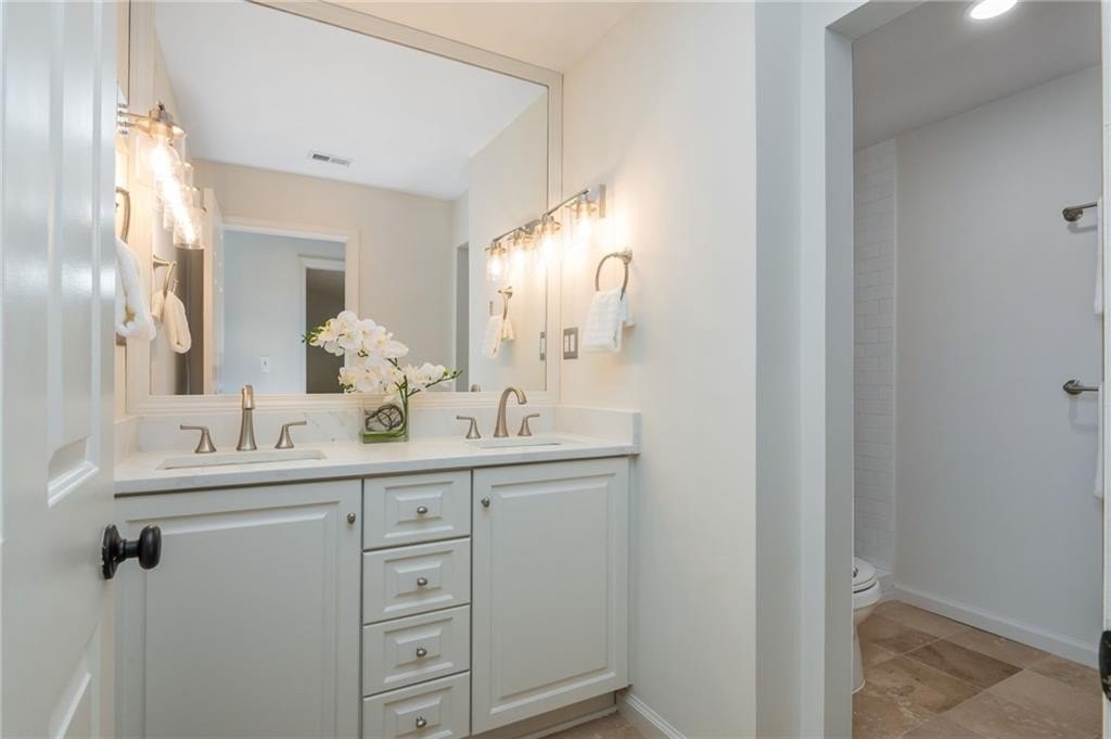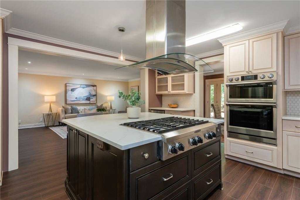 Welcome to Vinings Ferry, a tranquil community nestled on 15 wooded acres in Historic Vinings. This townhome offers a peaceful retreat just a short stroll from the vibrant Vinings Jubilee. The completely renovated townhome is one of the largest floor-plans in the community, offering plenty of space for everyone! On the main level, a welcoming foyer leads to well-designed living areas. Enjoy the convenience of a spacious living room with fireplace, a generously sized dining room, and a flexible den or potential fourth bedroom. The chef’s kitchen is the heart of the home with a large island complete with gas cooktop, countertop seating and a bar area with wine rack and two wine refrigerators. Top of the line stainless steel appliances, quartz countertops, tile backsplash and abundant cabinets complete the package. Upstairs, you'll find three bedrooms and two baths, along with a convenient laundry area. The master suite provides a comfortable escape, boasting a vaulted ceiling, a wall of bookcases, and a roomy walk-in closet. Step outside to the private back patio, offering serene views of wooded surroundings—an ideal spot for pet owners or those seeking peace and quiet. Convenience is key here, with prestigious private schools like Lovett & Westminster nearby, along with abundant shopping, dining, and recreational options, including access to the Chattahoochee River at Paces Mill Park, Truist Park and The Battery Atlanta. Plus, easy access to major highways like I-285 and I-75 ensures seamless travel. Enjoy low Cobb County taxes. This is an extraordinary opportunity not to be overlooked!