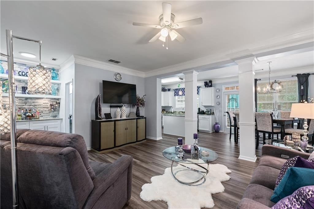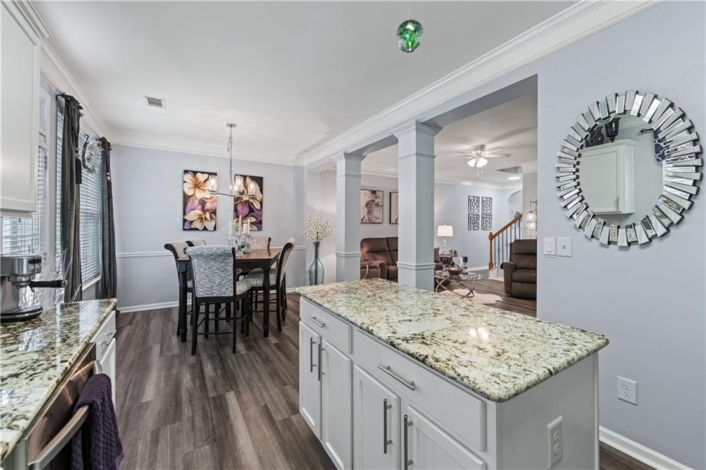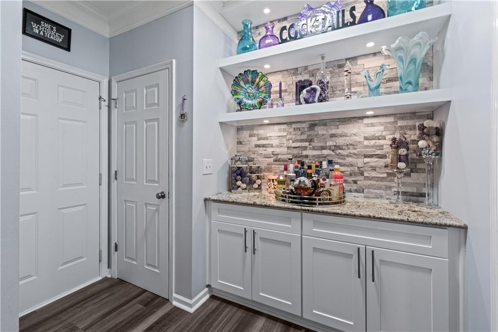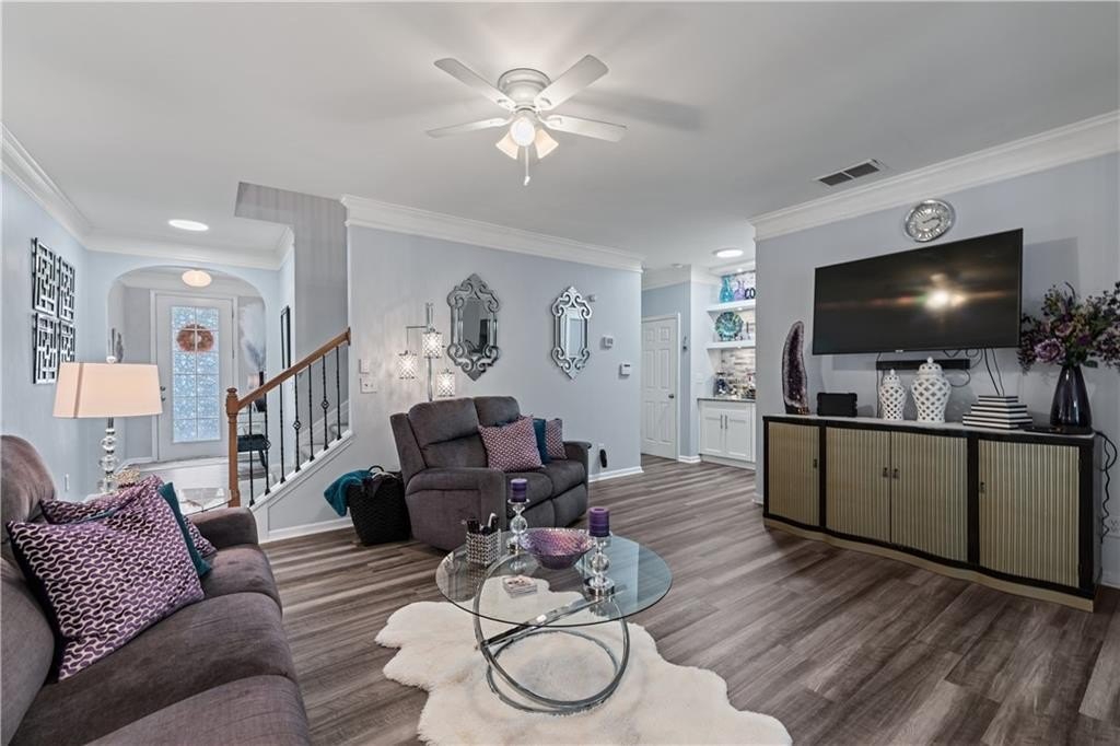 LOCATION! LOCATION! LOCATION! This beautifully maintained home is within 2 miles of I-85, The Gwinnett Exchange {home of Top Golf, Gwinnett Pickle & Social, Andretti Racing, etc.}, the newest Northside Hospital complex, The Mall of GA, and endless shopping & dining choices. This home is tied to Collins Hill Schools. This well-appointed townhome boasts 2 master suites with their own private bathrooms, a huge loft, a powder room, a chef's kitchen, a TREX deck, and 2 car garage. This home has been renovated with $60,000 worth of high-end finishes that you won't find in other homes or even new construction. This townhouse also has architectural features that make you feel like you’re entering a luxury home with a formal foyer, arched entryway, columns, crown molding, wrought iron spindles in the open loft area, glass block window in the loft, vaulted ceilings in both bedrooms, and a built-in bar. The HVAC units were replaced May 2023 with LENOX {SEER 17 rating}. The main living area flooring was replaced with Armstrong Flute 12mm WATERPROOF LVP {great if you have pets}. Upstairs carpet is upgraded Mowhawk with state of the art antimicrobial padding. Roof replaced in 2022. When you enter the formal foyer, you will immediately notice the crown molding throughout the main living level along with columns and an open floor plan for entertaining. Enjoy hosting your family gatherings in your chef’s kitchen which includes a walk-in pantry, a big island, granite countertops, and top of the line Samsung appliances which were replaced in 2023. There’s also a custom built in bar with granite countertop which lends itself to hosting gatherings. Enjoy the luxury of the master bath which has been completely renovated to include floor to ceiling Italian Carrara marble and a large shower with frameless glass door. The additional master suite has its own bathroom which has been partially renovated. Both bathrooms have windows which you typically will not find in a townhome. The loft/bonus area is flex space that can be used as a home office, man cave, playroom, tv room, craft room, or workout room - the possibilities are endless. You'll also find the convenience of the laundry on the 2nd floor, so there is no need to drag laundry up & down the stairs. The private custom built 22’ x 16’ TREX deck was installed in 2023. You don’t have to worry about wood rot or painting and staining as this deck is maintenance free and designed to last for a lifetime. If you enjoy gardening but don’t want the responsibility of maintaining a huge yard then this quaint little garden is for you. Enjoy the Rose of Sharon trees that bloom every year with purple flowers. Storage is not a problem as there are 2 closets on the main floor, overhead garage storage, and attic storage. Enjoy the community amenities - pool & tennis. Don’t wait to view this home as this deal won’t last.
