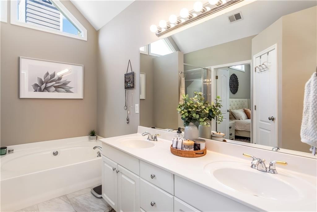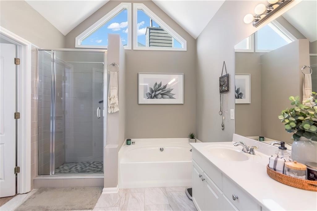 Enjoy durable LVP flooring throughout the main level and abundant natural light in every room. Upstairs, the primary suite is a true retreat, featuring a tray ceiling, double vanity, separate tile shower, and a luxurious soaking tub. Three additional bedrooms and a full bath complete the upper level.