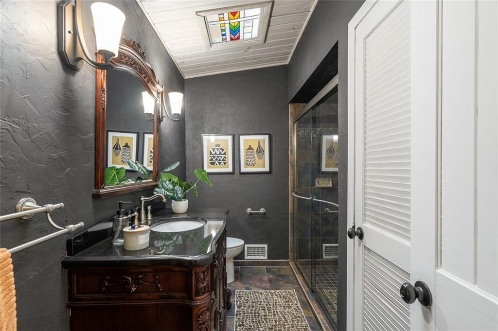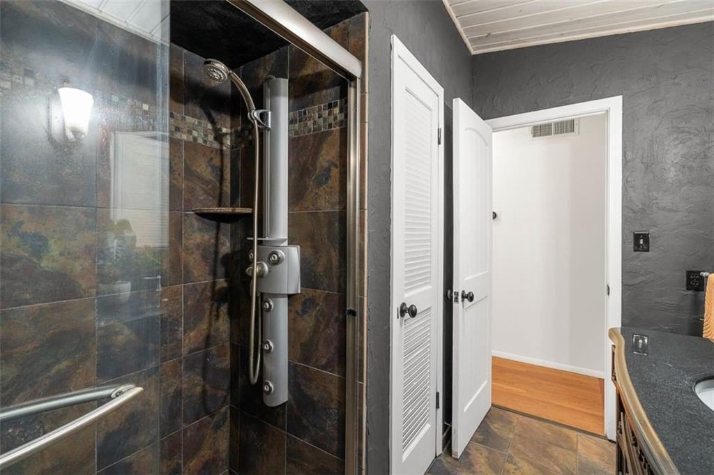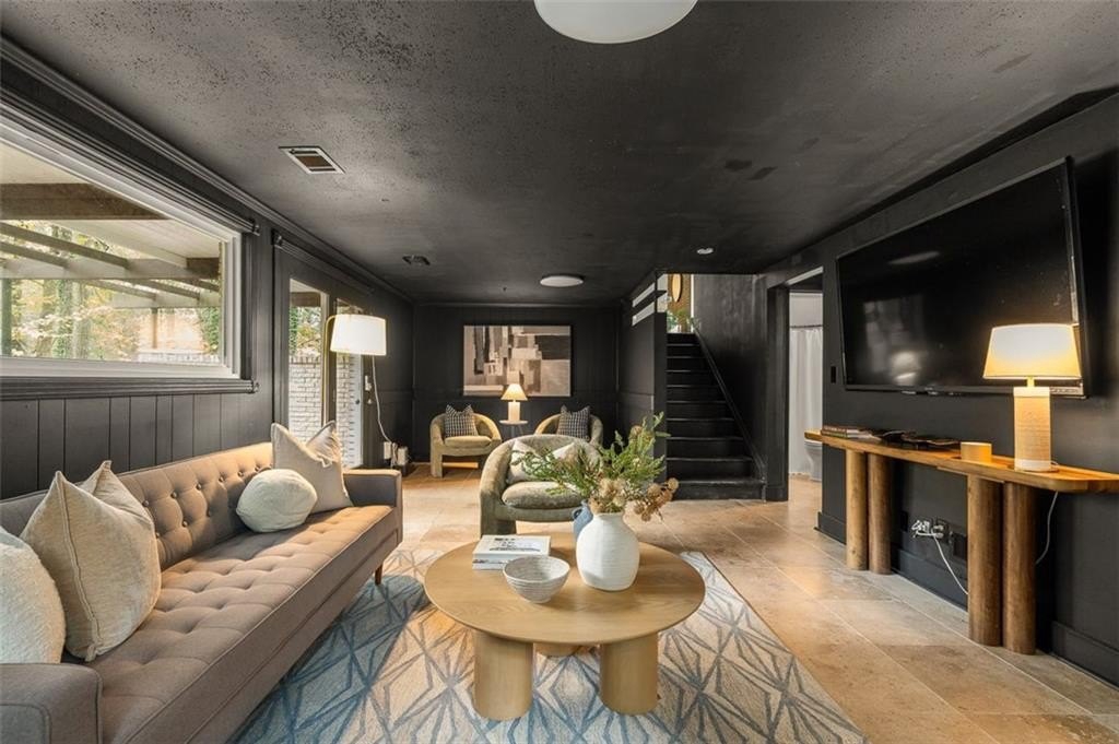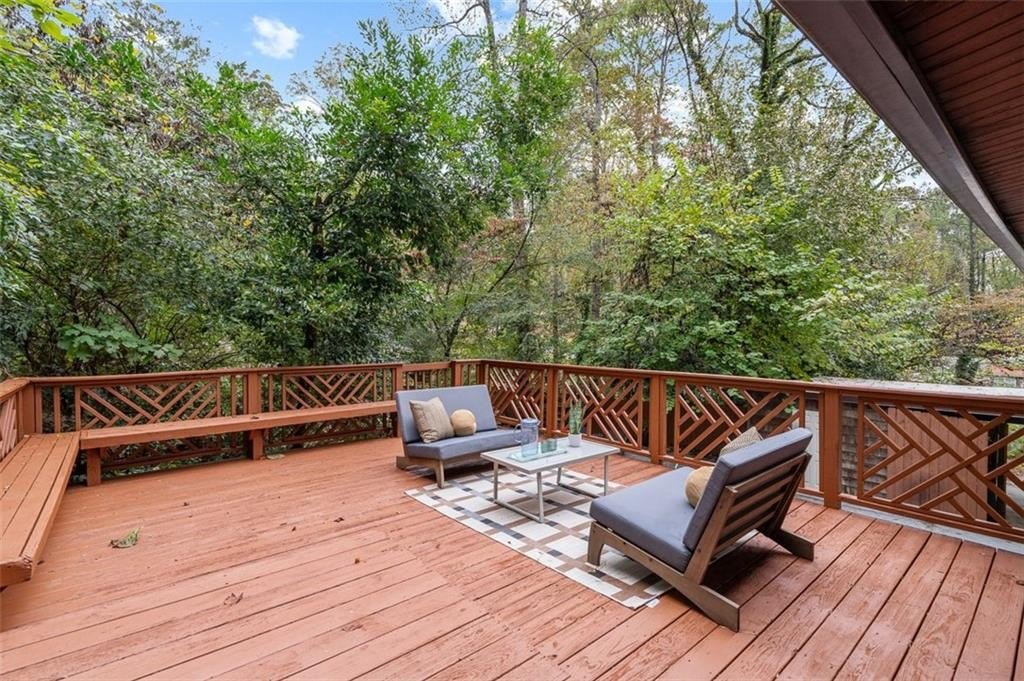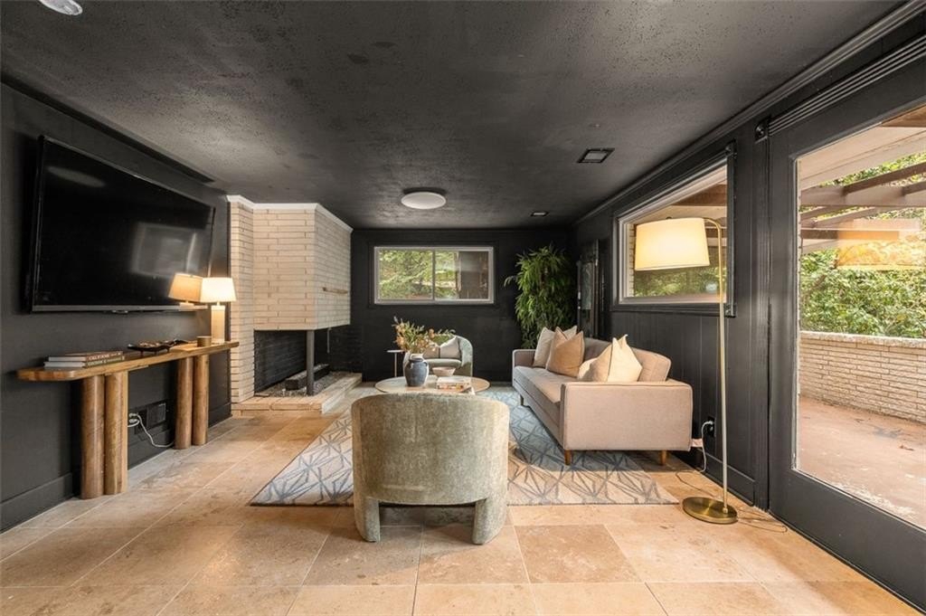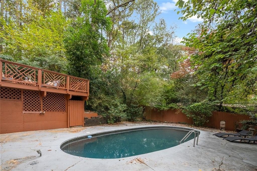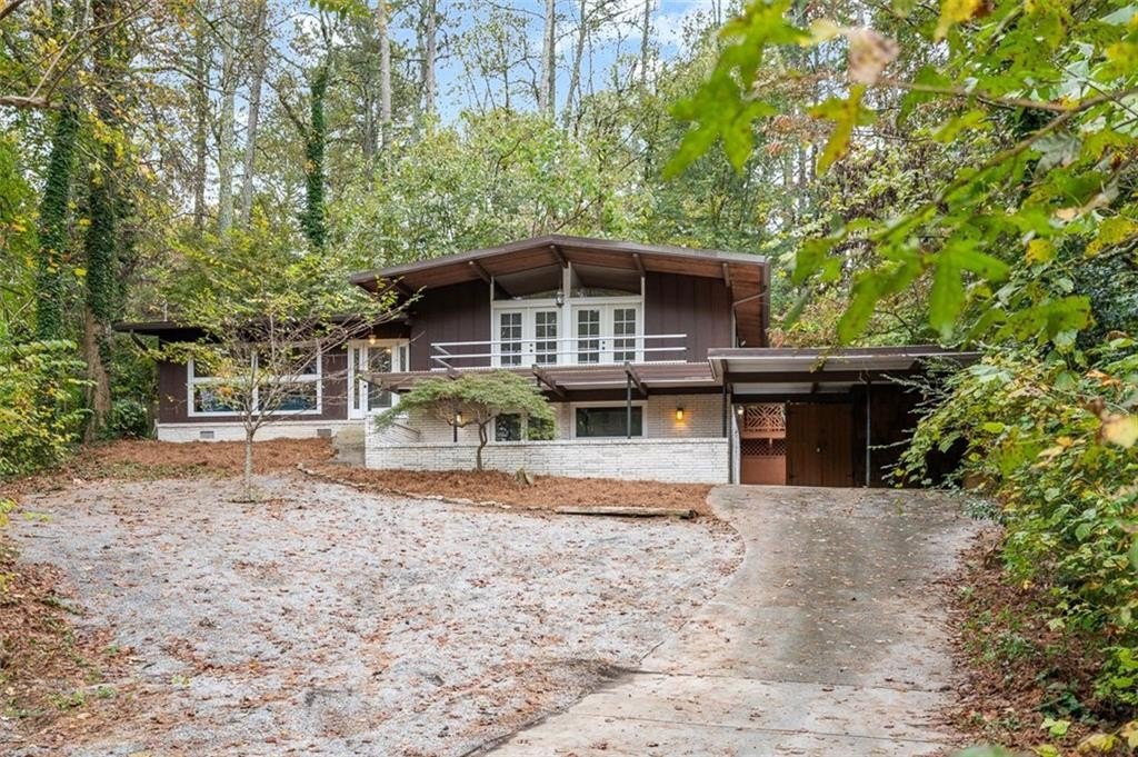 This Mid-Century Modern home is set on a peaceful cul-de-sac in the highly coveted Northcrest neighborhood. The property is impressively spacious. It features an updated kitchen and two separate living areas across the main and lower levels. The primary suite is expansive, complete with a cozy fireplace, an extra-large walk-in closet, and a luxurious bath with a jacuzzi tub, standing shower, and dual-sink vanity. Upstairs, two secondary bedrooms feature abundant natural light and share access to a charming small front porch. The finished lower level includes a bedroom that can also easily function as a dedicated office space. This home has multiple outdoor spaces: a large porch is accessible directly from the primary suite, and a charming back patio, with its whimsical greenery and built-in planters, is perfect for outdoor dining. The private grounds also feature both a dedicated pool area and a separate, large yard space that is ideal for pets or play. Finally, a spacious, unfinished flex area on the lower level provides versatile potential for a game room, workshop, or storage. This home is conveniently located near renowned Buford Highway dining and offers easy access to I-285.