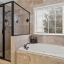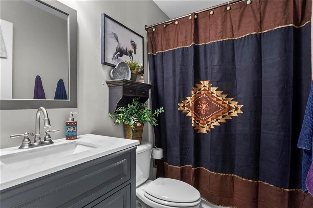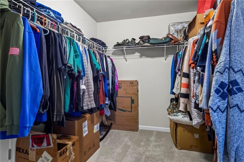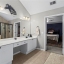 Upstairs, the spacious primary suite boasts a trey ceiling and luxurious spa-inspired bath with vaulted ceiling, dual vanities, jetted tub with tile surround, and oversized window.