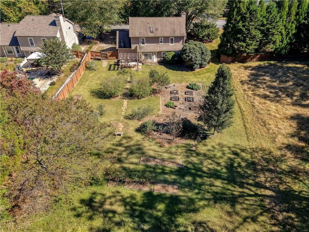 Welcome to 4181 Keheley Drive, a rare find offering space, flexibility, and endless possibilities. Nestled on a lush, level 0.84-acre lot, this charming traditional home is a nature lover’s dream and a developer’s opportunity rolled into one. With the potential to subdivide and build a second home (with access to a cul-de-sac driveway at the rear), the future is wide open. Step inside to discover a bright and welcoming layout featuring a large family room with a cozy stone fireplace, perfect for gathering and relaxing. The separate dining room is spacious enough to host holiday meals and family celebrations. The updated kitchen shines with white cabinetry, granite countertops, and stainless-steel appliances, flowing effortlessly from the foyer which features an eye-catching stone accent wall and convenient half bath. Upstairs, the primary suite offers an ensuite bath with an extended granite vanity, while three additional bedrooms share a stylishly updated full bathroom. You’ll also appreciate the upstairs laundry room with built-in shelving. Outside, enjoy your own private paradise. The backyard is an expansive oasis featuring apple, fig, and nectarine trees, blackberries and blueberries, and raised herb gardens flourishing with rosemary, mint, and sage. Whether you're an avid gardener, aspiring beekeeper (yes, there are two beehives that can stay or go), or simply someone who craves outdoor serenity, this backyard delivers. A custom pergola over the terrace creates a perfect spot for entertaining or quiet relaxation.