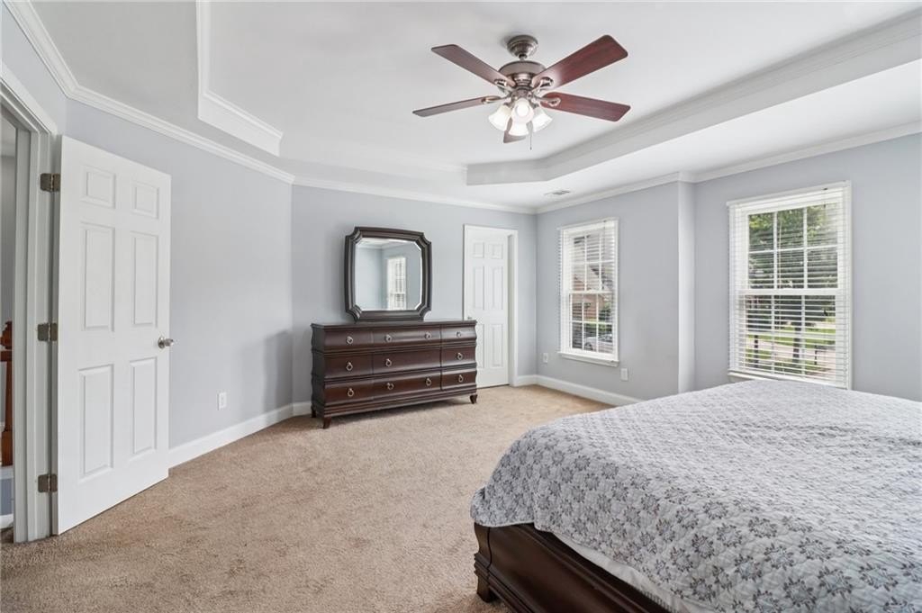 The seller is motivated and open to concessions and all offers will be given serious consideration. Welcome Home to this well maintained 3 bedroom, 2.5 bath home tucked away in a quiet, sought-after neighborhood within the highly desirable Peachtree Ridge Cluster. This residence offers a spacious open-concept floor plan, ideal for both everyday living and entertaining. The inviting fireside living room, complete with custom built-in bookcases, seamlessly connects to the dining area and kitchen. The kitchen features warm stained cabinetry, sleek stainless steel appliances, and a convenient breakfast bar — perfect for casual meals or gathering with guests. Upstairs, the elegant primary suite boasts trey ceilings, a generous walk-in closet, and a spa-like ensuite bath with double vanities, a soaking tub, and a separate shower. Two additional bedrooms and a full bath provide comfortable accommodations for everyone. Step outside to enjoy the private, fenced backyard with a charming patio — a perfect spot to relax or host a cookout. Located minutes from top-rated schools, parks, shopping, and dining, this home offers the perfect blend of comfort, style, and convenience. Don’t miss your chance to call this lovely home yours!