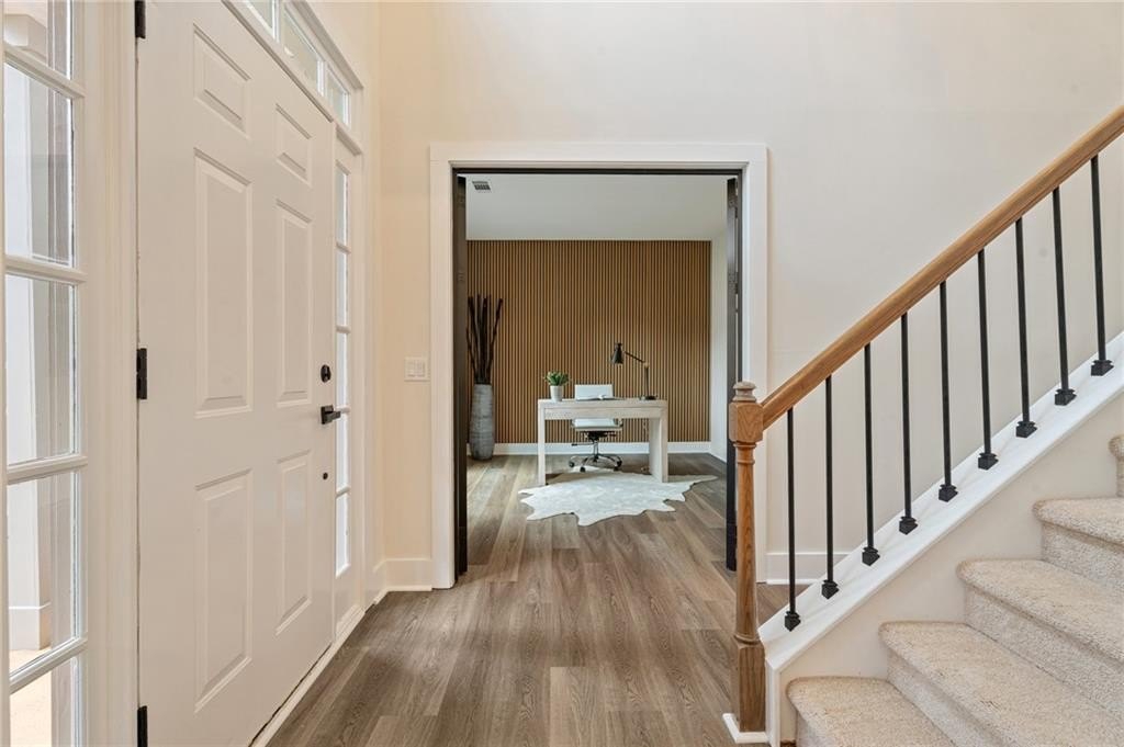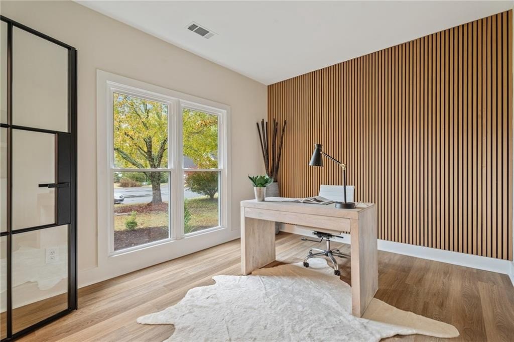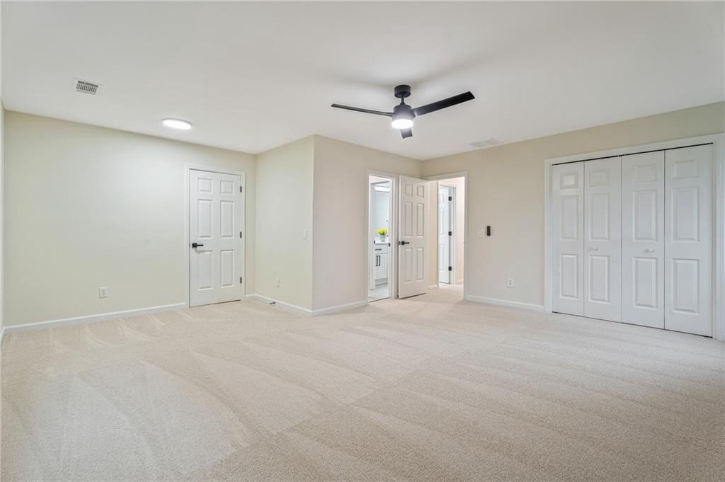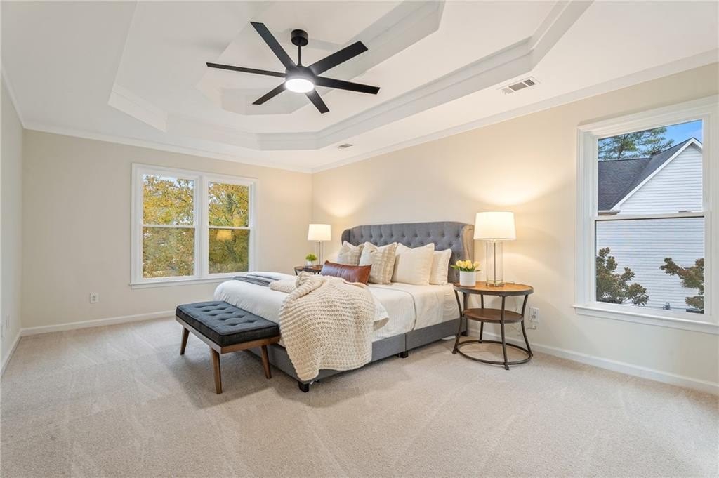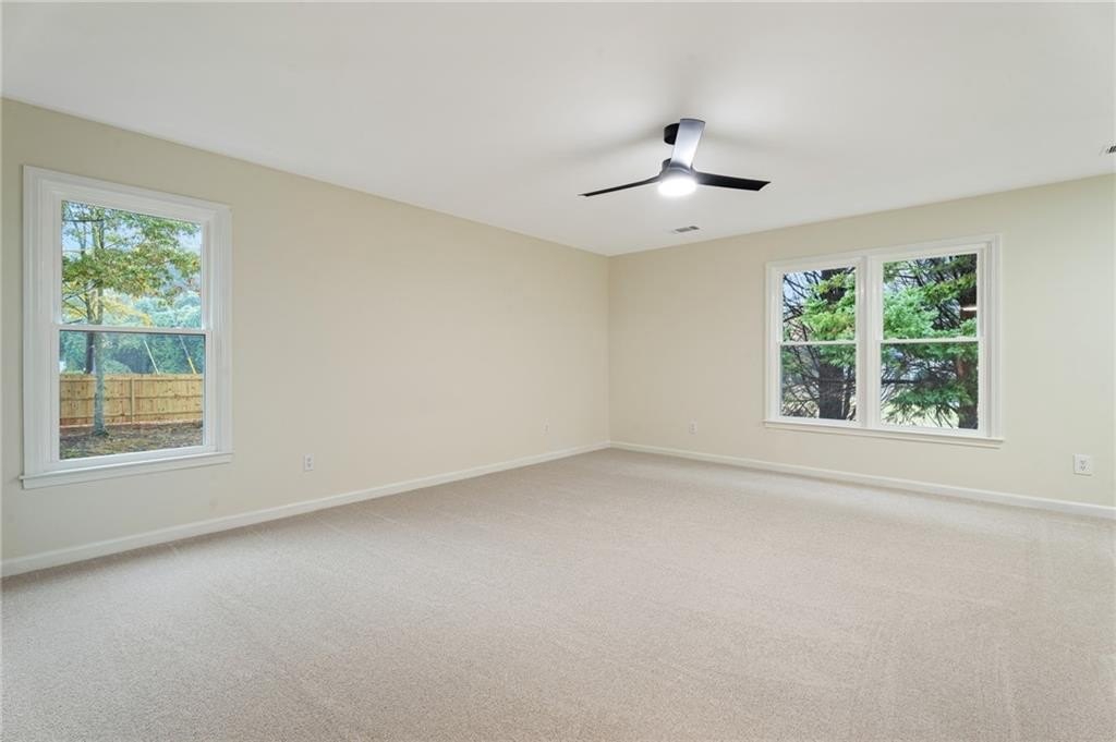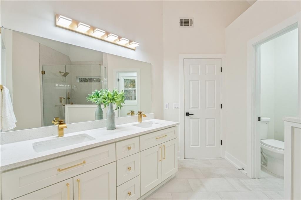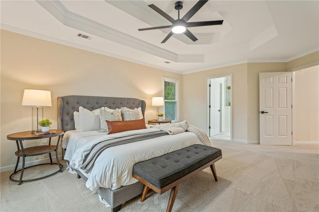 Step inside to discover a bright, open floor plan filled with high-end upgrades and modern finishes throughout. The brand new kitchen is the centerpiece of the home, featuring quartz countertops, stainless steel appliances, and custom cabinetry – perfect for every day living and entertaining. Every bathroom has been beautifully renovated, with a luxurious primary suite, showcasing an oversize custom tile shower that is sure to impress. Additional updates include new flooring and carpeting, modern fixtures and hardware, upgraded lighting and ceiling fans in every bedroom, and custom metal doors entering the office for a designer touch. The home also features new trim-work on the main level, updated stair spindles and door handles, and not one, but two new HVAC systems for year-round comfort and efficiency. The three car garage offers ample space and includes a freshly epoxy-coated floor that makes a statement of its own. Enjoy a peaceful sunset view from your private backyard and a convenient location that's close to top schools, shopping, dining and GA 400 – all well nestled in a quiet established neighborhood.