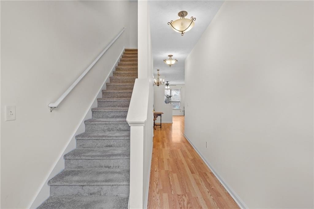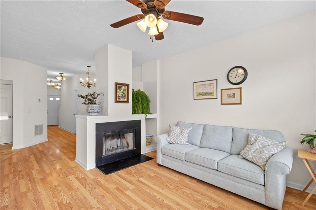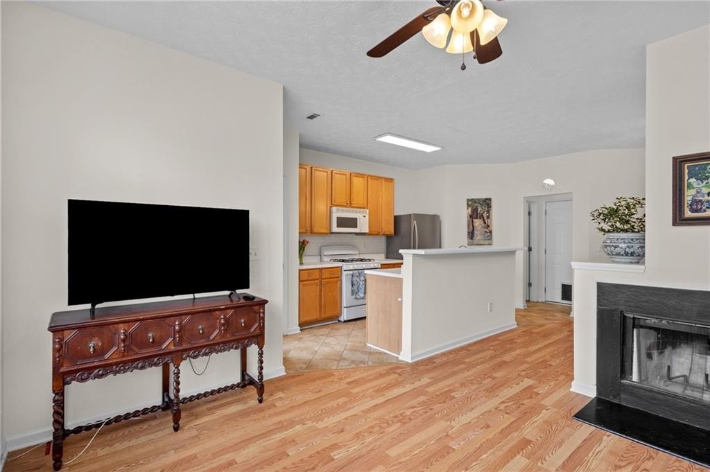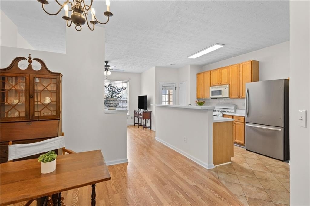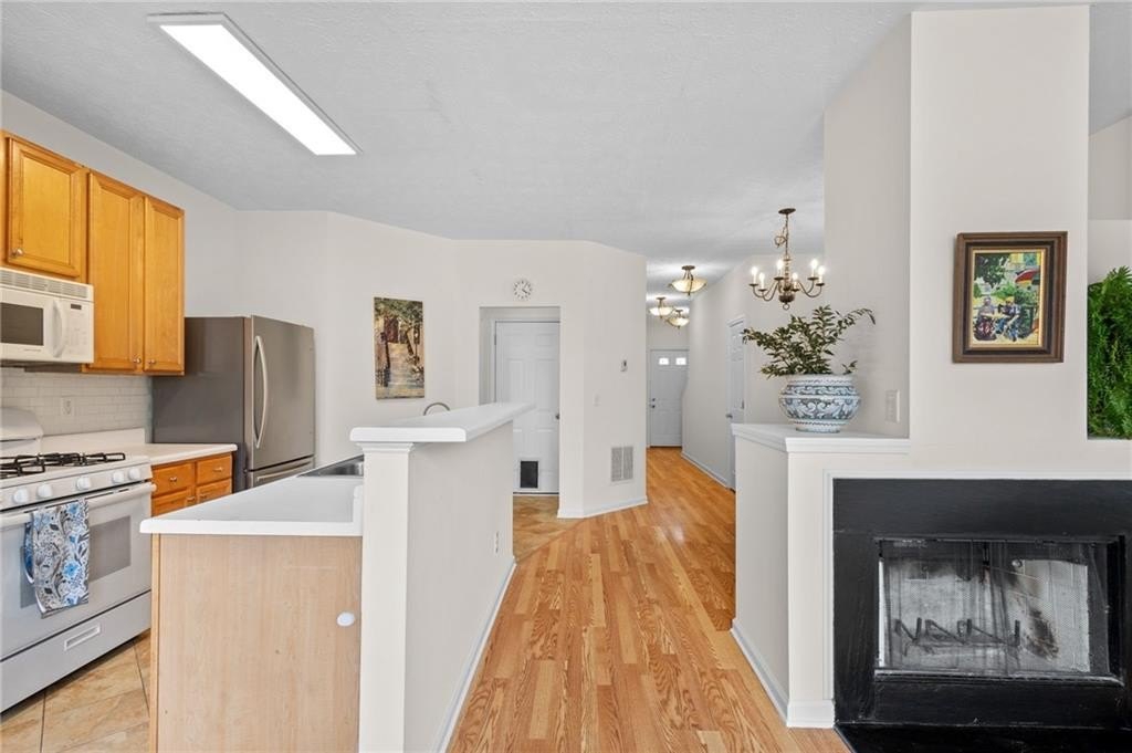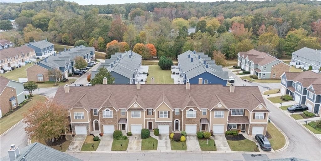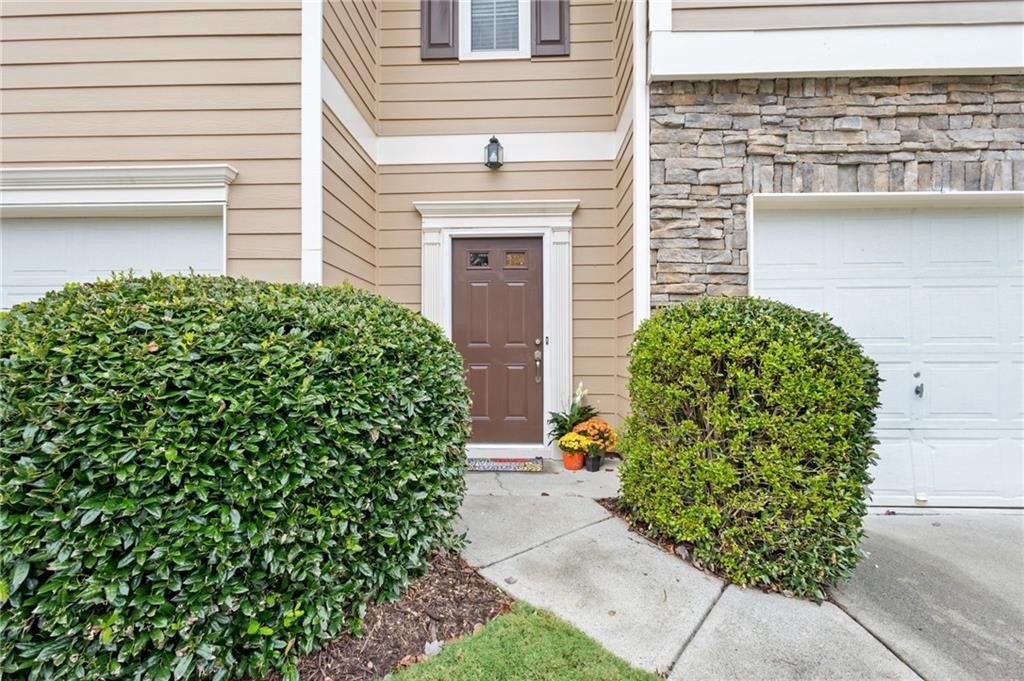 Step inside this beautifully maintained Flowery Branch townhome. The main level welcomes you with bright laminate flooring and an open floor plan that flows seamlessly from the dining area to the kitchen and family room. The kitchen offers natural wood-stained cabinets, a breakfast bar, gas stove, microwave, and refrigerator—all overlooking the cozy family room with a fireplace and a wall of windows that flood the space with natural light. A convenient half bath is located just off the kitchen as you enter from the one-car garage. Step outside to your private patio with peaceful views of the green space—perfect for morning coffee or relaxing after a long day. Upstairs, you’ll find two spacious bedrooms, each with its own en suite bath. The primary bedroom is oversized with a sitting area and the primary ensuite has a double vanity, separate tub and shower, and walk in closet, with the laundry area and a large linen closet in he hall. You’ll love being just moments from Hideaway Bay Marina, Fish Tales Lakeside Grill, and Downtown Flowery Branch, where you can enjoy year-round community events, the seasonal farmers market, and local dining favorites. With easy access to I-985, Lake Lanier, shopping, and parks, this home offers the ideal blend of comfort, convenience, and lifestyle.