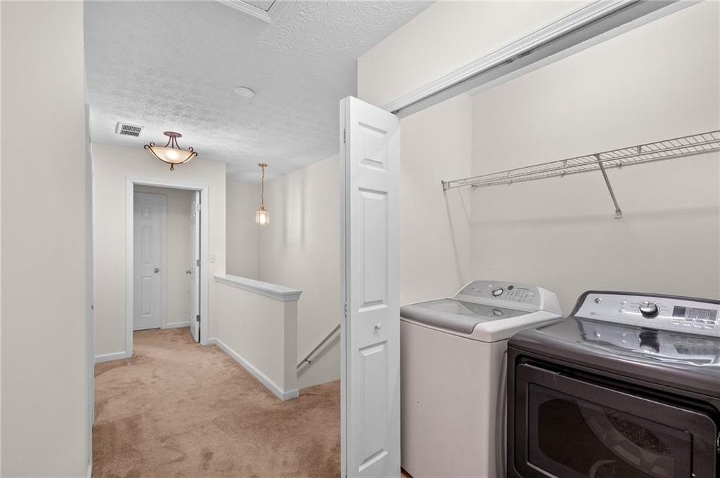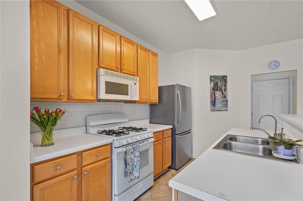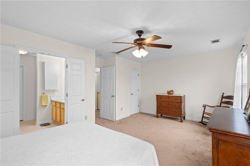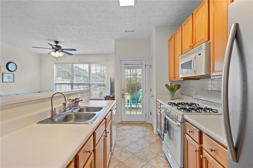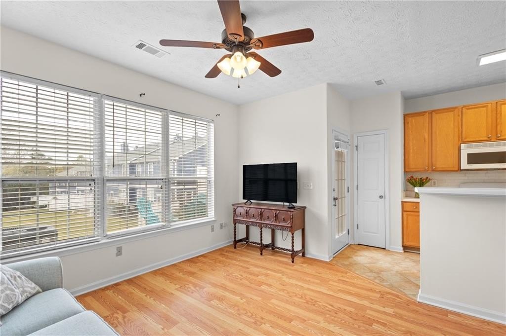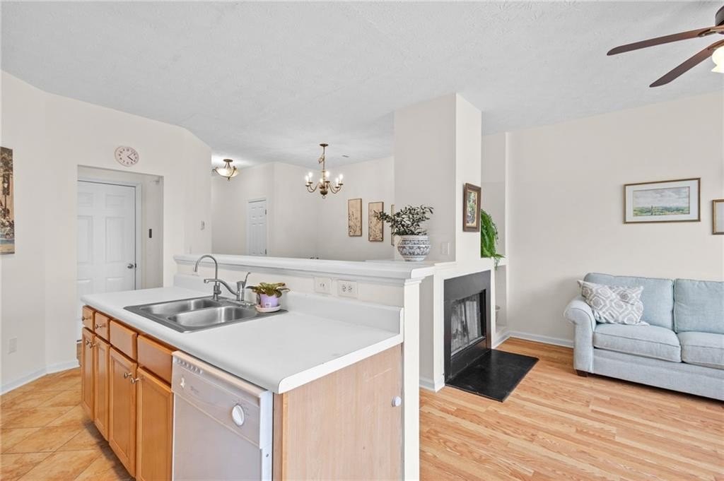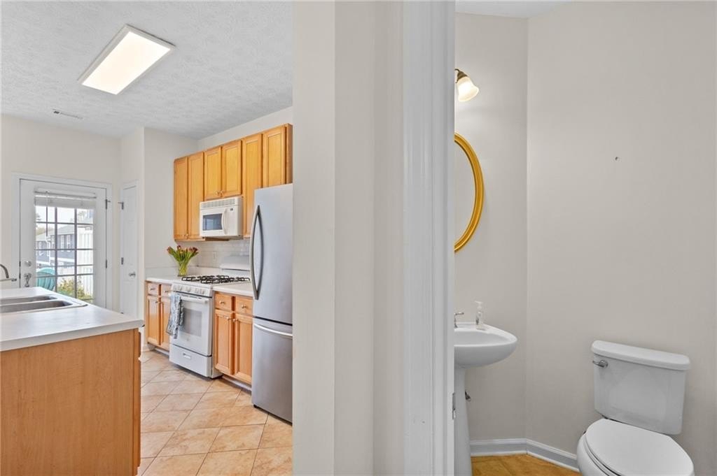 Step inside this beautifully maintained Flowery Branch townhome. The main level welcomes you with bright laminate flooring and an open floor plan that flows seamlessly from the dining area to the kitchen and family room. The kitchen offers natural wood-stained cabinets, a breakfast bar, gas stove, microwave, and refrigerator—all overlooking the cozy family room with a fireplace and a wall of windows that flood the space with natural light. A convenient half bath is located just off the kitchen as you enter from the one-car garage. Step outside to your private patio with peaceful views of the green space—perfect for morning coffee or relaxing after a long day. Upstairs, you’ll find two spacious bedrooms, each with its own en suite bath. The primary bedroom is oversized with a sitting area and the primary ensuite has a double vanity, separate tub and shower, and walk in closet, with the laundry area and a large linen closet in he hall. You’ll love being just moments from Hideaway Bay Marina, Fish Tales Lakeside Grill, and Downtown Flowery Branch, where you can enjoy year-round community events, the seasonal farmers market, and local dining favorites. With easy access to I-985, Lake Lanier, shopping, and parks, this home offers the ideal blend of comfort, convenience, and lifestyle.