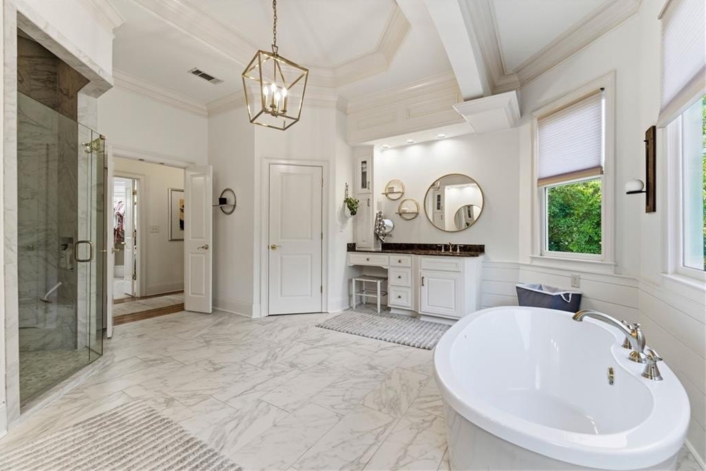 BOASTING PALATIAL, REGAL ARCHITECTURE REMINISCENT OF “THE WHITE HOUSE” THIS ONE-OF-A-KIND COUNTRY CLUB MASTERPIECE offers features you’d find in homes in the $4M+ range- and a unique very entertaining floor plan that you’d likely never seen before! Huge, majestic columns command the outside of this real-concrete quality exterior- flanked with upscale gardens. Enter this elevator-equipped floor plan with 5 fireplaces, salon, formal dining room (with fireside), formal paneled office. Unique and dramatic rotunda staircase, with remarkable domed ceiling- with backlight… Giant entertaining open floor plan. Magazine-grade chef’s luxury kitchen with every possible bell ’n whistle. Spectacular panoramic open views of hole #1 on this TPC nationally renown Greg Norman golf- featuring views of golf cart bridge over stream, and Irish bunkers- bringing action and excitement to your forever views! OVER $800,000 in whole-house modern expansions and renovations!!! “Juliet” outdoor balconies on the front and backside of home for bedroom walk-outs. Exotic trim package/ custom onsite millwork you cannot find an artisan to replicate any longer! Exposed beams. Barn-style contemporary doorways. BIG BIG bedrooms all with brand new en-suite baths. Clean, fresh upscale carpeting. 5th bonus room up… HUGE master up suite fit for a queen and king- that is inspiring, with fireplace too, and of course elevator serviced… A recent extension to the home added- creating large covered deck area for entertaining parties- with outdoor grill kitchen/ bar area… Breathtaking newly renovated terrace level featuring: Fabulous hi-def home theatre; 2nd office or music room; secondary Grand room w/ fireplace; (2) bedroom suites; 2nd kitchen or bar; elevator service (to all three levels); and a walk-out to premium Zoysia sodded rear yard with brand new spa, and gorgeous gardens- overlooking deep view of golf course… Located on quiet street as well. Home is bright inside, meticulously cared by Mr & Mrs Clean. Brand new hi-performance roof! Outstanding mechanicals. And is owned by a “techie” so this home is equipped with state of the art technologies… With new-build construction costs exceeding $400+/ ft, this is clearly one of the best deals you can buy. A gem like this does not come around often at this price- and indeed will not last long. If you seek the ultimate executive home with a custom, unique “signature” you can call your own, with genuine “wow effect” you’ve arrived…
