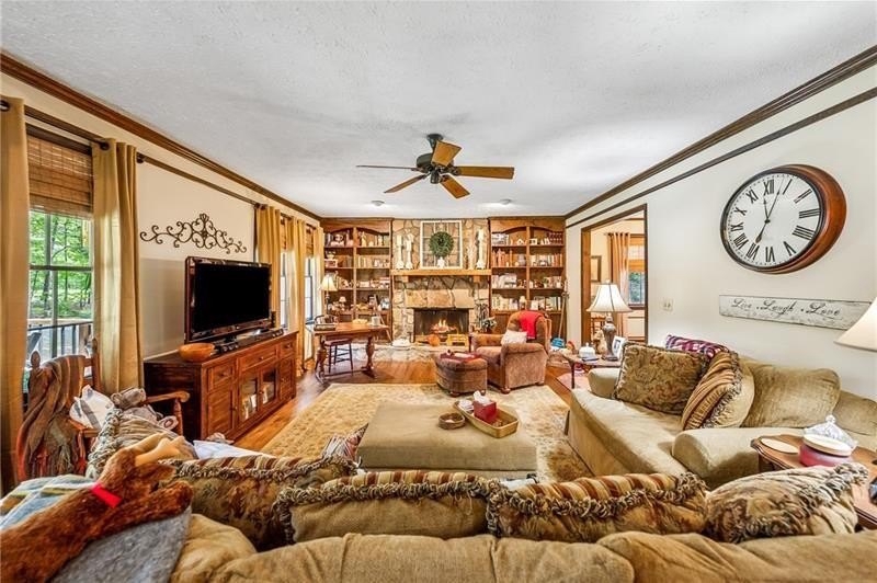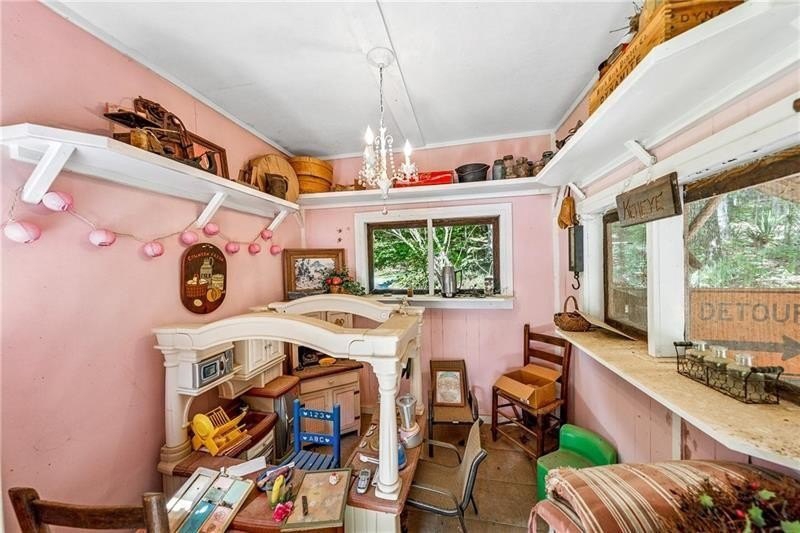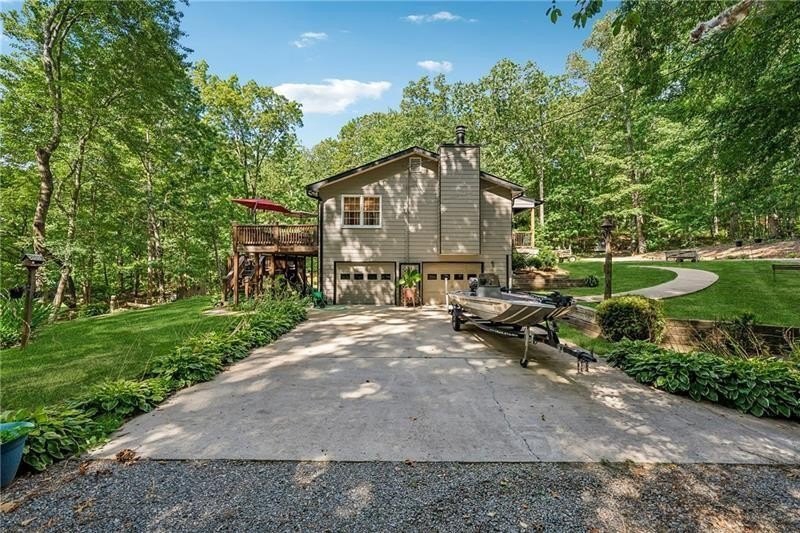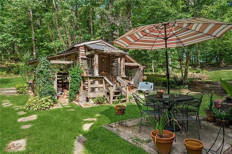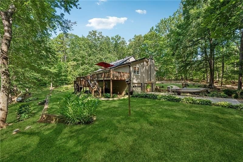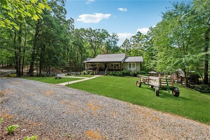 Don't miss out on this beautifully done raised ranch that has been so loved by one owner. It's time for this 6.43 acres to be home to a new family that will love it as much as the Seller's family has! The 3 bedroom, 2 bath home sits on a daylight unfinished basement so there is room to grow if you need additional bedrooms or flex space. The first thing you'll see upon entering is the large stately great room with floor to ceiling wooden bookshelves flanking a gorgeous stone fireplace. Find the floorplan in the images and you can see the separate dining room just off the great room so you can enjoy the fireplace while you have dinner. An eat in, country kitchen connects to the dinning room and also leads out to the expansive multi-tier deck that overlooks the absolute DREAM of a backyard complete with a pond, dock, stalled building, garden and an adorable outbuilding that can be a playhouse for the kids or space for your chickens. The Seller once had horses here so plenty of room for that if your horses need a home too. The 2 car garage is currently open to the basement so if you have boats, jet skis, etc you would have space to pull them in and still have room for your vehicle. Being just a short trek to Allatoona lake who wants to pay extra to store when you have this space already?? If you begin at the road you'll notice two graveled entrances to the property that connect via a wrap around drive. Pulling boats, campers, etc are a breeze with the in and out drive. Each of the driveways serves the one home but if a second homesite is in the plan you can utilize the second drive and road frontage to build another home , barn, etc. Currently the property is using public water but was once on a well so the possibility remains for the next owner to have a well.