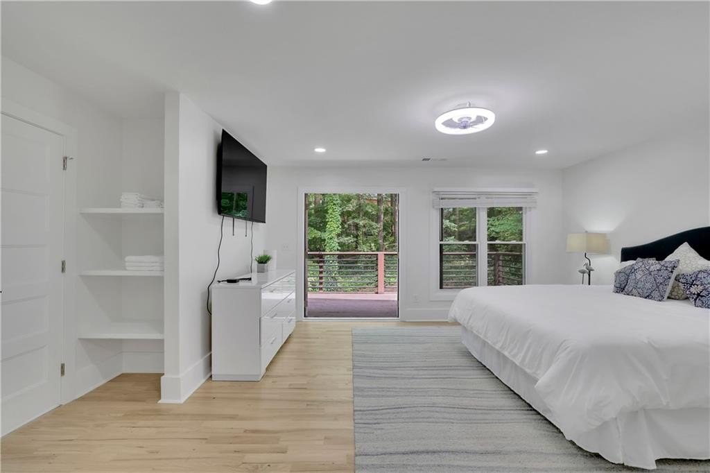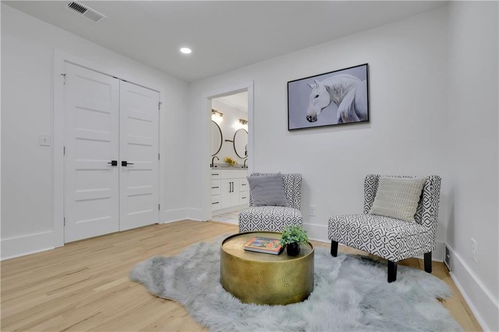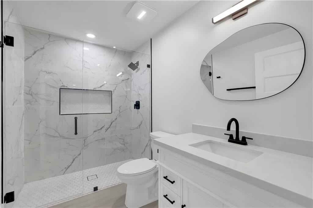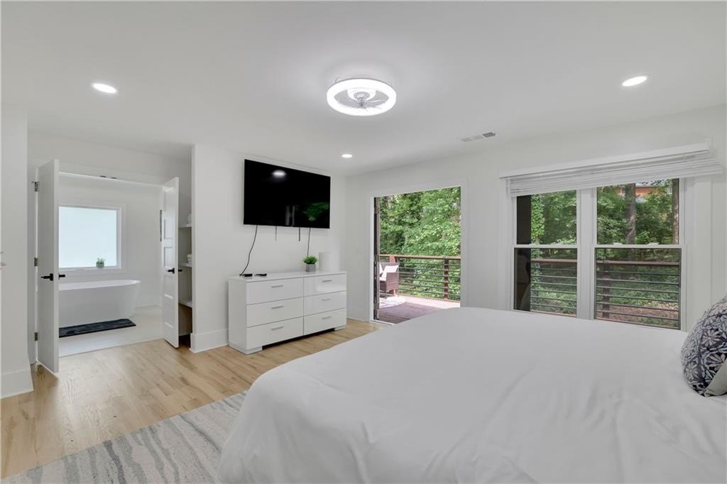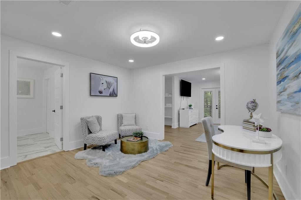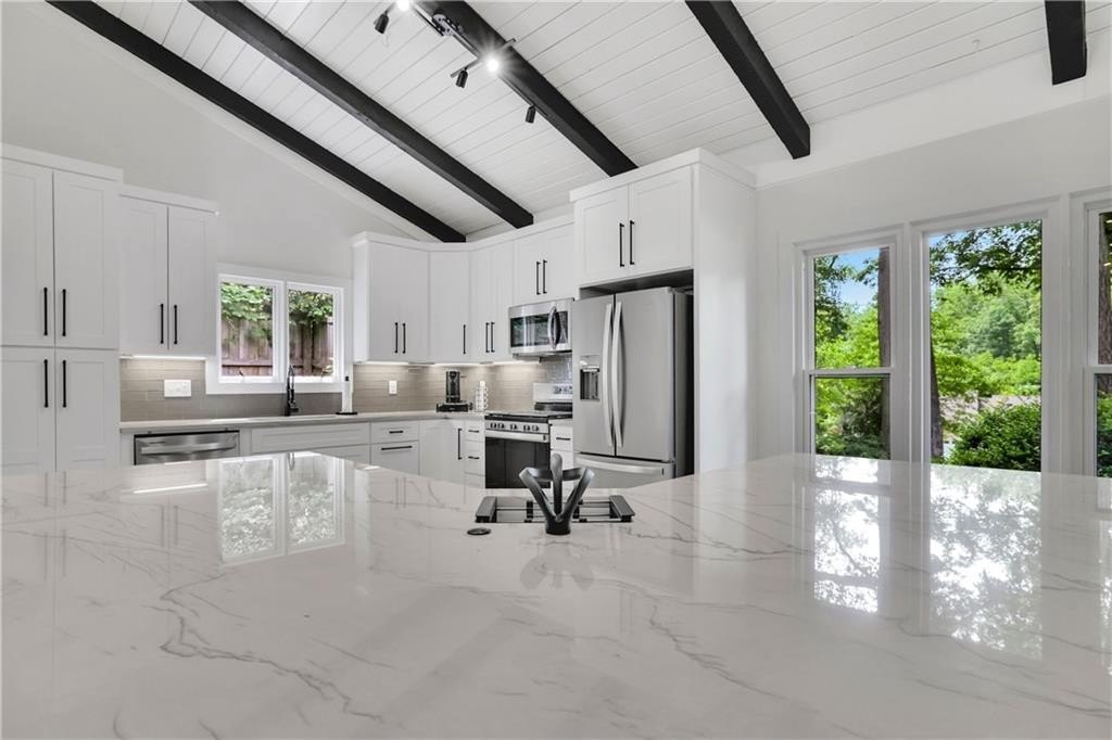 Welcome to your fully renovated home within the highly sought out Indian Hills neighborhood! Your new entryway leads into a beautiful, open-concept great room, an entertainer's kitchen perfect for hosting, and real hardwood floors throughout. The great room boasts high ceilings accentuated by contrasting beams and is surrounded by windows (including multiple skylights) that let in an abundance of natural light providing the space artistic character and an updated style. The gourmet kitchen highlights a large kitchen island that seats 6 with bar sink, quartz countertops, and high-end finishes.
