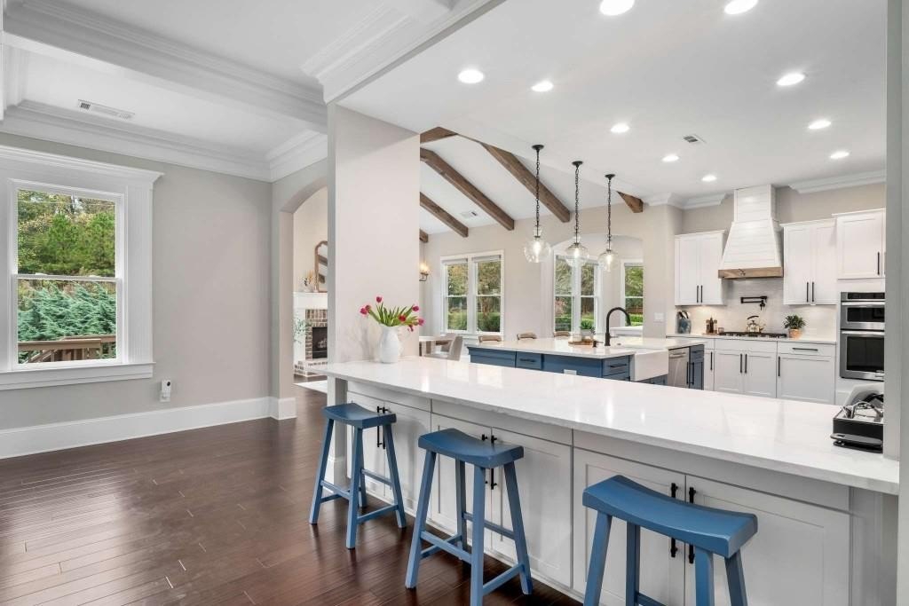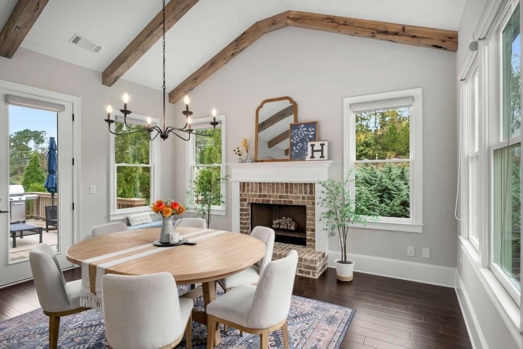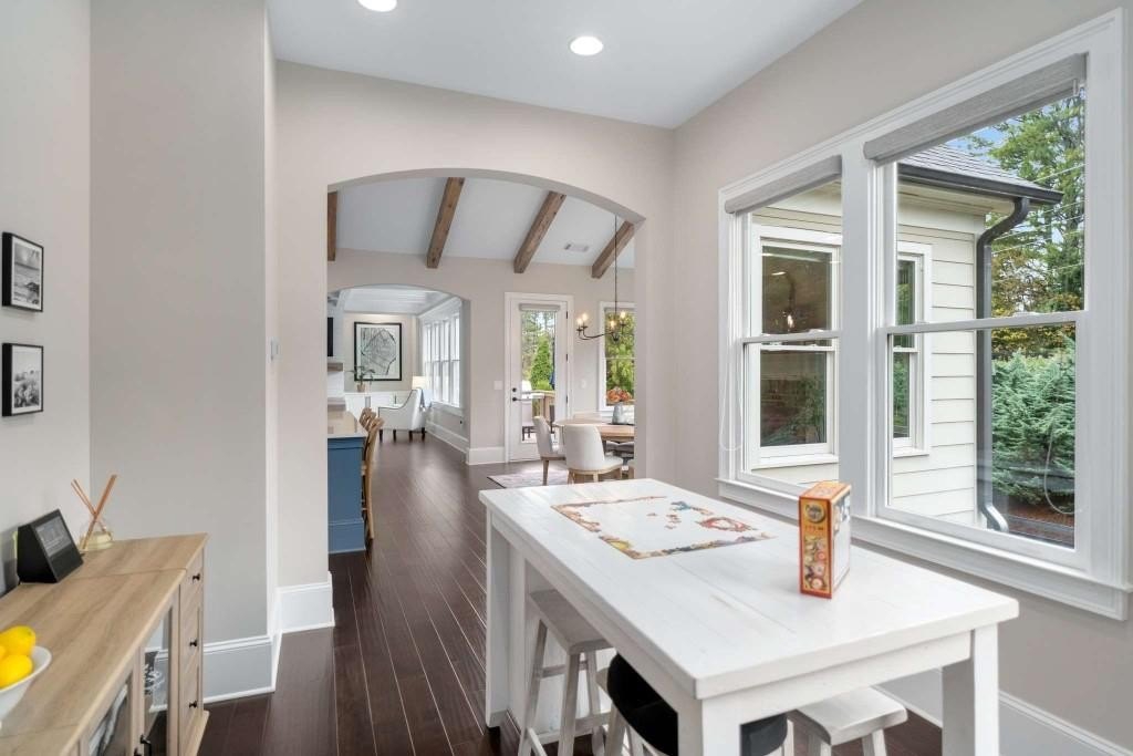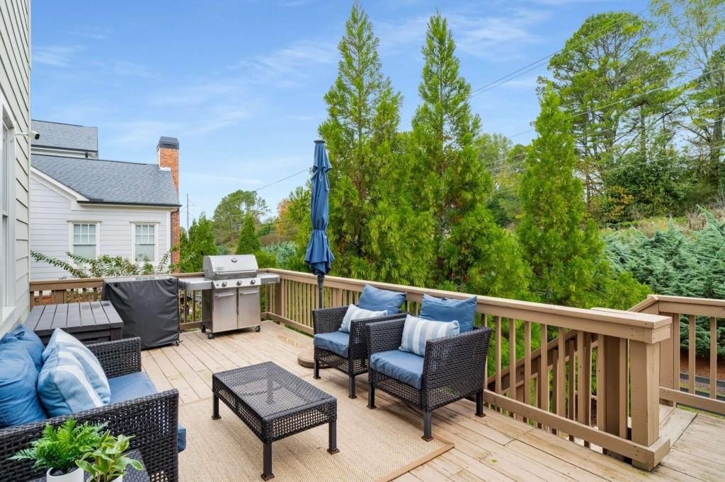 Welcome to 143 Nakomis Place, an exceptional masterpiece in Milton's Heritage at Crabapple community-where luxury living meets effortless access to the bustling Crabapple Market District, award-winning schools, boutique shops, farm-to-table dining, fitness studios, and lively community events. Zoned for top-rated Crabapple Crossing Elementary, Northwestern Middle, and Milton High, this move-in-ready gem has been lovingly maintained by its original owners since 2015. Step onto the gracious covered front porch-perfect for morning coffee, rocking chairs, and neighborhood play. Enter through the two-story foyer, where hardwoods, custom millwork, detailed trim, and designer light fixtures create a light-filled flow, flanked by a dedicated office and dining room. The open-concept heart of the home shines in the fireside great room with coffered ceilings, shiplap fireplace, and built-in alcoves-seamlessly connecting to a chef's kitchen that's as functional as it is stunning. The kitchen features an oversized island with Cambria quartz counters, an Italian clay sink, and areas for counter seating; a walk-in pantry; and a butler's pantry. Premium stainless-steel appliances elevate every meal with a 5-burner gas range and pot filler, overlooking yet another gathering place with a fireplace and double-volume ceilings with magnificent custom beams. Access your upper deck, with a dedicated grill gas line, which overlooks a private, fenced, level backyard oasis-ideal for alfresco dining, pets, gardening, or adding a pool. The space on the main level continues with a main-level bedroom, full bathroom, flex space, and mudroom with built-ins and convenient access to the three-car garage. While technically there is a three-car garage, there is ample space for a workshop, storage, and even a golf cart. Head upstairs to the primary suite, a tranquil spa-like sanctuary featuring dual vanities, a deep soaking tub, frameless glass shower, and an expansive custom walk-in closet. Upstairs you will also find a loft-envisioned as a media lounge, teen hangout, or homework nook-overlooking three generous bedrooms: two sharing a Jack-and-Jill bath, and one with a private ensuite, all with ample closets. The fully finished daylight terrace level includes a spacious recreation room, media setup, exercise/flex space, a full bedroom, and full bath. A walk-out patio blends seamlessly with the backyard for year-round indoor-outdoor enjoyment. The HOA delights with lawn maintenance, trash service, and resort-style amenities-pool, clubhouse, and quick access to a playground, dog park, scenic walking trails, and pocket parks. Minutes from GA-400, Avalon, Wills Park, downtown Alpharetta, and Historic Roswell, yet tucked away in one of Milton's most desired communities. Thoughtful owner touches abound, such as fresh neutral paint throughout, smart home technology, and more. Visit 143 Nakomis today!