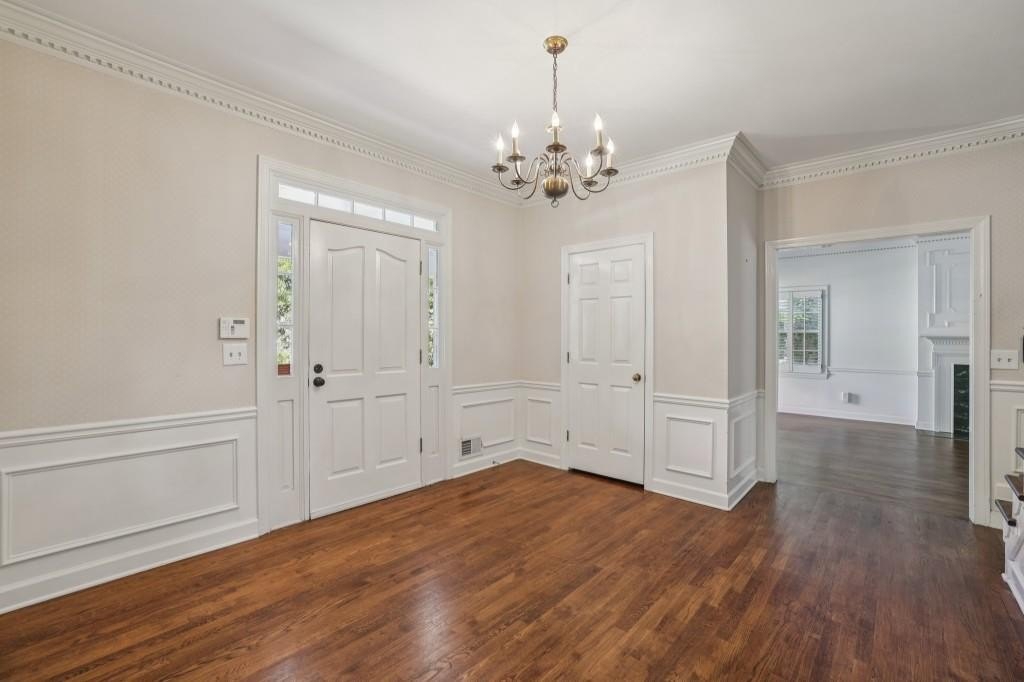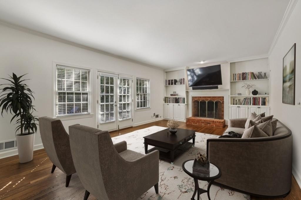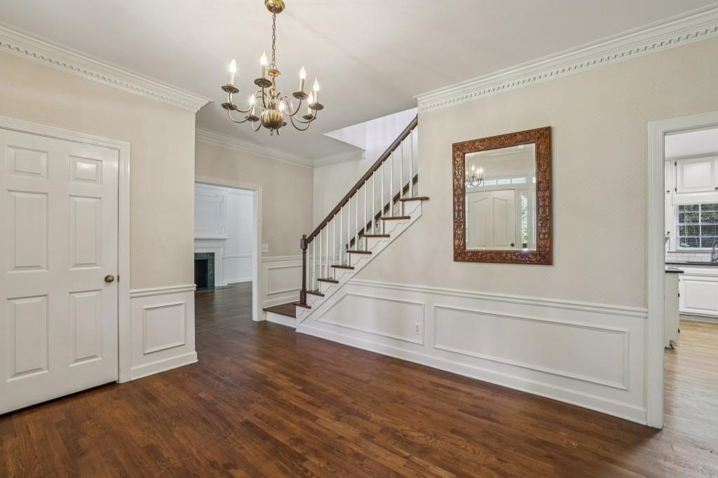 Southern Charmer with Private Pool in River Chase! A true Sandy Springs Oasis, this timeless White Brick Traditional is nestled in the highly sought-after River Chase Swim & Tennis Community, just steps from the Chattahoochee River. This beautiful residence on a Level Lot offers the perfect blend of Southern charm and modern comfort, complete with a Private Backyard Oasis featuring a Sparkling In-Ground Pool and lush wooded backdrop. The curb appeal will stop you in your tracks a Classic White Brick exterior with a Large Covered Front Porch welcomes you home. Inside, the Spacious Foyer sets the tone with Original Hardwood Floors, Wainscoting Details, Custom Wooden Shutters, and Crown Molding throughout. Natural light fills every corner, creating a bright and inviting atmosphere. To the left, a Formal Living Room centers around a Decorative Marble Fireplace. The Elegant Dining Room easily accommodates large gatherings and holiday entertaining. The Kitchen is designed for everyday function and timeless style, featuring Stone Countertops, White Cabinetry, Classic Subway Tile Backsplash, Stainless Steel Appliances, and a Breakfast Bar ideal for casual dining. A Breakfast Room adds additional seating and overlooks the serene backyard. The Fireside Family Room offers a warm retreat with Built-In Cabinetry flanking the Brick Fireplace and French Doors that open to the private patio and pool. A Bedroom or Home Office, Full Bathroom, and Laundry Room complete the main level. Upstairs, the Spacious Primary Suite offers room for a sitting area and includes Two Walk-In Closets and an Ensuite Bathroom with Double Vanity, Soaking Tub, and Separate Shower. Three additional bedrooms share a Full Hall Bathroom, and a Large Bonus Room provides the perfect Flex Space for a Playroom, Home Gym, or Media Room. The Unfinished Basement offers excellent storage and workshop potential, while the Two-Car Garage and Extended Driveway provide everyday convenience. Step outside to your Private Backyard Retreat, complete with a Sparkling Pool, Diving Board, and generous patio space perfect for entertaining or relaxing. Located in one of Sandy Springs' most desirable communities, River Chase is known for its Active Swim & Tennis Club, Tree-Lined Streets, and River Access. Enjoy two lit tennis courts, a sport court, pool and pool house with kitchen and grilling area, playground, bocce court, firepit, and year-round neighborhood events. Just minutes from Chattahoochee Recreation Area, City Springs, Buckhead, Downtown Roswell, and top-rated Public and Private Schools, this home offers an unmatched lifestyle of Privacy, Community, and Convenience.