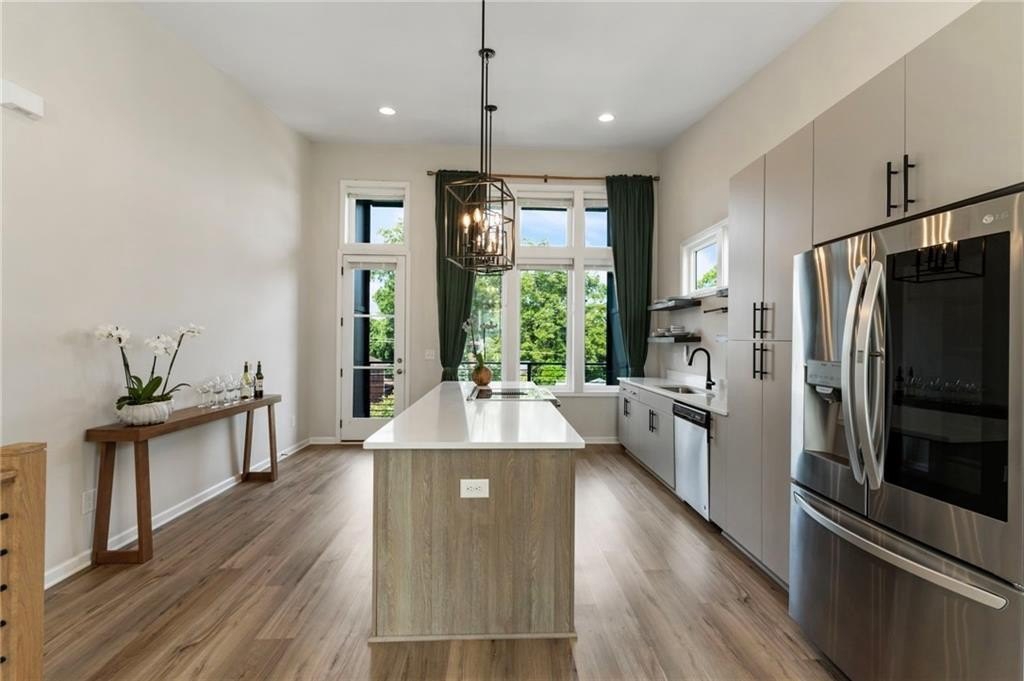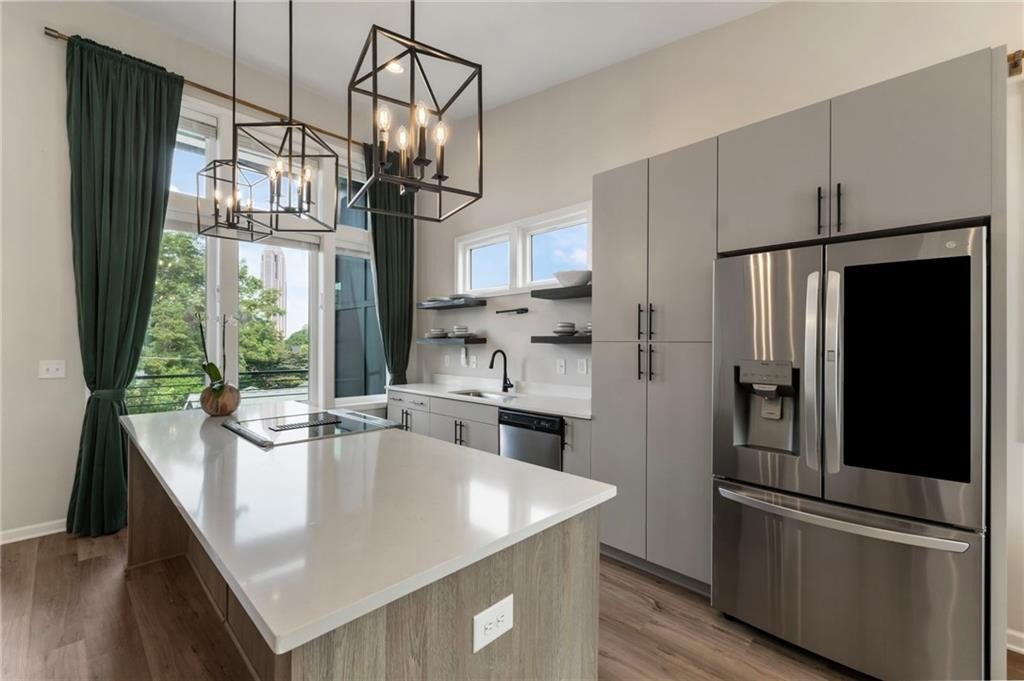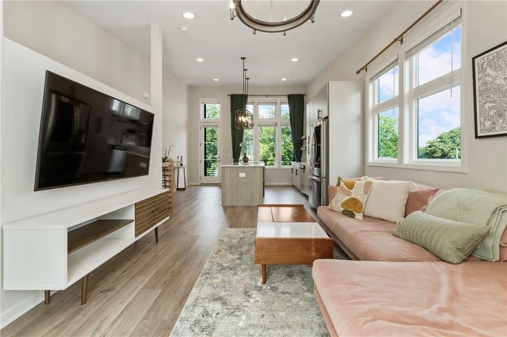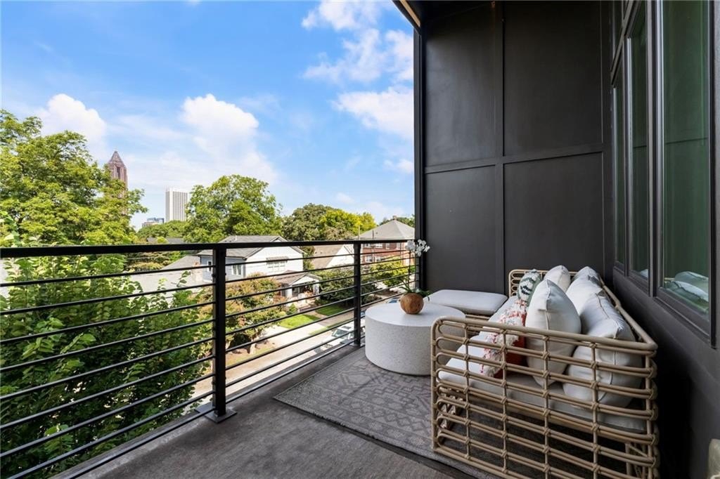 EXPERIENCE CONTEMPORARY LIVING · PERFECTLY POSITIONED IN OLD FOURTH WARD · END UNIT · MODERN DESIGN · FLOODED WITH NATURAL LIGHT! OPEN CONCEPT · FLOOR TO CEILING WINDOWS · CONNECTIVITY BETWEEN LIVING, DINING AND KITCHEN · GENEROUS QUARTZ ISLAND · CHEF'S KITCHEN · SLEEK HIGH-END APPLIANCES · LARGE COVERED BALCONY WITH SKYLINE VIEWS AS WELL AS GREENERY OF SURROUNDING TREES · THIS IS THE PERFECT HOME PAIRING URBAN VIBRANCY, MODERN LIVING AND NATURAL CALM! TWO SPACIOUS BEDROOMS WITH TWO PRIVATE BATHS · LAUNDRY TUCKED BEHIND BARN DOORS · TERRACE LEVEL OFFERING VERSATILITY · CURRENTLY A HOME GYM WITH CUSTOM CUT GYM FLOORING AND A TONAL GYM MACHINE · EV CHARGER · MINUTES FROM PONCE CITY MARKET, THE BELTLINE AND PIEDMONT PARK. THIS TOWNHOME DELIVERS SOPHISTICATION, LIVABILITY AND LOCATION ALL IN EQUAL MESSURE!
