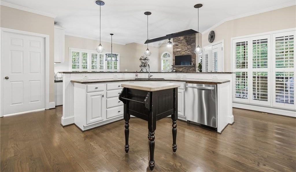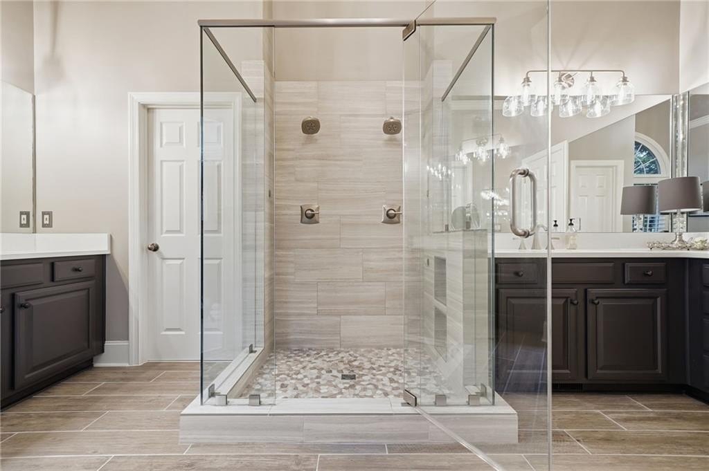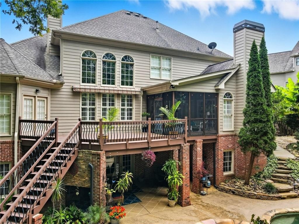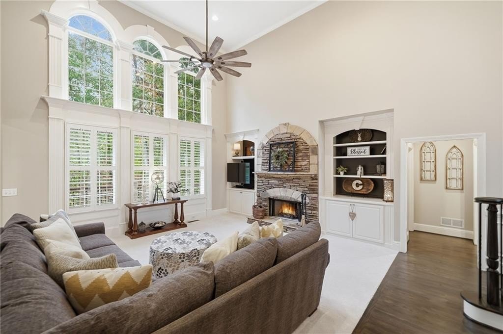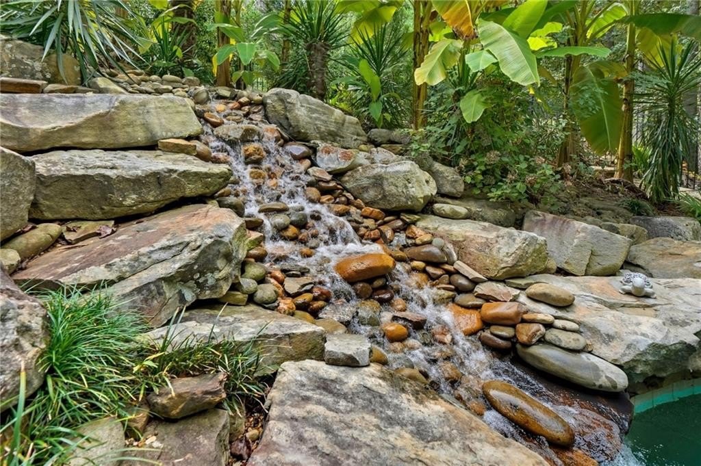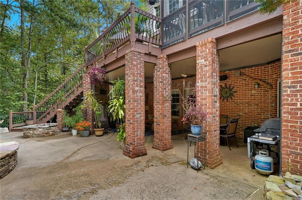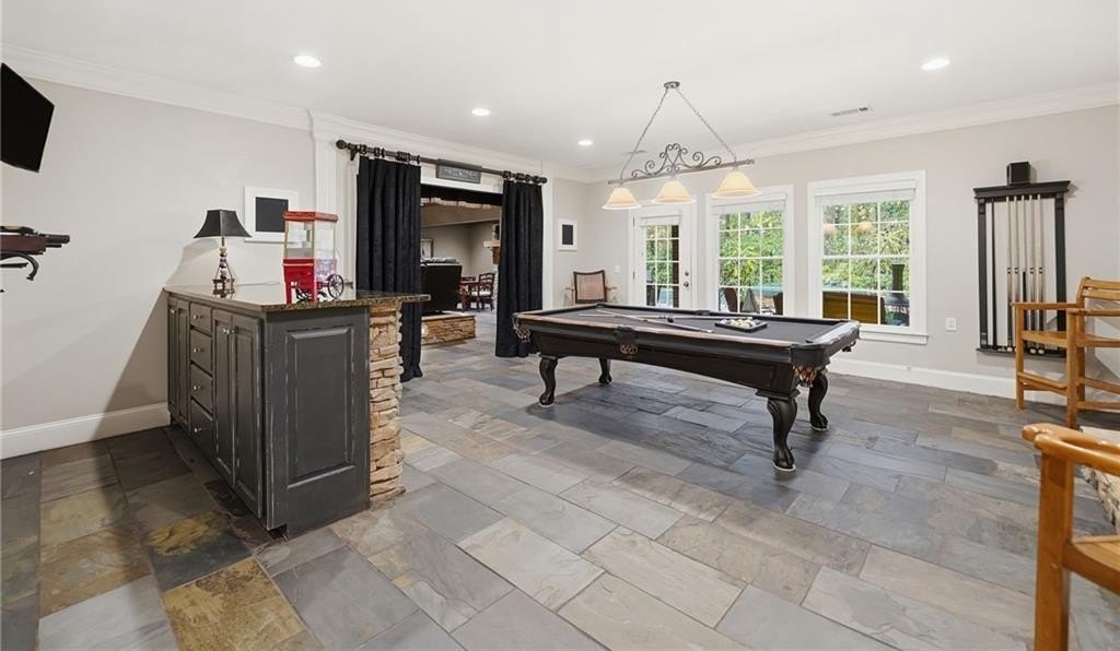 An engaging masterpiece in beautiful Bridgemill Golf & Country Club sits beautifully on the golf course in a quiet cul-de-sac. This exquisite home on just under an acre offers total privacy. Inside, the residence reveals extraordinary craftsmanship, double story foyer, a beautiful combination of genuine hardwood floors and new carpet, an office/library with French doors, plantation shutters throughout the entire home, a double story great room that lets all the natural light in, with stone fireplace and flanked by built-in book cases to start. The kitchen being the heart of the home offers seamless functionality with granite counter tops, coffee bar, walk-in pantry a large island, dinette area and keeping room with stone fireplace, and beams. To finish off the area, a screened in porch bringing the outdoors in. The large primary suite is on the main with tray ceiling, a door out to the back deck which is wooded to the golf course. The primary bath is a spa offering double shower heads, a freestanding soaking tub, double vanities, and his and her custom closets. As you head upstairs to second floor there is a loft area and 4 spacious bedrooms, with private sink areas in each room, then sharing shower and commode. The basement offers a true movie theater with custom theater curtains a sitting area for cards or board games. A pool table or ping pong room with a bar, a primary sized bedroom with fireplace a mini wet bar area and two workout centers. The estates complete livable outdoor terrace level also awaits detailing its finished off pillars, under decking, tiled patio and textured concrete and all anchors an amazing aquatic environment. A natural stream like water feature cascades into the pool completing the sounds of being outdoors and a jacuzzi hot tub completes the experience. Sitting on the golf course this home offers the perfect blend of seclusion and convenience, with a beautifully updated interior, spacious living areas and room to roam both inside and out. Shopping the outlets and commuting made easy with the Peach Pass.