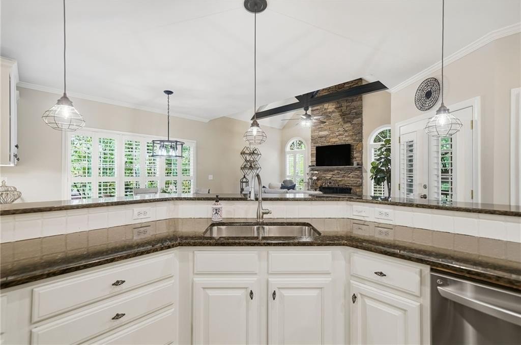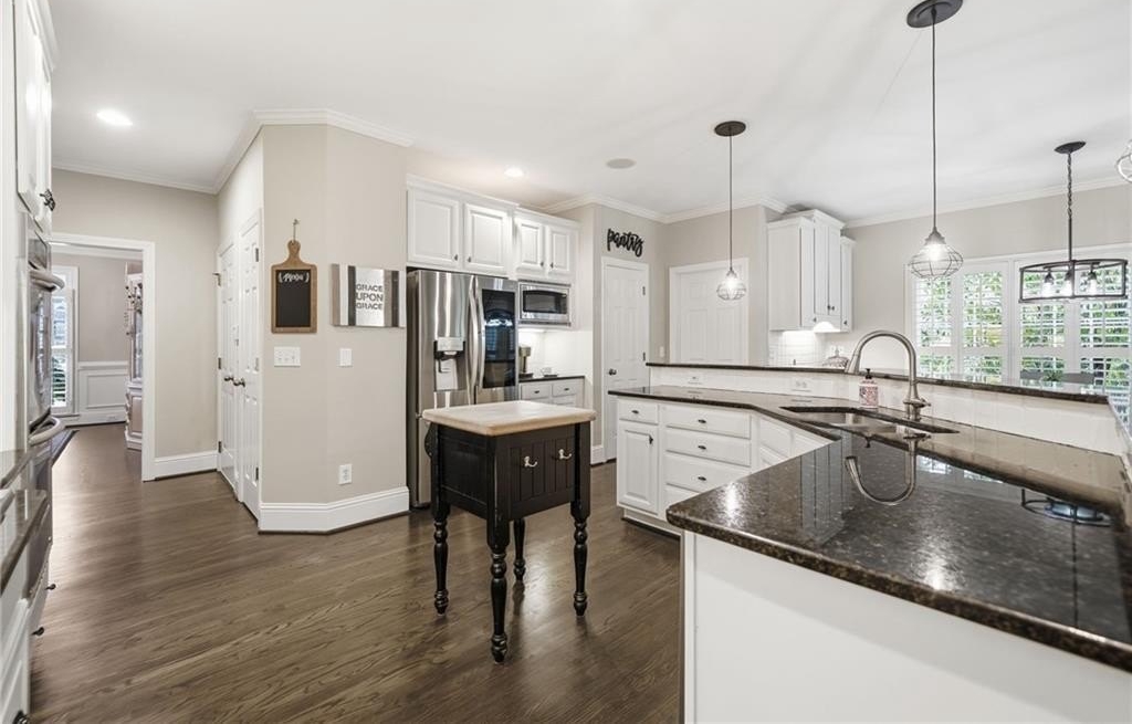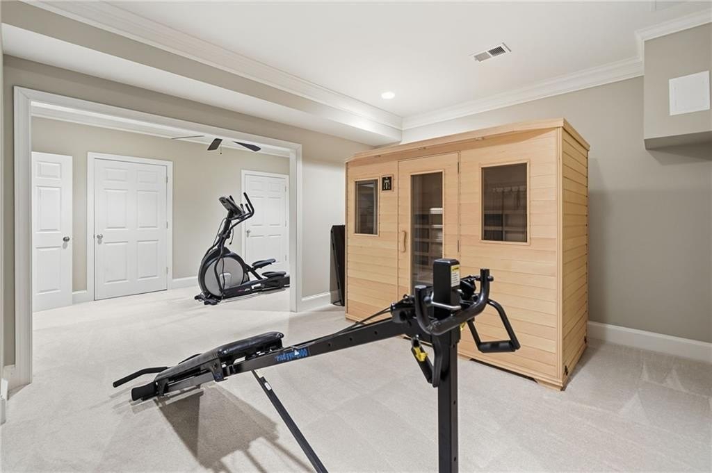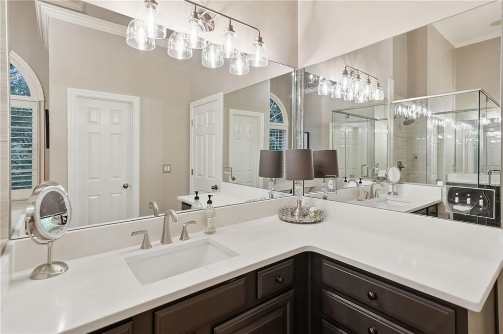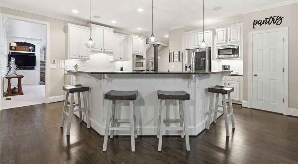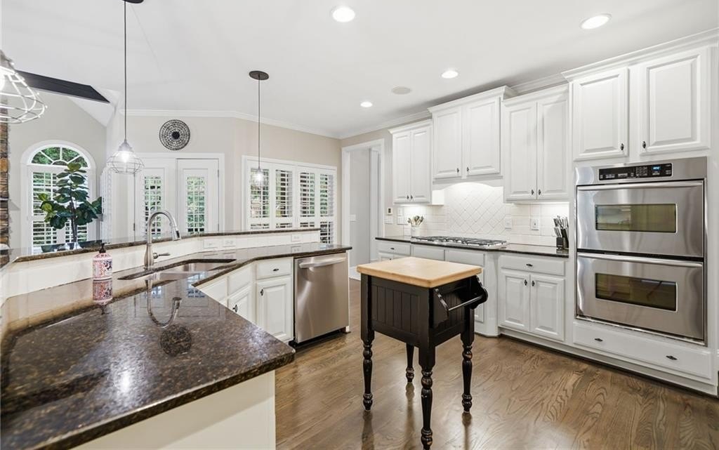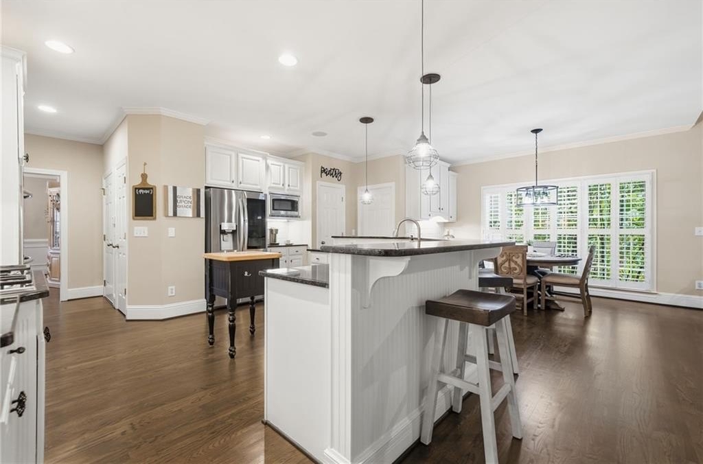 An engaging masterpiece in beautiful Bridgemill Golf & Country Club sits beautifully on the golf course in a quiet cul-de-sac. This exquisite home on just under an acre offers total privacy. Inside, the residence reveals extraordinary craftsmanship, double story foyer, a beautiful combination of genuine hardwood floors and new carpet, an office/library with French doors, plantation shutters throughout the entire home, a double story great room that lets all the natural light in, with stone fireplace and flanked by built-in book cases to start. The kitchen being the heart of the home offers seamless functionality with granite counter tops, coffee bar, walk-in pantry a large island, dinette area and keeping room with stone fireplace, and beams. To finish off the area, a screened in porch bringing the outdoors in. The large primary suite is on the main with tray ceiling, a door out to the back deck which is wooded to the golf course. The primary bath is a spa offering double shower heads, a freestanding soaking tub, double vanities, and his and her custom closets. As you head upstairs to second floor there is a loft area and 4 spacious bedrooms, with private sink areas in each room, then sharing shower and commode. The basement offers a true movie theater with custom theater curtains a sitting area for cards or board games. A pool table or ping pong room with a bar, a primary sized bedroom with fireplace a mini wet bar area and two workout centers. The estates complete livable outdoor terrace level also awaits detailing its finished off pillars, under decking, tiled patio and textured concrete and all anchors an amazing aquatic environment. A natural stream like water feature cascades into the pool completing the sounds of being outdoors and a jacuzzi hot tub completes the experience. Sitting on the golf course this home offers the perfect blend of seclusion and convenience, with a beautifully updated interior, spacious living areas and room to roam both inside and out. Shopping the outlets and commuting made easy with the Peach Pass.
