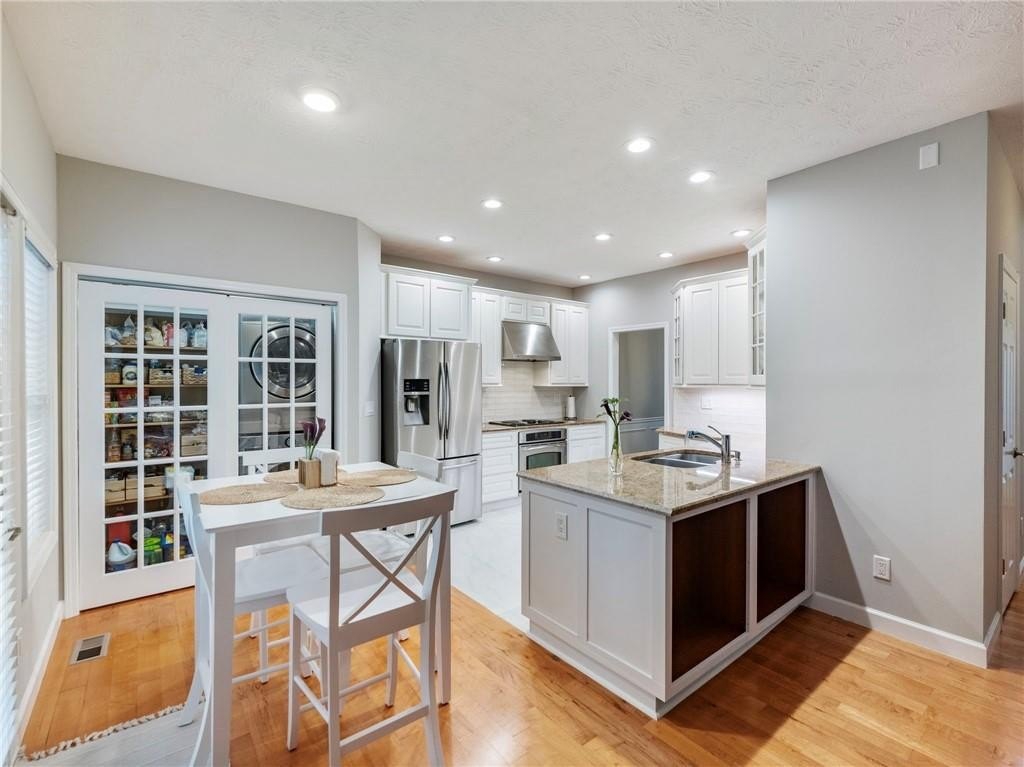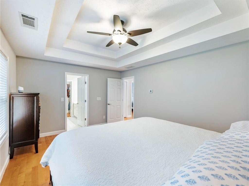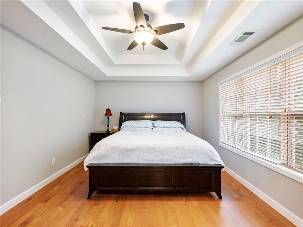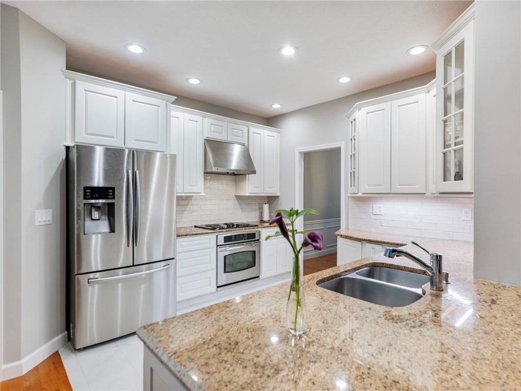 NEWLY RENOVATED! Beautifully updated classic home in a sought-after location! This charming, move-in-ready home has been thoughtfully renovated from top to bottom! Enjoy a flexible floor plan with an inviting office/flex room, a formal dining area, and an open-concept kitchen that seamlessly flows into the living room — perfect for entertaining or relaxing with backyard views. The kitchen shines with granite countertops and stylish upgrades, including new tile flooring, new backsplash, undermount cabinet lighting, and a wall-mounted vent hood vented to the outside. The upstairs primary bedroom is a true retreat, featuring trey ceilings that add a sense of spaciousness and elegance. All bathrooms have been beautifully refreshed with new quartz countertops, new elegant tile finishes, new plumbing and lighting fixtures, creating a luxurious atmosphere for your daily routine. The classic hardwood flooring throughout the home adds warmth and character, blending modern updates with timeless style. The basement garage offers generous parking and storage versatility, with convenient EV charger hardwiring for electric vehicle owners. Step outside to your beautiful backyard — featuring a newly built deck, an additional concrete patio slab, & fence, perfect for outdoor gatherings, gardening, or simply enjoying a quiet evening. The last stage of renovation includes refreshing the interior and exterior paint—a finishing touch that provides peace of mind knowing everything is newly completed and ready to appreciate. This raised corner-lot home is filled with natural light and enhanced by community-managed lawn maintenance, giving you all the benefits of low-maintenance living in a prime location!