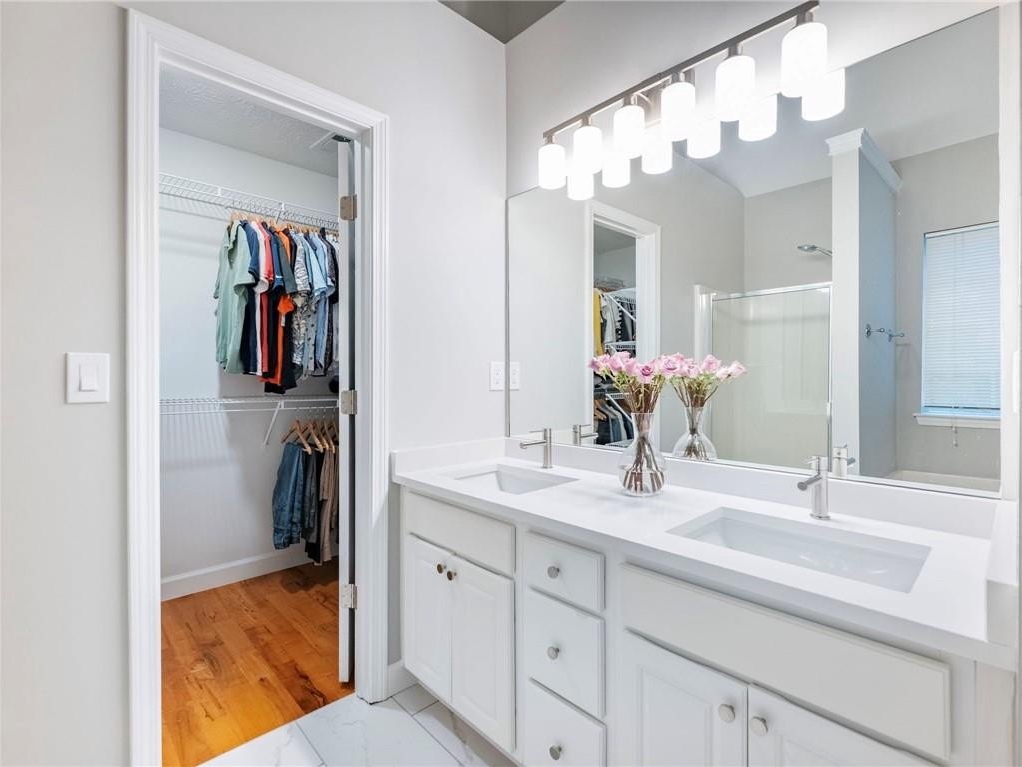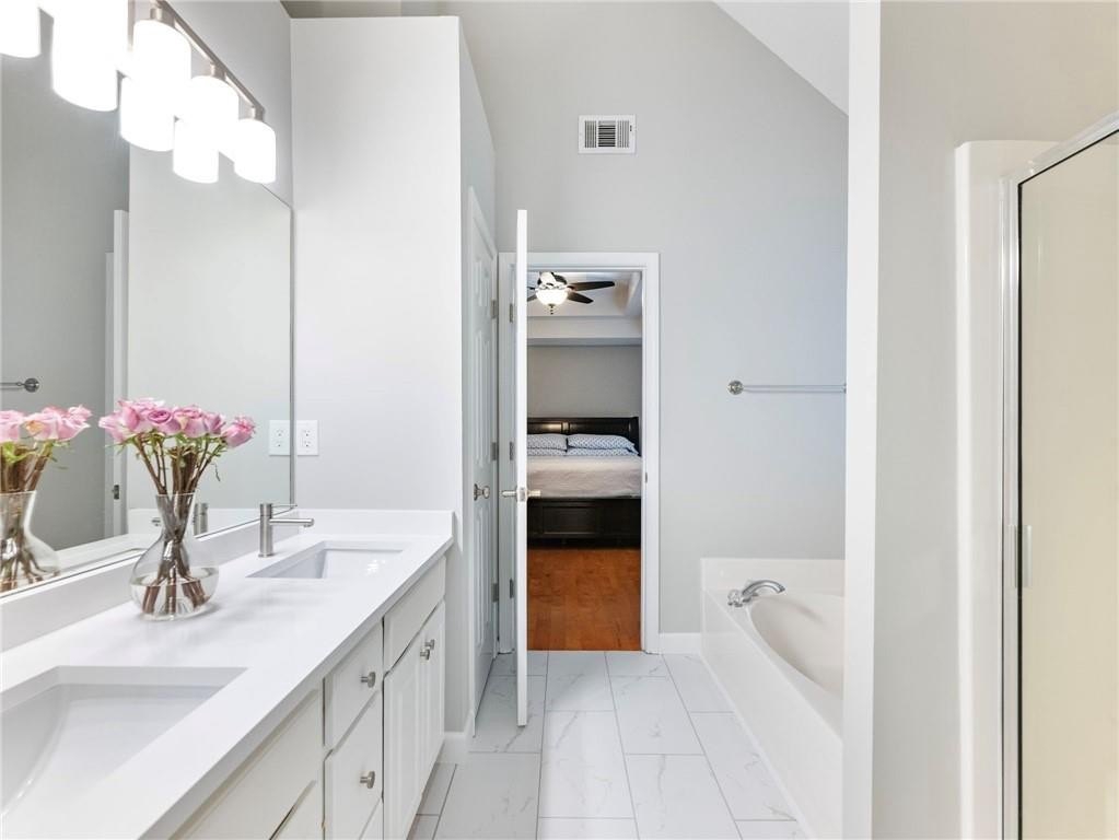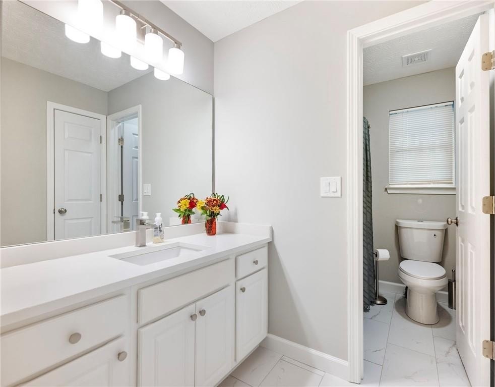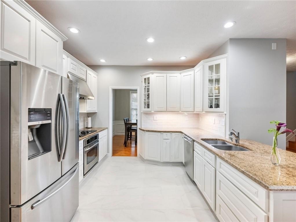 NEWLY RENOVATED! Beautifully updated classic home in a sought-after location! This charming, move-in-ready home has been thoughtfully renovated from top to bottom! Enjoy a flexible floor plan with an inviting office/flex room, a formal dining area, and an open-concept kitchen that seamlessly flows into the living room — perfect for entertaining or relaxing with backyard views. The kitchen shines with granite countertops and stylish upgrades, including new tile flooring, new backsplash, undermount cabinet lighting, and a wall-mounted vent hood vented to the outside. The upstairs primary bedroom is a true retreat, featuring trey ceilings that add a sense of spaciousness and elegance. All bathrooms have been beautifully refreshed with new quartz countertops, new elegant tile finishes, new plumbing and lighting fixtures, creating a luxurious atmosphere for your daily routine. The classic hardwood flooring throughout the home adds warmth and character, blending modern updates with timeless style. The basement garage offers generous parking and storage versatility, with convenient EV charger hardwiring for electric vehicle owners. Step outside to your beautiful backyard — featuring a newly built deck, an additional concrete patio slab, & fence, perfect for outdoor gatherings, gardening, or simply enjoying a quiet evening. The last stage of renovation includes refreshing the interior and exterior paint—a finishing touch that provides peace of mind knowing everything is newly completed and ready to appreciate. This raised corner-lot home is filled with natural light and enhanced by community-managed lawn maintenance, giving you all the benefits of low-maintenance living in a prime location!