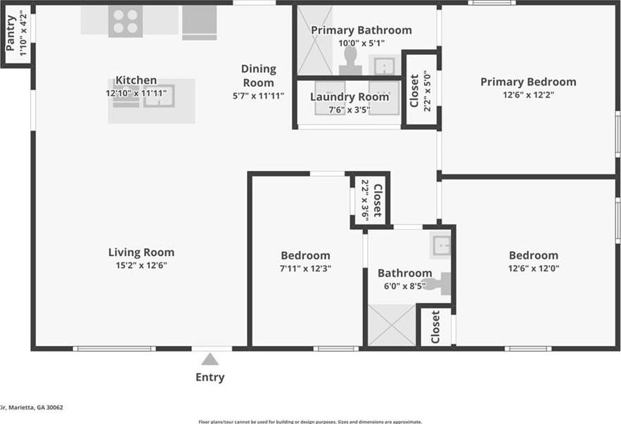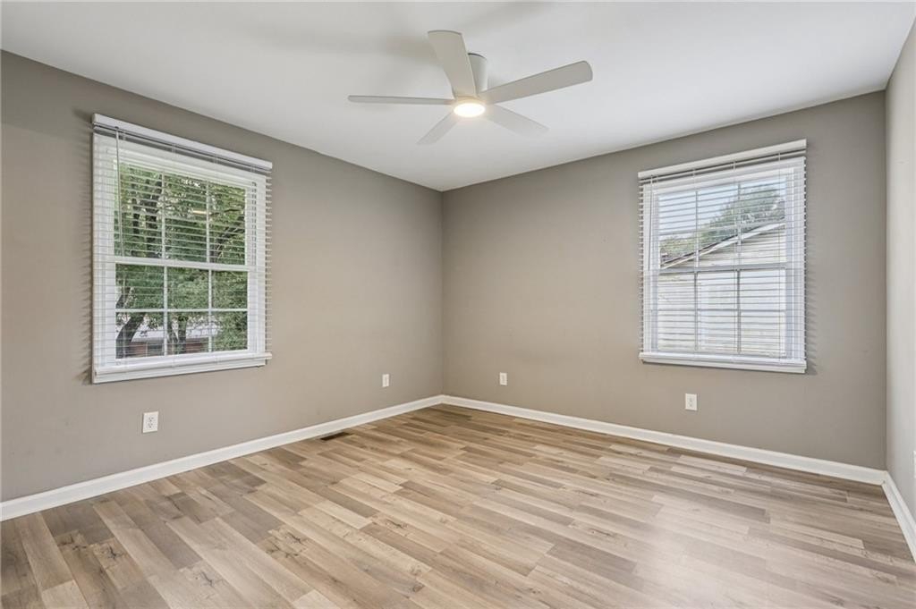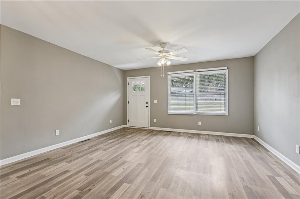 Updated Mid-Century Modern Comfort with Southern Charm! Beautifully updated with bright, open spaces and timeless touches, this home offers both style and practicality in a prime Marietta location. Step inside to discover gorgeous, easy-to-maintain laminate wood floors that flow through the sunlit living room. The on-trend kitchen impresses with stylish light fixtures, a spacious island with seating, stone countertops, and a classic tile backsplash—perfect for everyday living or entertaining. The spacious primary suite features an updated en-suite bath with a walk-in shower. Two secondary bedrooms and a full hall bath provide room for everyone! Outside, enjoy quiet mornings and peaceful evenings in a well-maintained yard fenced on three sides. Blue Jays and Cardinals flit among the trees as the sun rises over the backyard and sets behind the trees in front. The neighborhood has no HOA and offers true convenience—just 6 minutes to I-75, 8 minutes to Marietta Square, and 13 minutes to I-285. You’re close to top-rated schools (Sprayberry high school is a Georgia Blue Ribbon School of Excellence), Kennesaw Mountain, the Battery, and all that Atlanta has to offer. Don't miss your opportunity to book your tour today!