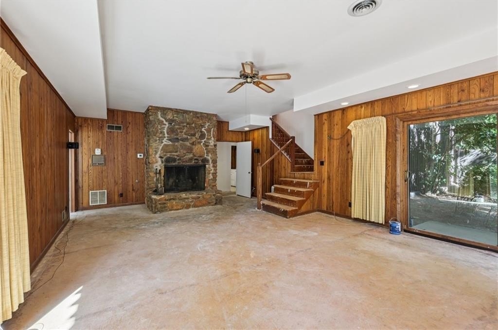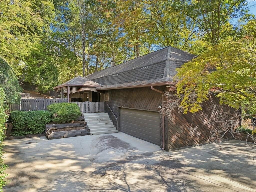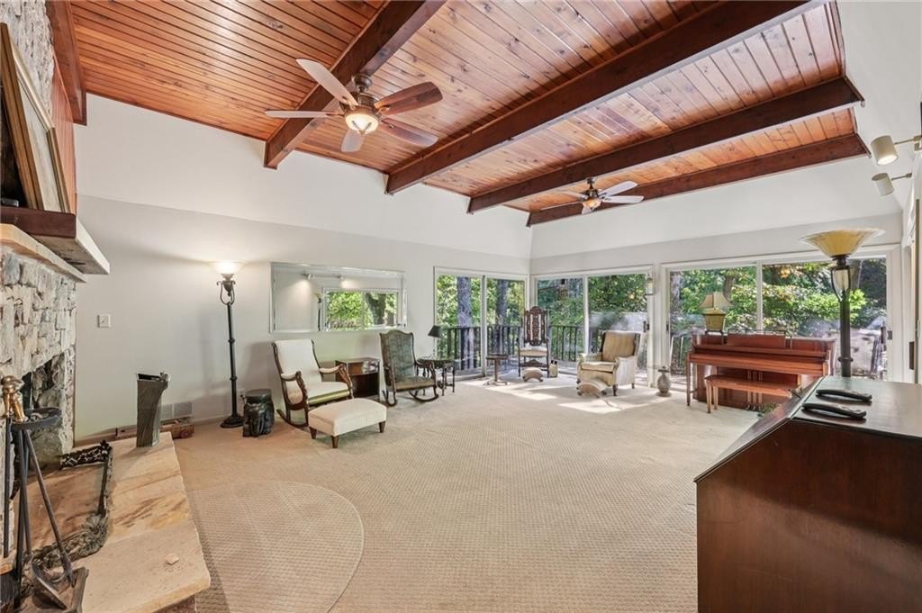 Incredible opportunity on one of Sandy Springs most sought-after streets! This mid-century modern sits on a private 1.42-acre corner lot complete with a pool and tennis court, offering endless potential for a stunning renovation or new construction. The existing 4-bedroom, 4-bath contemporary home features hardwood floors, beamed ceilings, and generous natural light throughout. The main level includes a primary suite, two additional bedrooms, dining room, and family room with a stacked stone fireplace and sliding doors opening to a deck overlooking the wooded property. The terrace level includes a large rec room with fireplace, three bedrooms, two full baths, and plenty of unfinished storage. Bring your vision this property could become a showplace with the right updates or a spectacular site for a new custom home. Prime location near the Chattahoochee River, Lost Corner Nature Preserve, parks, restaurants, and top-rated schools. Sold As-Is. A rare chance to create your dream estate in Sandy Springs!