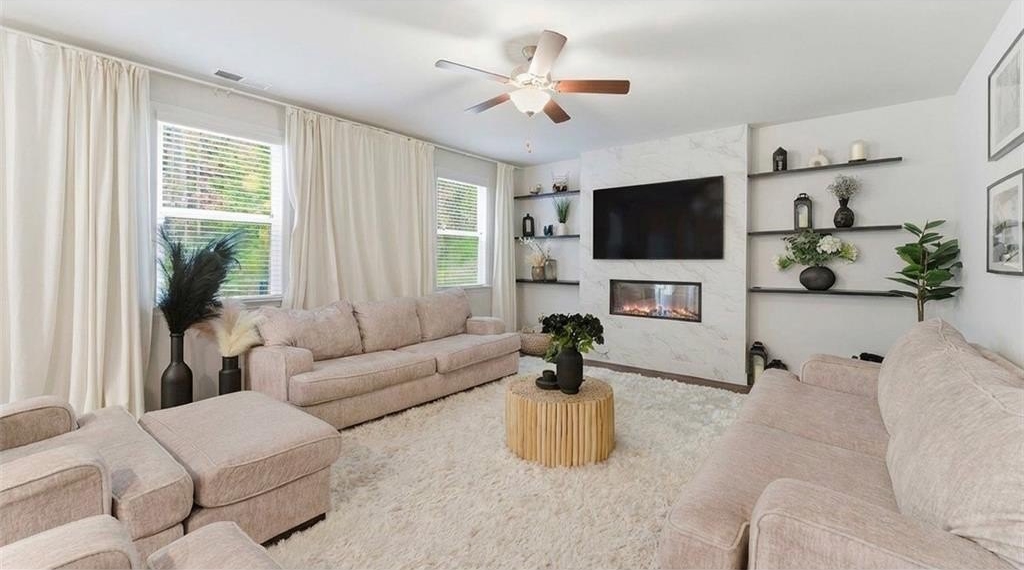 Warmth meets charm, this is more than just a house... it's home. Designed for comfort and connection, this beautifully cared-for residence welcomes you with a bright, open layout, soft natural light, and spaces made for everyday living and special memories. The main level offers a flexible guest suite with full bath, a cozy family room featuring custom built-in shelving and an elegant electric fireplace - the perfect spot to curl up on quiet evenings. In the formal dining room, a designer wood accent wall brings a custom touch and timeless character, setting the stage for dinner parties and holiday gatherings. The open kitchen ties it all together with generous cabinet space, a center island, and seamless flow into the living area so the cook is always part of the conversation. Upstairs, the owner's suite is a private retreat, complete with a spa-style bath and a custom walk-in closet system designed. Three more bedrooms and a full bath provide space for everyone - and laundry is just steps away for convenience. Step outside and you'll find a serene backyard with a gas line ready for your grill. This home has been lovingly maintained and thoughtfully upgraded, offering comfort, style, and a move-in-ready experience. Tucked in a quiet, friendly neighborhood near shopping, dining, and top-rated North Paulding schools, this home is calling for its next happy chapter. Come feel the difference - and fall in love.