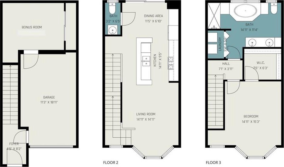 The top floor hosts the owner’s suite with a walk-in closet, a spacious bath with jetted tub, separate walk-in shower, and conveniently located laundry.