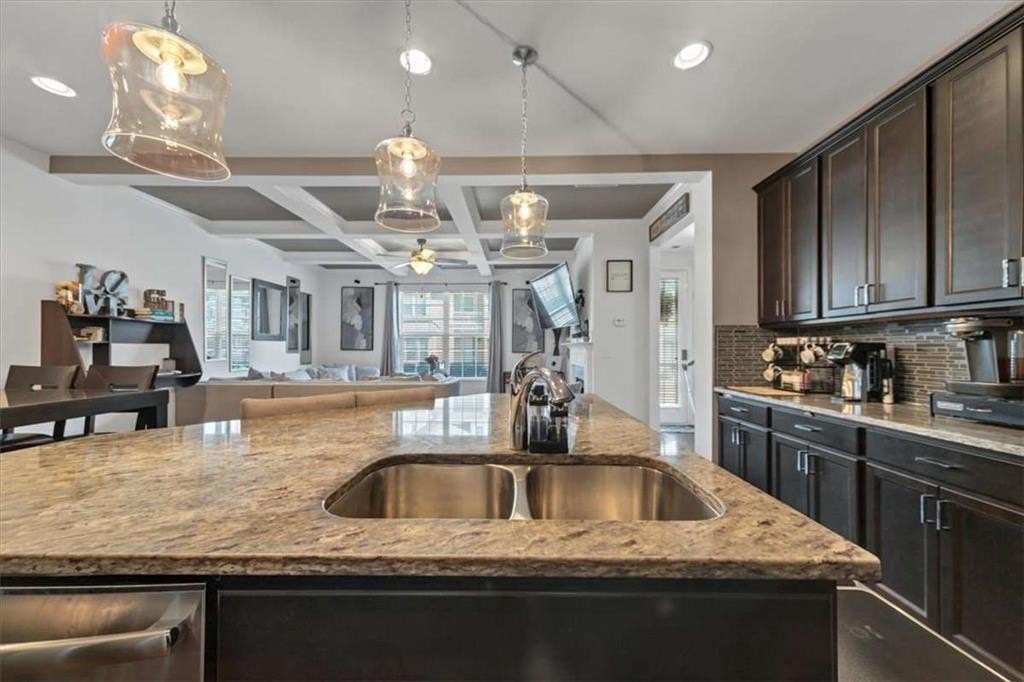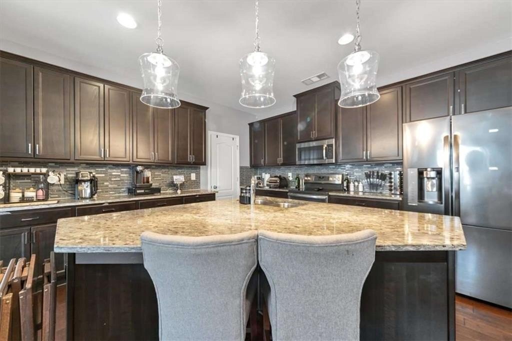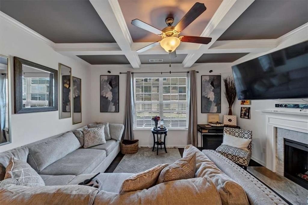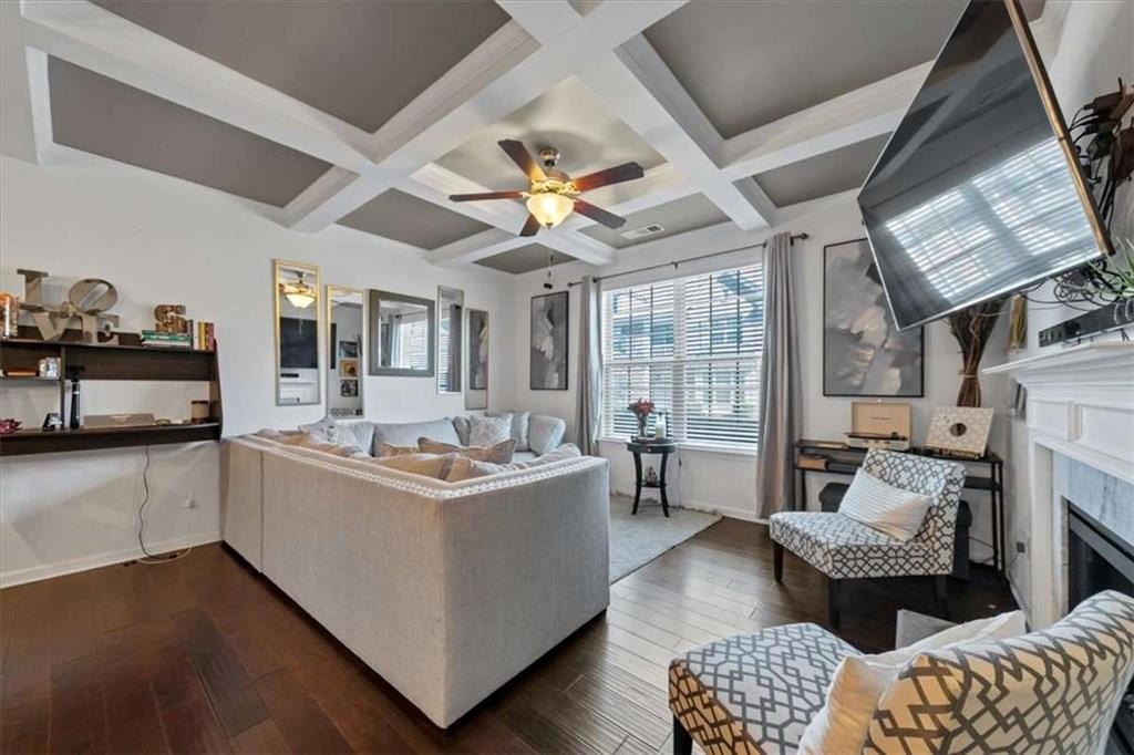 Welcome to 7728 Rutgers Circle - a beautifully maintained end-unit townhome in a highly sought-after Fairburn community! This spacious 3-bedroom, 2.5-bath home combines modern comfort with everyday convenience. The inviting open-concept main level features elegant hard surface flooring, coffered ceilings, and a cozy fireplace - perfect for both relaxing and entertaining. The chef-inspired kitchen showcases 42-inch cabinets, granite countertops, stainless steel appliances, a stylish tile backsplash, and a large island with seating for casual dining. Upstairs, enjoy a versatile loft space ideal for an office, media room, or additional entertaining area. The oversized primary suite serves as a true retreat, offering a sitting area, a spa-style bath with a separate soaking tub and shower, and an expansive walk-in closet. Step out onto your private Juliet balcony to enjoy morning coffee or unwind after a long day. Additional highlights include a two-car garage, ample storage, and a welcoming front porch that adds curb appeal. The home is located within a well-maintained neighborhood with an active HOA that fosters a strong sense of community. Conveniently positioned near Interstate 85, this home offers quick access to Hartsfield-Jackson Atlanta International Airport, Trilith Studios, and a variety of shopping and dining destinations in Fairburn, Peachtree City, and Fayetteville. Exciting new developments like Meadow Glen Village are just minutes away, bringing even more retail, entertainment, and lifestyle options to the area. This move-in-ready home is priced to sell - offering exceptional value for buyers seeking space, style, and a prime South Fulton location. Don't miss your opportunity to make 7728 Rutgers Circle your new address!