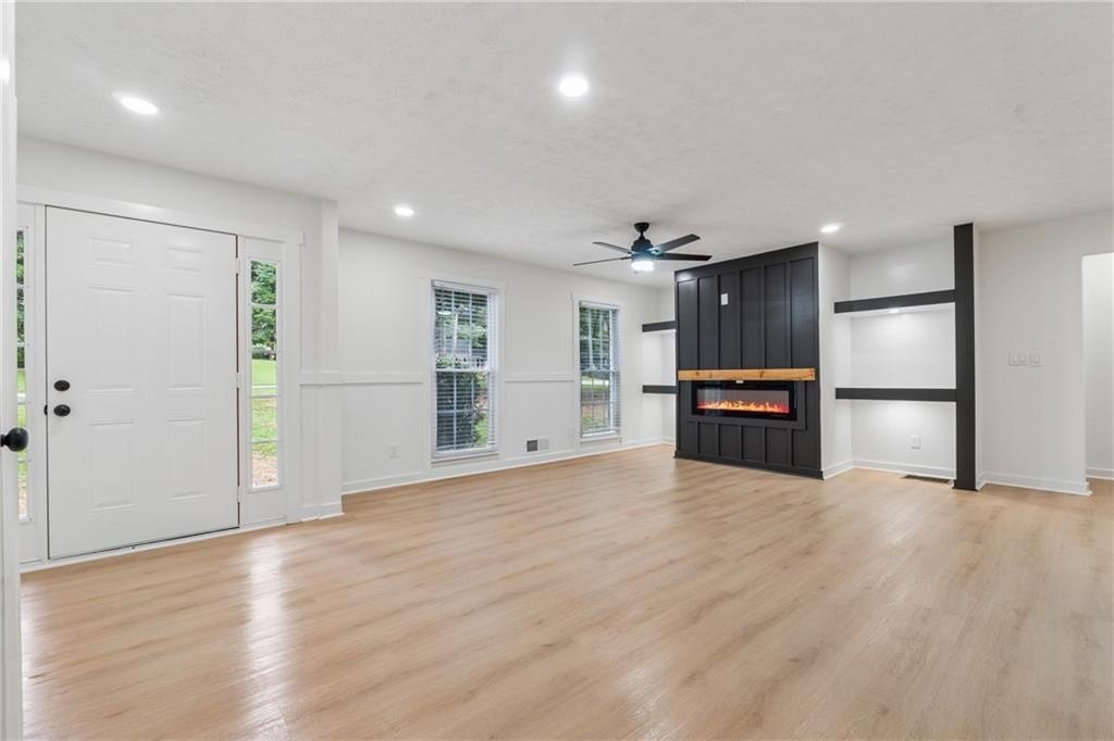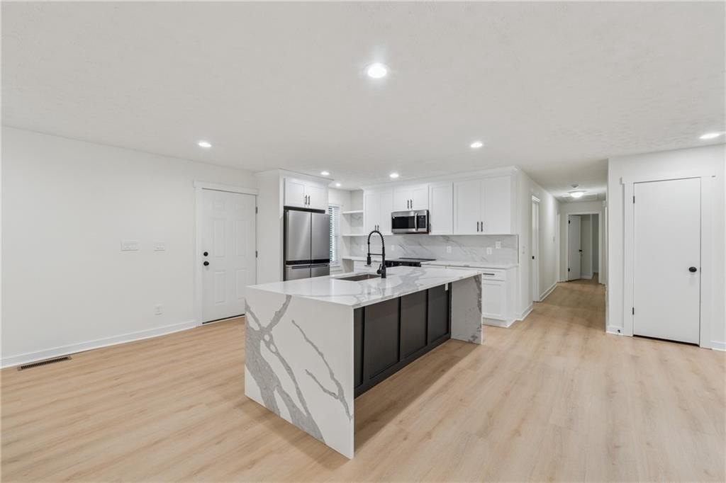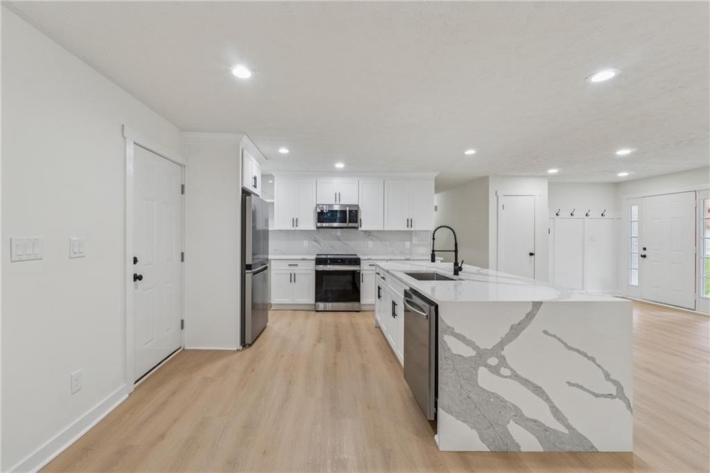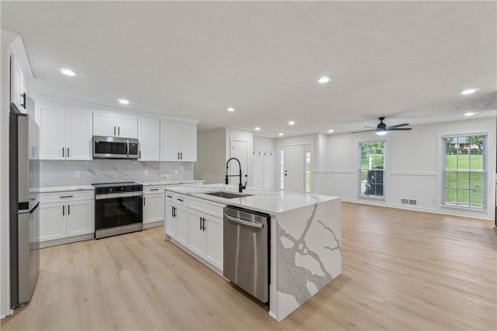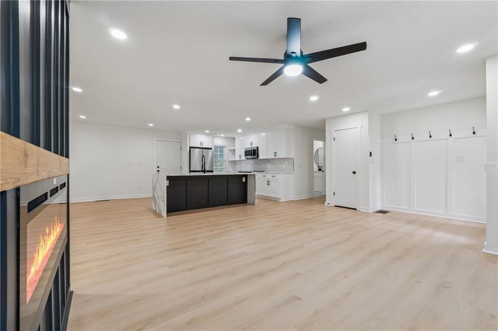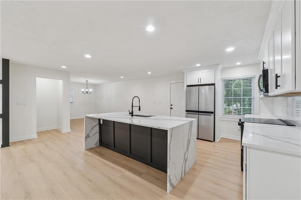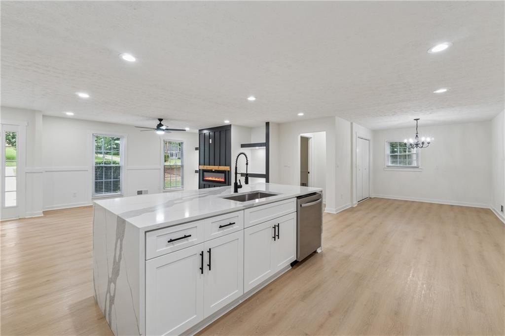 Welcome to 676 Bralorne Drive in Stone Mountain – where modern design meets everyday comfort. This fully renovated, single-level ranch offers 4 spacious bedrooms and 2 beautifully updated bathrooms, all on one easy-living level. Step inside to discover brand-new flooring and a fresh open-concept layout that blends style and functionality. The light-filled living room features an elegant electric fireplace—perfect for cozy evenings—while the kitchen offers oversized quartz countertops with a dramatic waterfall edge, sleek new cabinetry, and a seamless flow into the living space, ideal for entertaining. Situated in a convenient Stone Mountain location, you’ll enjoy quick access to shops, dining, parks, and major highways—making your daily commute and weekend adventures a breeze.