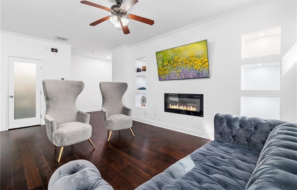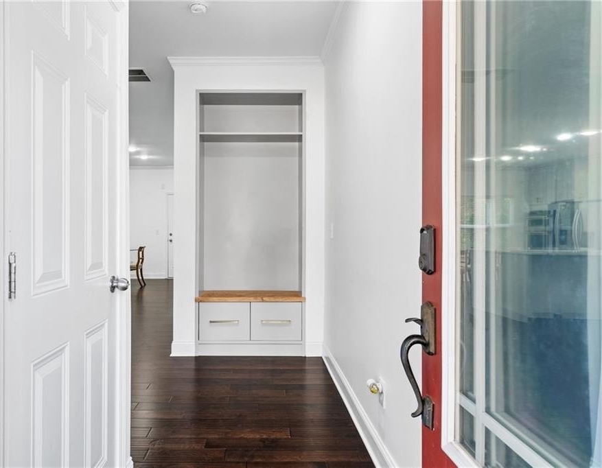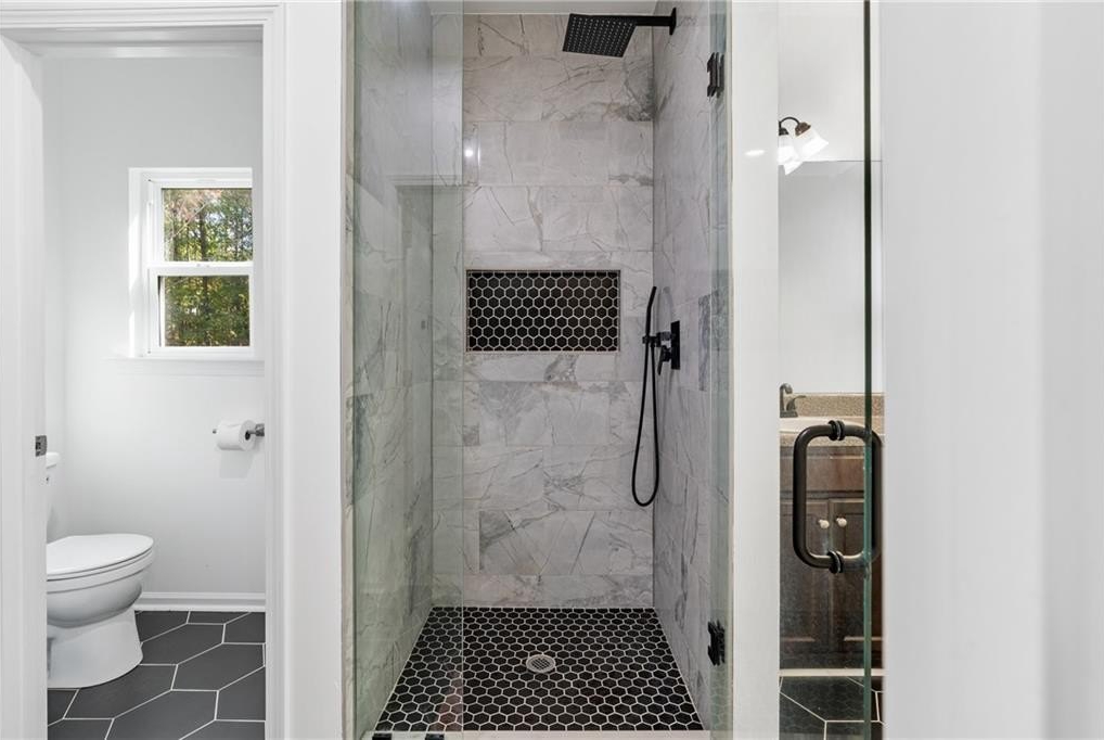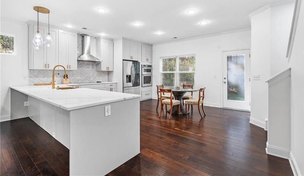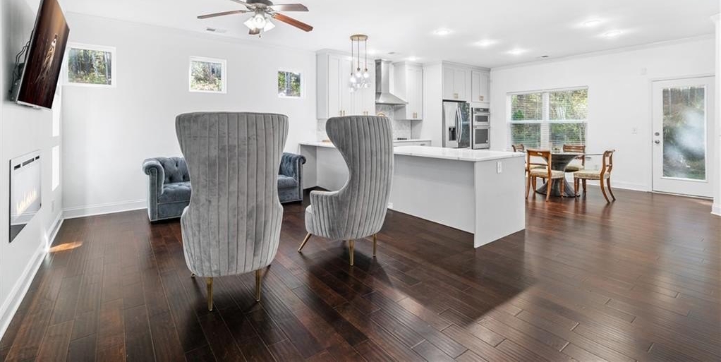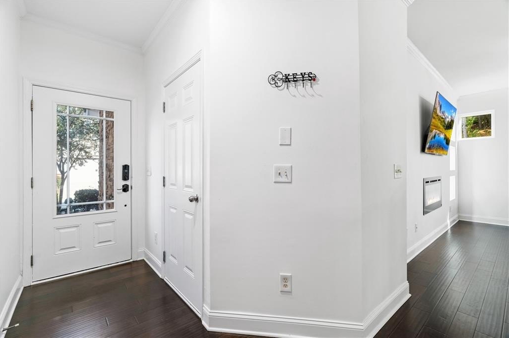 Welcome to 702 Barberry Drive - a beautifully updated 3 Bedroom, 2.5 Bath home where privacy, modern finishes and low-maintenance living come together in one perfect home. Backing up to a quiet wooded buffer in a friendly Woodstock neighborhood, this move-in-ready residence was designed for those who want style without sacrifice. From the moment you step inside, the bright and open layout invites you in. Rich espresso hardwood floors and crisp neutral paint set a fresh, modern tone, while an upgraded electric fireplace brings warmth and ambiance to the living space. The stunning renovated kitchen is the true heart of the home — featuring shaker cabinets, quartz countertops, a massive entertaining island, stainless steel appliances with double wall ovens, herringbone tile backsplash, and elegant gold hardware. A custom drop zone and oversized walk-in pantry keep everyday living effortlessly organized. Upstairs, retreat to the spacious primary suite with a tray ceiling, abundant natural light, and an updated spa-style bath boasting a beautiful frameless shower, dual vanities, and striking black hex tile flooring. Two additional bedrooms provide the versatility you need for family, guests, or a home office. Step outside to your private patio and backyard (you are allowed to fence the yard) — the perfect place for quiet mornings, evening grilling or taking pets out. Community Amenities include Clubhouse with Exercise Room, Swimming Pool, Tennis Courts, Pickleball Courts, Basketball Courts, Playground and Fire Pit. HOA Dues include Trash Pickup. And the location? Hard to beat. Just minutes from Downtown Woodstock, you're surrounded by endless shopping, dining, and local events. Quick access to I-575 makes commuting a breeze. Love the outdoors? Rope Mill Park and Blankets Creek offer miles of scenic trails for hiking and biking. Prefer the water? Lake Allatoona is less than 10 minutes away for boating and lakeside weekends. For shoppers, The Outlet Shoppes of Atlanta are right around the corner. And to top it off — the home is served by highly rated Cherokee County schools, offering outstanding educational options for all ages. Modern, convenient, and easy to love — this is the home where your next chapter begins. Welcome home to Barberry Drive!