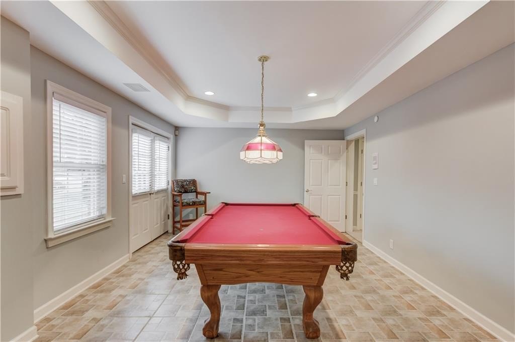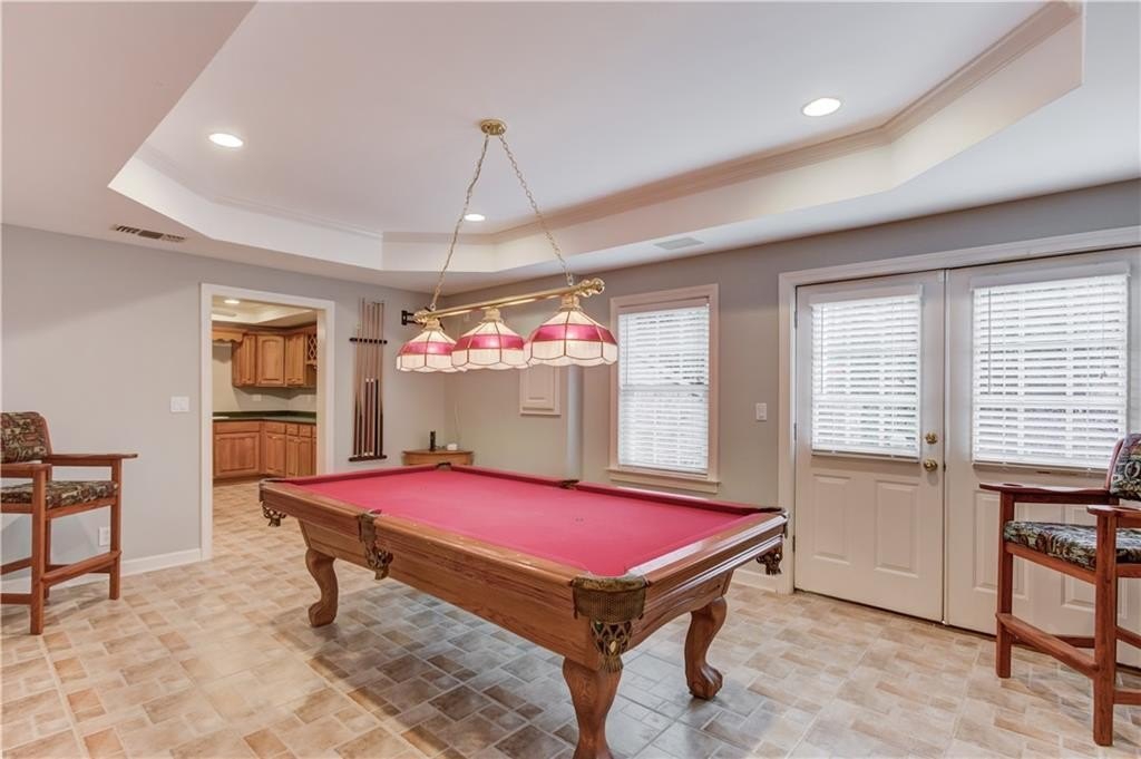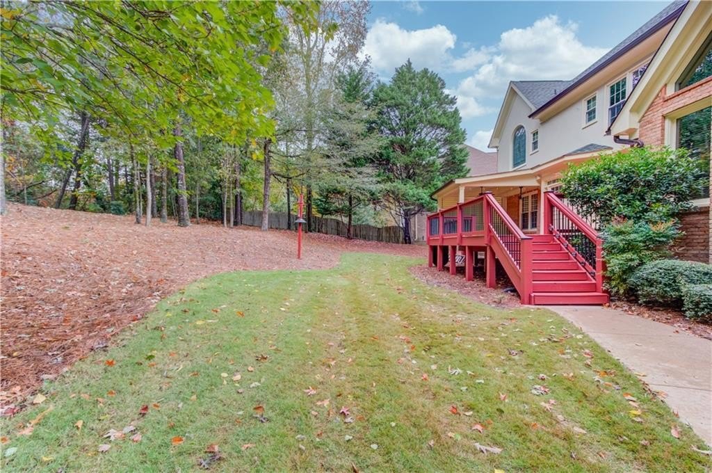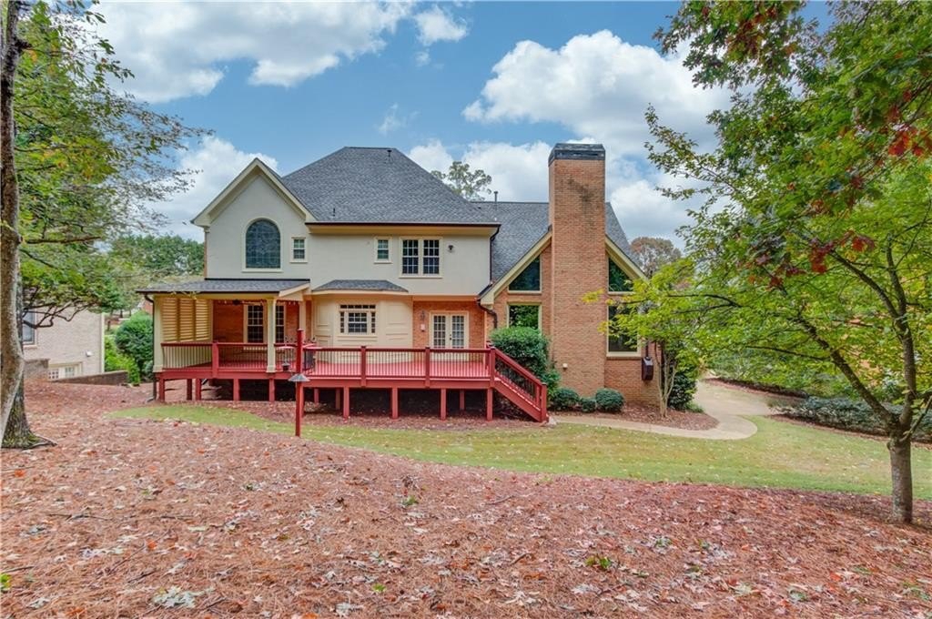 Welcome to this gorgeous three-sided brick home, perfectly blending classic charm with tasteful upgrades in the highly desirable Brookwood High School Cluster. This spacious home features a two-car garage with level driveway, beautifully landscaped yard, and a large deck with covered area—the perfect spot for relaxing or entertaining. Recent updates include a new roof (2024), new carpet upstairs, all-new energy-efficient vinyl windows, and fresh interior and exterior paint, ensuring comfort and peace of mind. Inside, the inviting two-story foyer opens to a separate living room/office and a main-level bedroom with full bath. The spacious kitchen with center island offers ample cabinet and counter space, opening to a bright breakfast area and a large vaulted family room. A formal dining room completes the main level. Upstairs, the primary suite provides a luxurious retreat with space and privacy, joined by three additional generous bedrooms.The finished basement offers exceptional versatility, featuring a family room with kitchenette, pool table room, exercise room, and full bath—perfect for recreation or guests. The Woodlands community includes a pool, tennis courts, and a lake with fountain. The neighborhood is ideally located just minutes from The Shoppes at Webb Gin, Publix, Sprouts, Target, LA Fitness, and Piedmont Eastside Medical Center. This move in ready home offers location, comfort, and convenience all in one package.