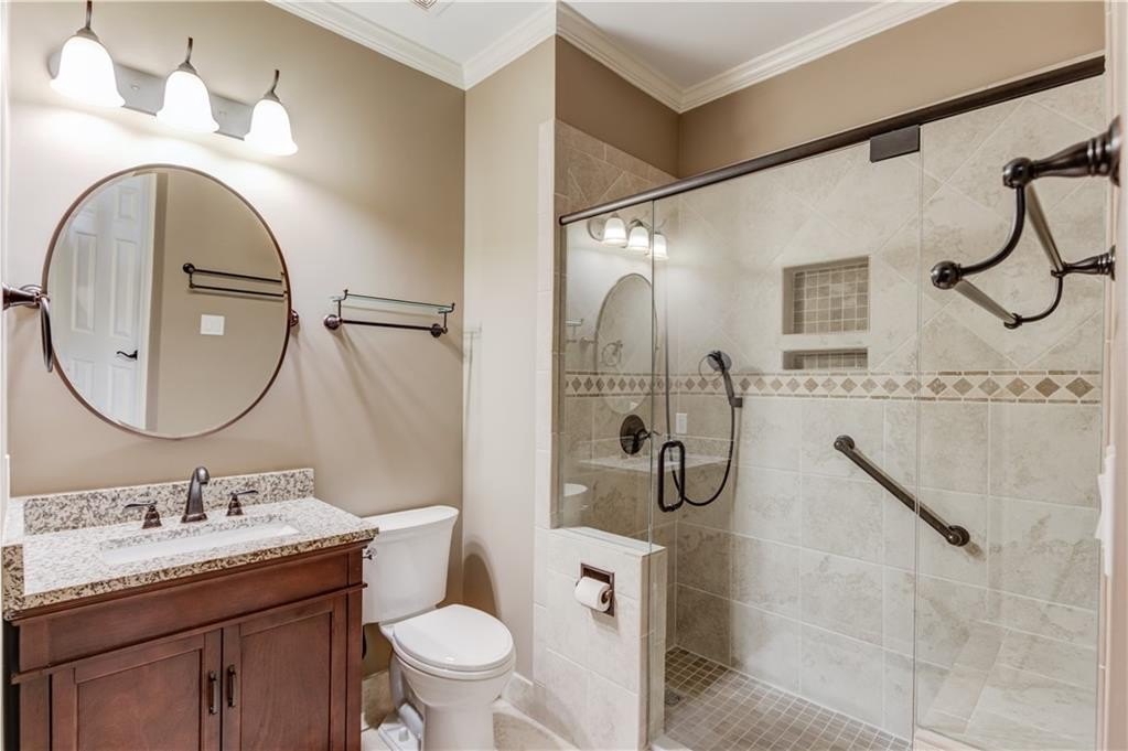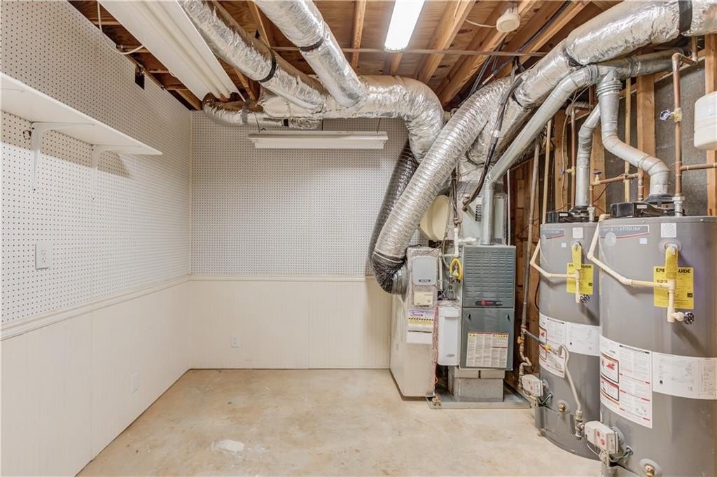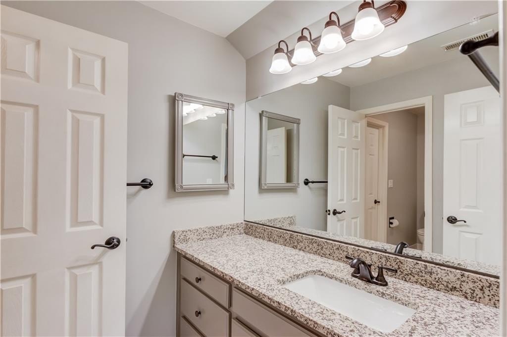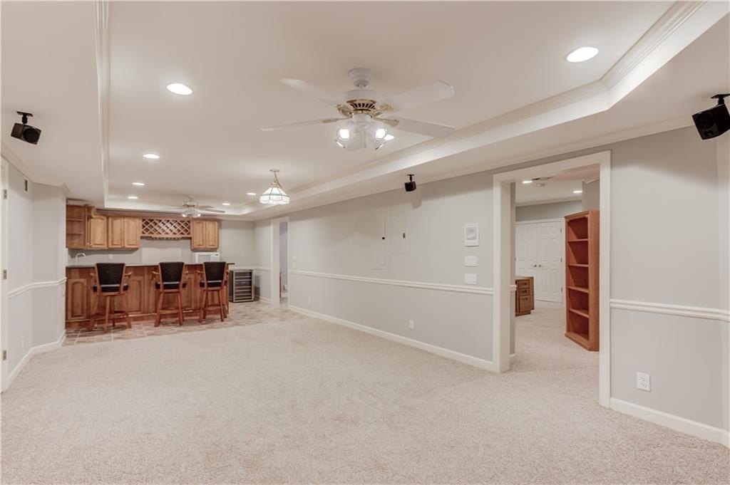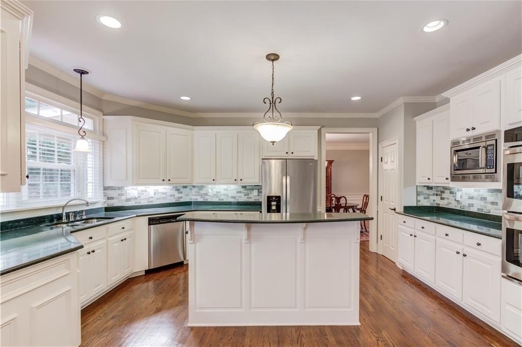 Welcome to this gorgeous three-sided brick home, perfectly blending classic charm with tasteful upgrades in the highly desirable Brookwood High School Cluster. This spacious home features a two-car garage with level driveway, beautifully landscaped yard, and a large deck with covered area—the perfect spot for relaxing or entertaining. Recent updates include a new roof (2024), new carpet upstairs, all-new energy-efficient vinyl windows, and fresh interior and exterior paint, ensuring comfort and peace of mind. Inside, the inviting two-story foyer opens to a separate living room/office and a main-level bedroom with full bath. The spacious kitchen with center island offers ample cabinet and counter space, opening to a bright breakfast area and a large vaulted family room. A formal dining room completes the main level. Upstairs, the primary suite provides a luxurious retreat with space and privacy, joined by three additional generous bedrooms.The finished basement offers exceptional versatility, featuring a family room with kitchenette, pool table room, exercise room, and full bath—perfect for recreation or guests. The Woodlands community includes a pool, tennis courts, and a lake with fountain. The neighborhood is ideally located just minutes from The Shoppes at Webb Gin, Publix, Sprouts, Target, LA Fitness, and Piedmont Eastside Medical Center. This move in ready home offers location, comfort, and convenience all in one package.