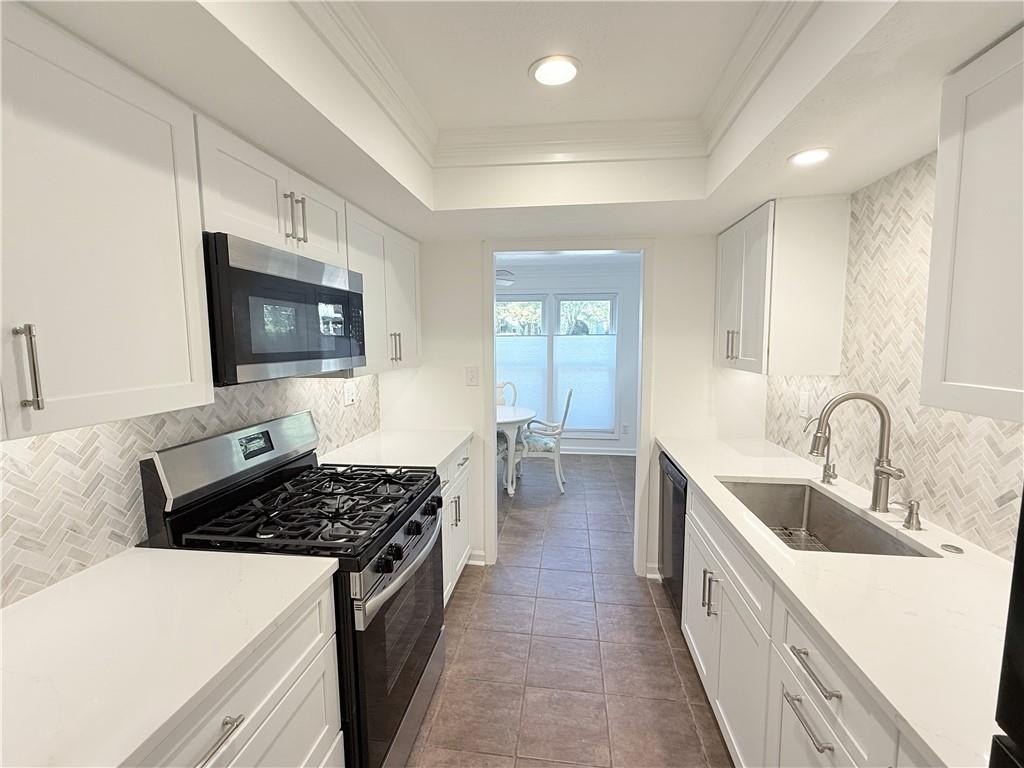 Bright & Beautiful Newly Renovated Walk-in Level Stepless Unit in Sought After Canyon Point! This Unit has 2 Main Level, Walk-in Entrances Both with New Digital Door Locks. Stunning Kitchen Renovation with All New Shaker Cabinets, Quartz Counters, Chevron Marble Backsplash, New Sink, Faucet, Disposal, and Separate Water Filtration System & Faucet. New Gas Range, New Microwave, Can Lighting, and Under Cabinet Lighting. Open Floorplan with Living/Dining Area with Gas Logs Fireplace. Large Bright Sunroom Opens to Living Room & Covered Porch Perfect for Dining, Office, or Den. All New Primary Bath with Double Vanity & Quartz Counters, New Fixtures, New Toilet & Lighting, Gorgeous New Shower w/ Glass Door. Second Bath Opened up with New Vanity, Designer Tile, New Tub, New Toilet, Fixtures & Lighting. Brand New Bedroom Windows & Master Sliding Door. New Paint, Light Fixtures, and Door Hardware Throughout. Top Down/Bottom Up Blinds Added To All Windows to Let the Light In While Maintaining Privacy. Large Covered Porch w/ Storage Closet. Both Bedrooms Have Walk-in Closets. Roommate Floorplan. This is a Great Home!