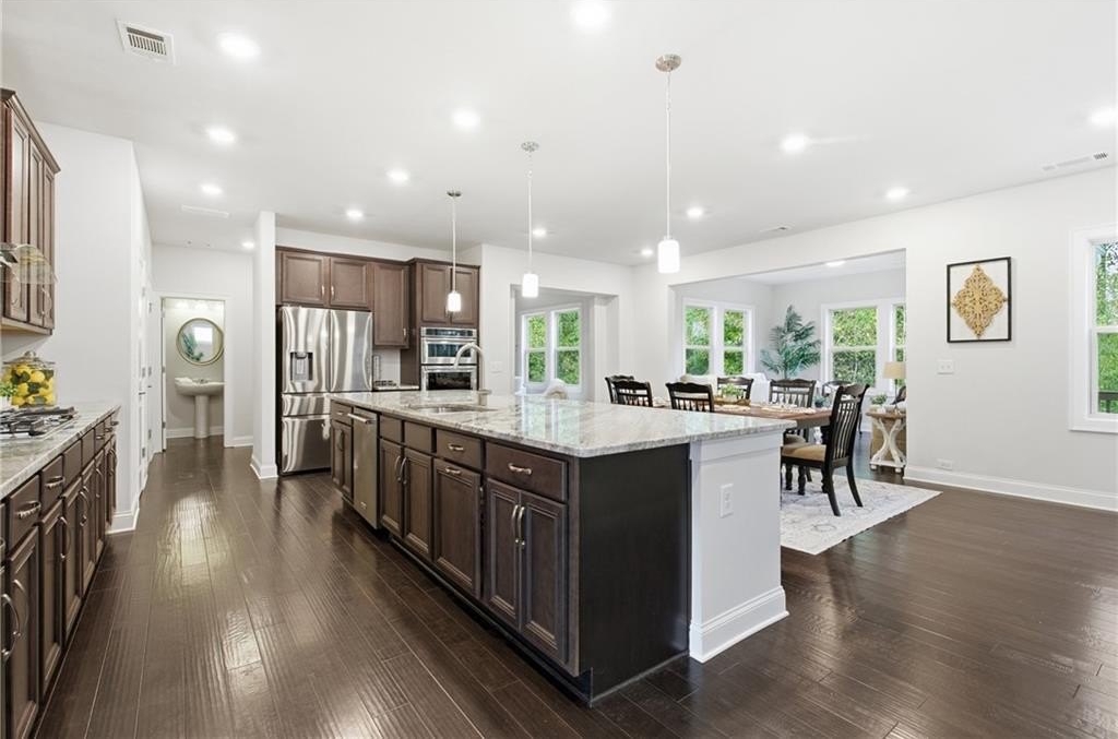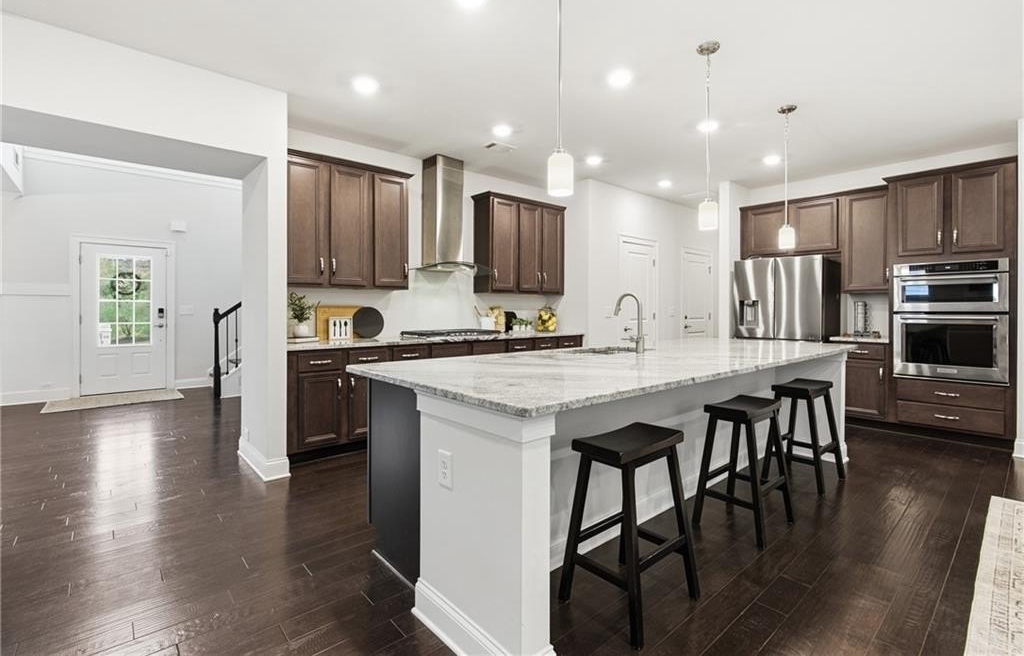 This home is a true masterpiece, thoughtfully crafted for modern luxury living and brimming with everything you’ve been dreaming of. As you step through the door, you’ll be welcomed by a dramatic 20-foot entry foyer and an open layout that seamlessly blends functionality with elegance. The front dining room offers a versatile, flowing space that easily expands into the expansive family room, making hosting gatherings for 14 or more a seamless and delightful experience. The gourmet kitchen is spectacular, featuring an oversized kitchen island and pantry, abundant cabinetry, sleek quartz countertops, and a seamless connection to the sunroom and generously sized family room. A wall of windows fills the area with natural light, while a cozy gas fireplace creates a warm ambiance for both quiet evenings and lively entertaining. On the main level, you’ll find an office that can also serve as a guest bedroom with a convenient half bath, plus a mudroom with a practical drop zone as you enter from the spacious two-car garage. Upstairs, the luxurious primary suite awaits, complete with a sitting area and a spa-inspired ensuite. Large secondary bedrooms offer plenty of space, and a well-designed upstairs laundry room with a utility sink adds everyday convenience. Outside, the deck and covered patio provide ideal spots to relax or entertain, while a private wood backyard offers endless possibilities for play, leisure, or hosting friends and family. Don’t miss this rare opportunity to own such an exceptional home—just minutes from the Cumming City Center and Suwanee Mountain Preserve schedule your showing today!