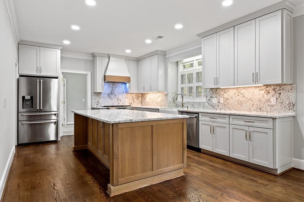 Impressive from the moment you enter, this home welcomes you with a lovely entry foyer that opens to an oversized fireside Grand Room featuring elegant coffered ceilings, a brick accent wall, and a convenient wet bar—perfect for entertaining or relaxing. The formal dining room offers a sophisticated space for gatherings and flows effortlessly into the chef’s dream kitchen with granite countertops, new soft-close cabinetry, THOR stainless steel appliances, a large breakfast area, and a walk-in pantry.