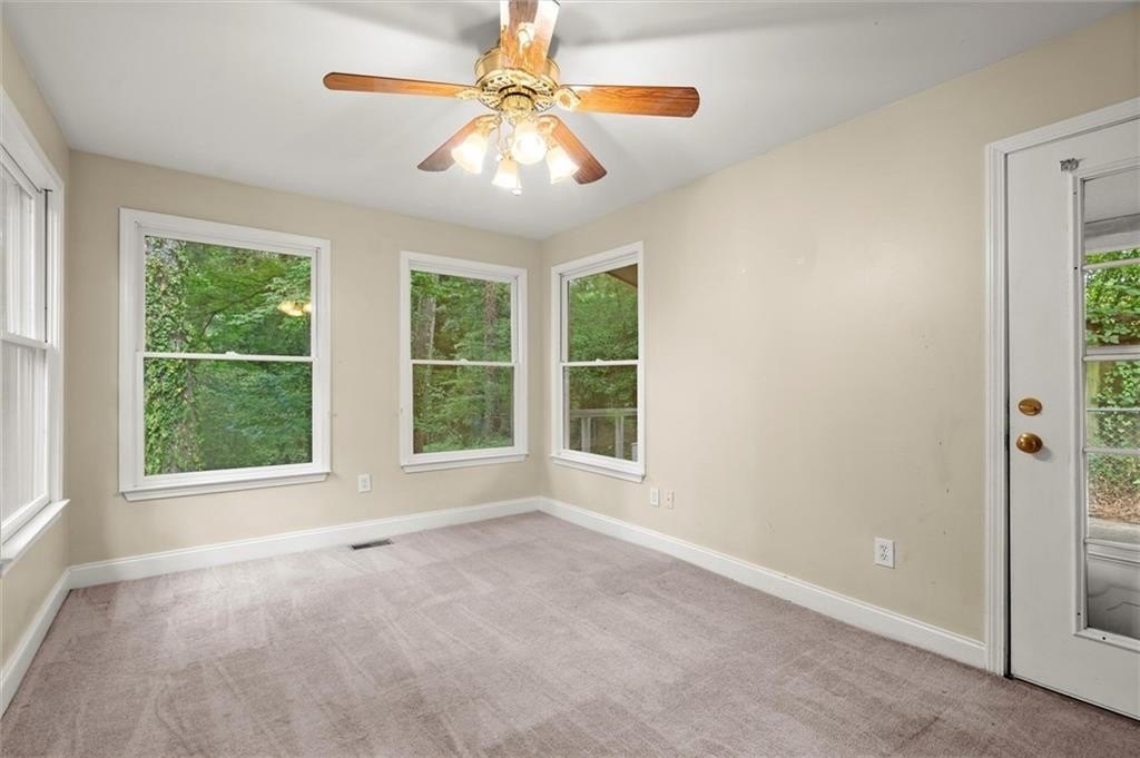Fantastic opportunity just one mile from vibrant Downtown Roswell! This versatile home offers endless potential, featuring a fully finished basement with a second kitchen, laundry room, bedroom, and full bath—ideal for rental income, guests, or multigenerational living. The main level includes three bedrooms, a fireside family room, and a bright sunroom that opens to a spacious back deck overlooking a private, half-acre lot. Original hardwood floors lie beneath the main level carpet, ready to be uncovered and restored. Located in a quiet, established neighborhood with no HOA, this property is perfect for investors, renovators, or savvy buyers looking to customize and build equity. Prime Roswell location just minutes to Canton Street, GA-400, parks, trails, schools, shopping, restaurants, and the brand-new Southern Post!