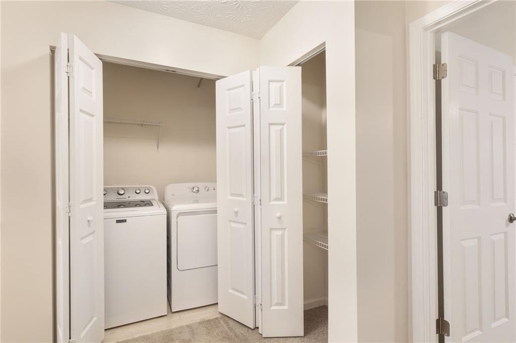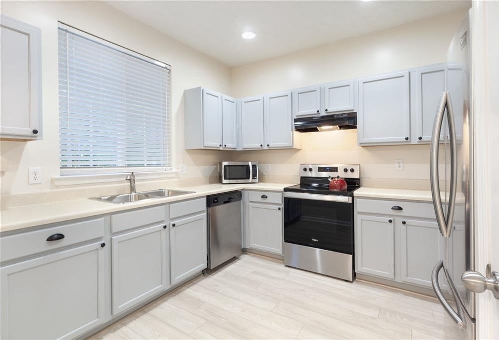 Welcome home to this beautifully updated 2-bedroom, 2.5-bath townhome nestled in a quiet, wooded community in vibrant Woodstock! From the moment you step inside, you'll appreciate the fresh paint and brand-new flooring that flows throughout the entire home, creating a clean, modern feel. The spacious kitchen features sleek stainless steel appliances, including a brand-new stove and dishwasher, along with updated lighting and fixtures that add a touch of style. Enjoy peace of mind with a new water heater, new garbage disposal, and newer HVAC system for year-round comfort. The home also includes programmable thermostats and a security alarm system for added convenience and safety. Master bath features updated lighting and paint. Both bedrooms offer generous closet space, while the wooded backyard view provides a serene setting perfect for morning coffee or evening relaxation. Located just minutes from downtown Woodstock’s shopping, dining, and entertainment, this move-in-ready townhome offers the perfect blend of comfort, convenience, and community.