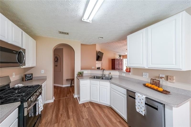 BACK ON MARKET! HURRY BEFORE ITS GONE AGAIN. This is that much anticipated ranch you've been waiting for! Brick and vinyl siding for easy upkeep. As you enter, the home opens to bright open spaces with cathedral ceilings in LR and Master Bedroom and BA. Entry has wall alcove (niche) for your special art interest. Rounded archways give this home character. Kitchen has stainless appliances that are only 2 years old, pantry and BR. Area. Separate dining room w/ wainscoting. Ceramic tile floors in both bathrooms. Some other features include sep. laundry room, huge master w/ deep walkin closet, garden tub, seperate shower, double vanities & cathedral ceiling. House has new roof and water heater that are only a few months old. Come see this level, secluded backyard oasis which includes sep. storage shed (could convert to she-shed, gardening room), extra large patio across length of back of home, & wooden privacy fence. Swim/Tennis community with clubhouse and playground enhance the community environment. Hurry before it's gone! Up to $19,250 in down payment assistance available to qualified homebuyers through Preferred Lender!