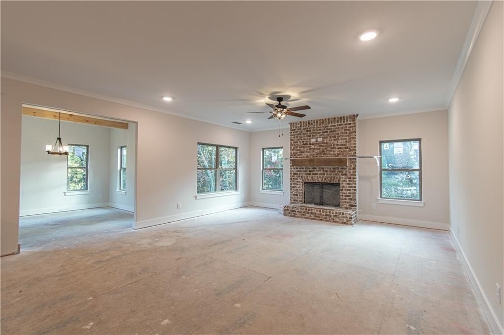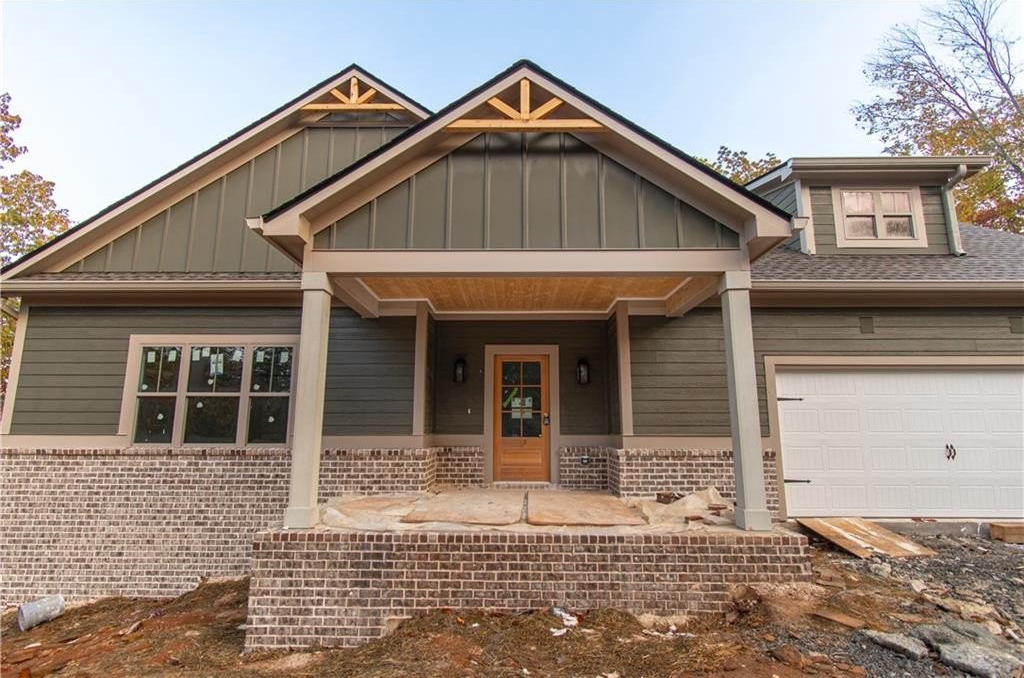 The home’s exterior combines elegance and charm with a brick front skirt, Board and Batten accents, a covered back porch and deck, and a welcoming front porch—perfect for relaxing or entertaining.