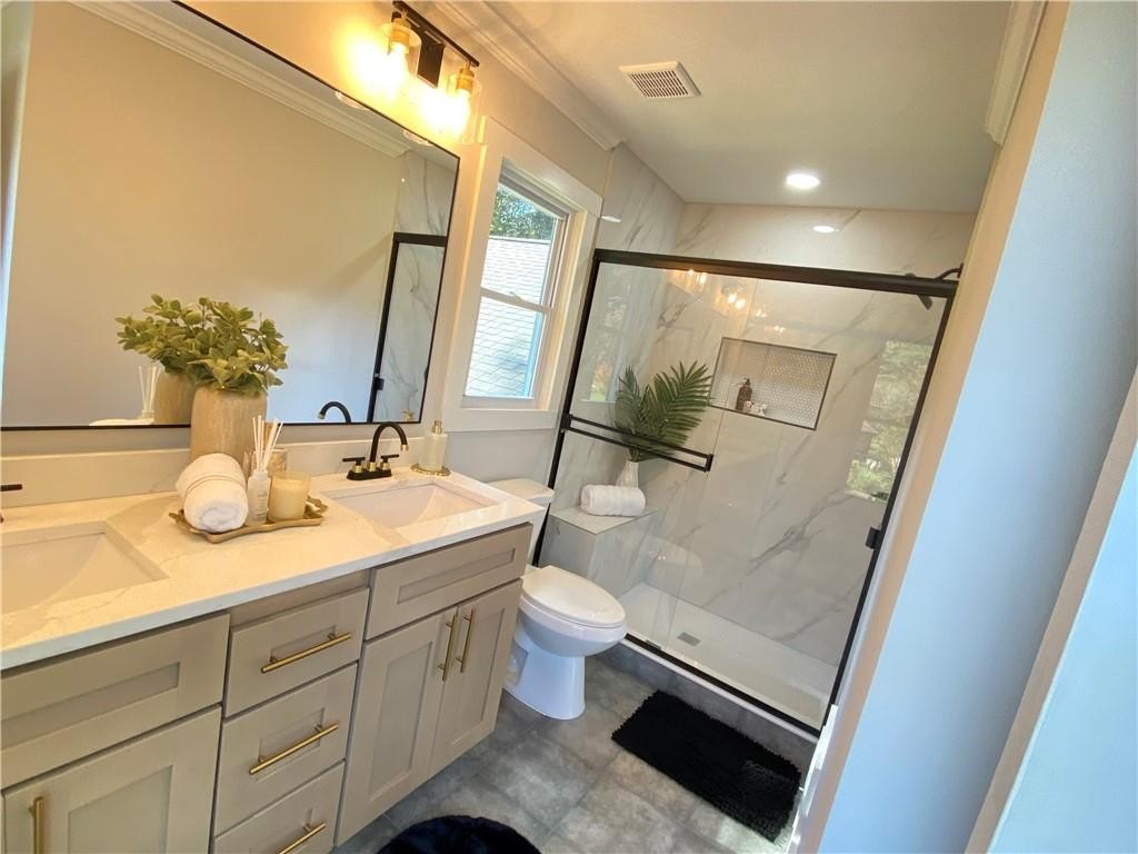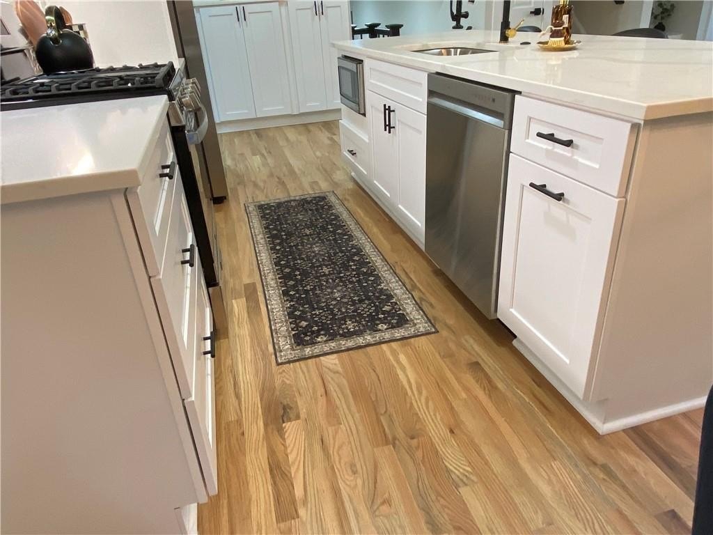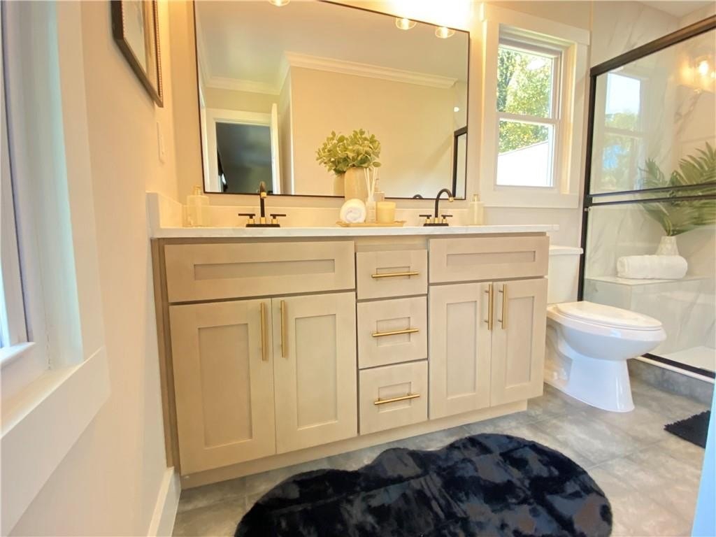 High quality renovation on a private lot in a cul-de-sac. This split-level home with open concept has been updated to perfection. Renovations include all new windows, real oak floors throughout, new kitchen cabinets with quartz counters, new baths, solid wood doors, and more. The quality and attention to detail is rarely found in homes at this price level. The kitchen features an oversized island with quartz countertops, stainless steel appliances, range hood, and Shaker style cabinetry. Family room has a real masonry fireplace, and the living room has a modern one. Upstairs has 4 BR, including the spacious primary bedroom which has his/her closets and a connected bathroom with new shower, double vanity, and quartz counters. Step out back to a patio and storage bldg on a large lot with plenty of privacy. This is a modern renovation of a traditional home. Big bedrooms with big closets. You'll love it.