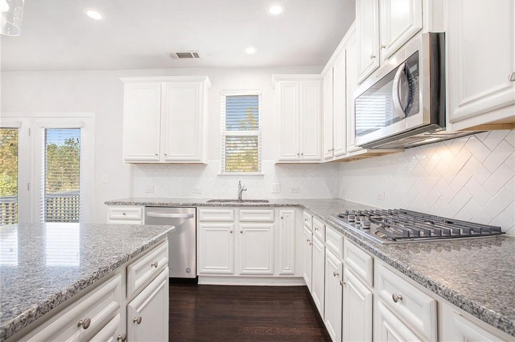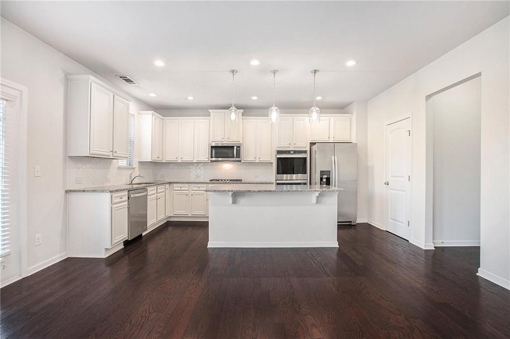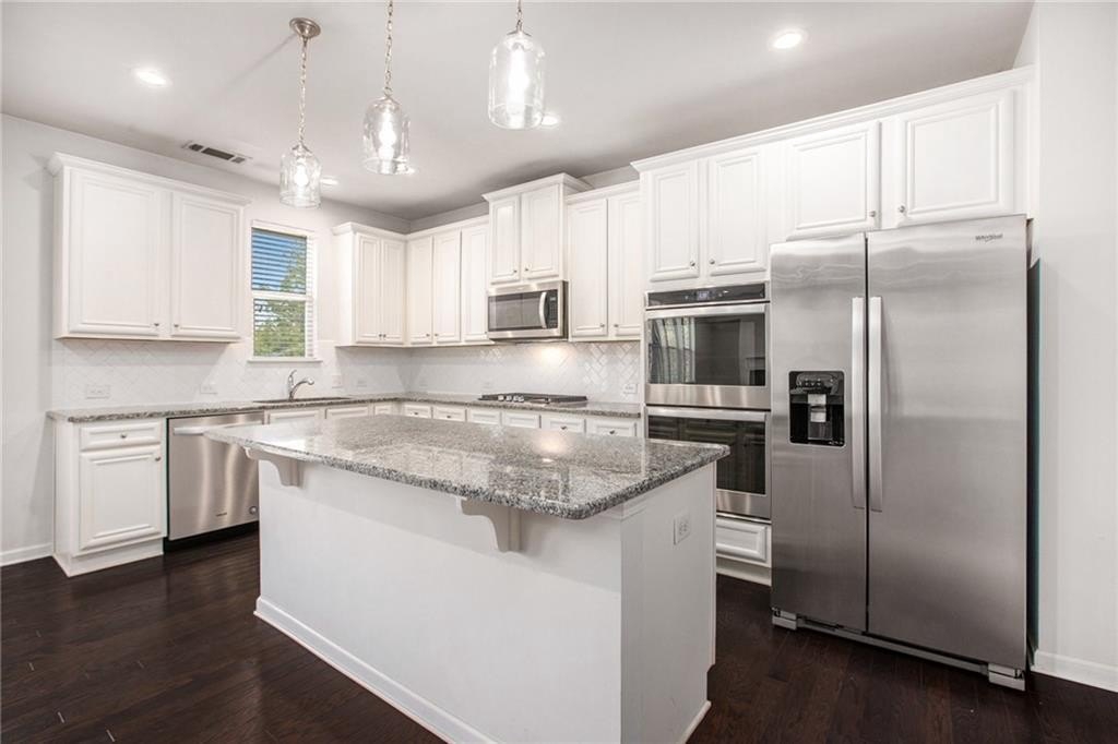 Chef’s kitchen: granite counters, stainless appliances, double ovens & large island.